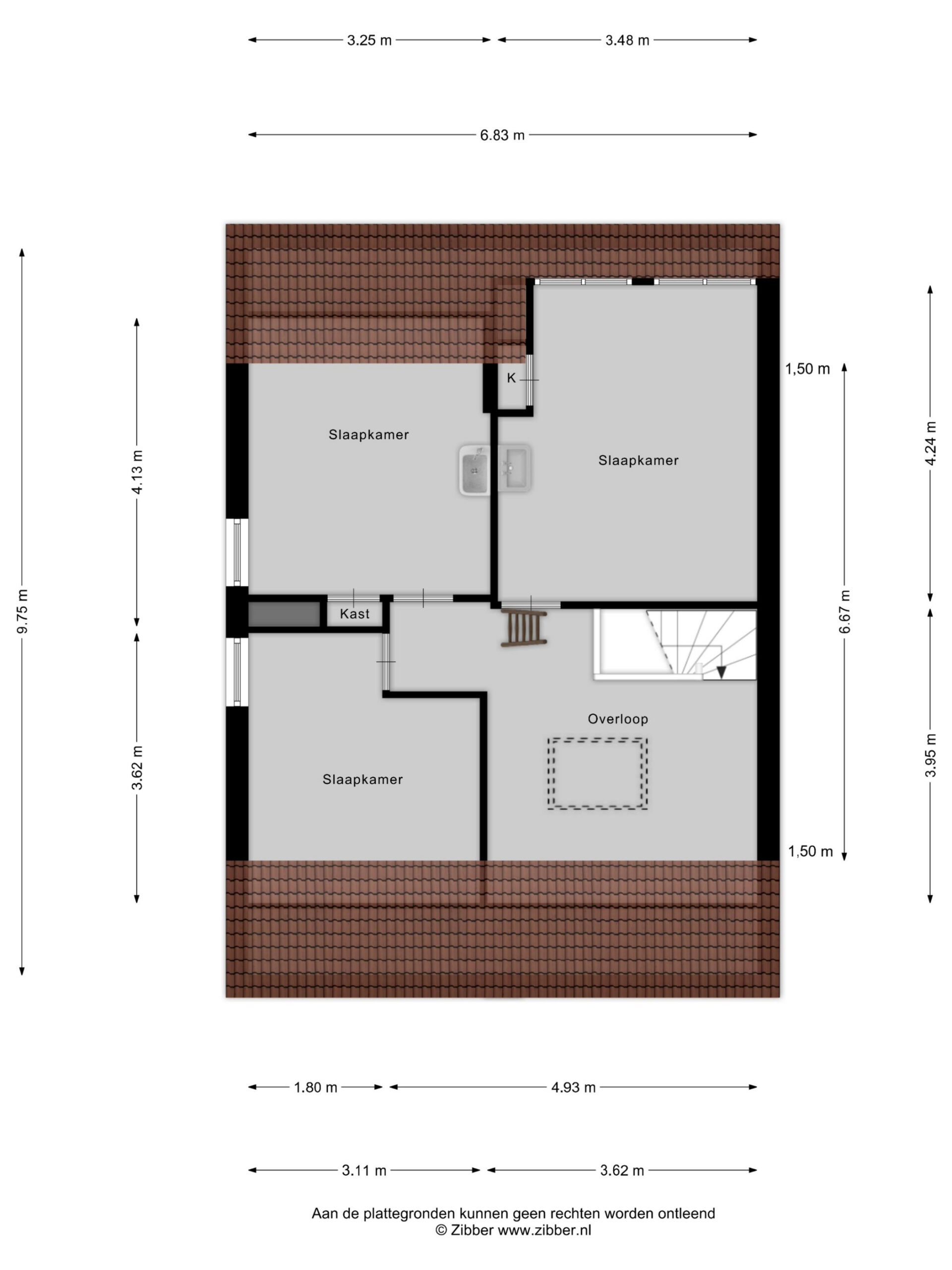 Op deze verdieping bevinden zich 3 slaapkamers en 1 werkkamer/logeerkamer waarvan 2 slaapkamers toegang hebben tot een balkon. De badkamer is praktisch ingericht en beschikt over een toilet, wastafel en een douche/bad combi.