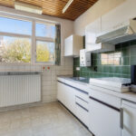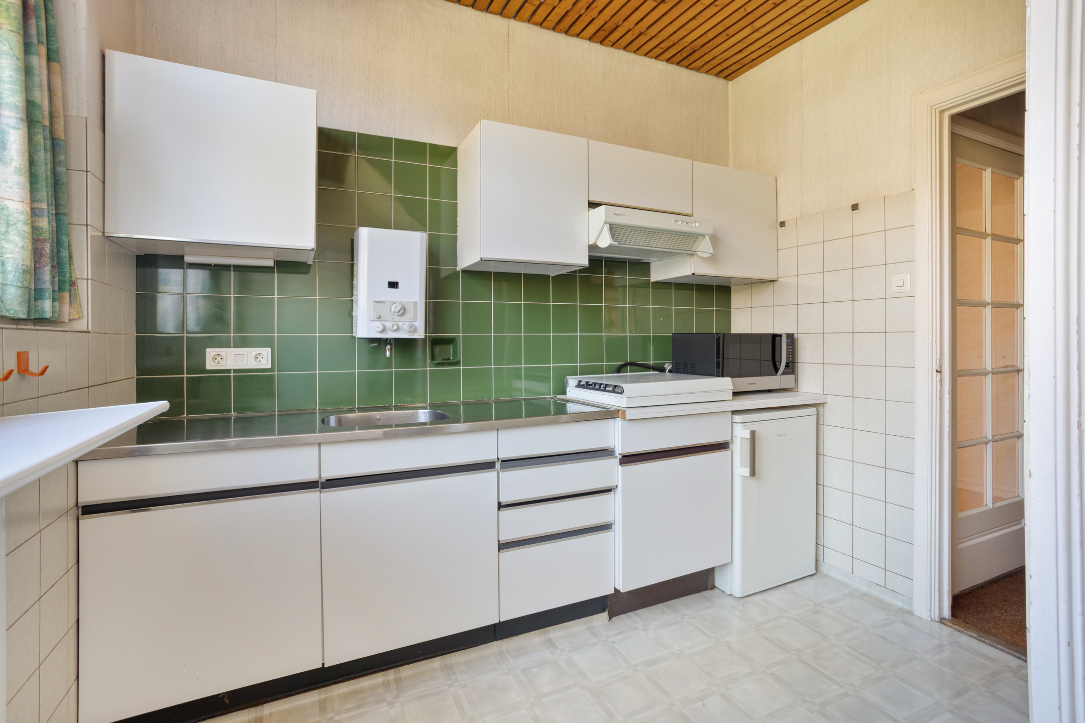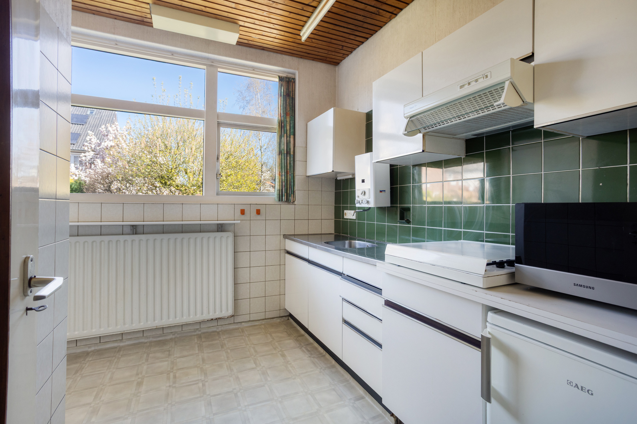 De dichte keuken aan de voorzijde is praktisch ingericht en biedt veel werk- en kastruimte. De ruimte en het vele daglicht maken het tot een prettige plek om te koken. Vanuit de keuken heeft u direct zicht op de voortuin. Tevens is er vanuit de keuken toegang tot de royale kelder voor provisie.