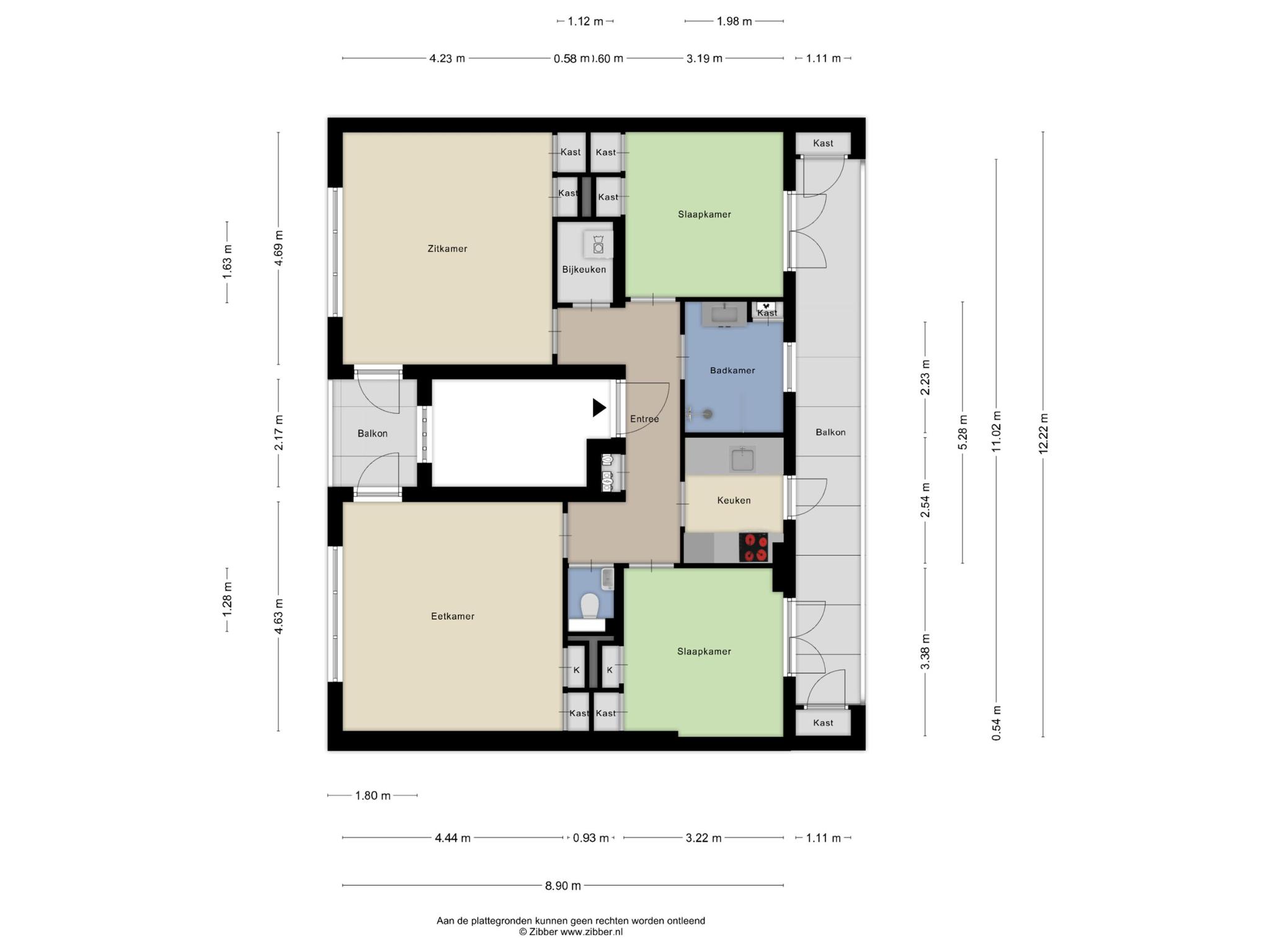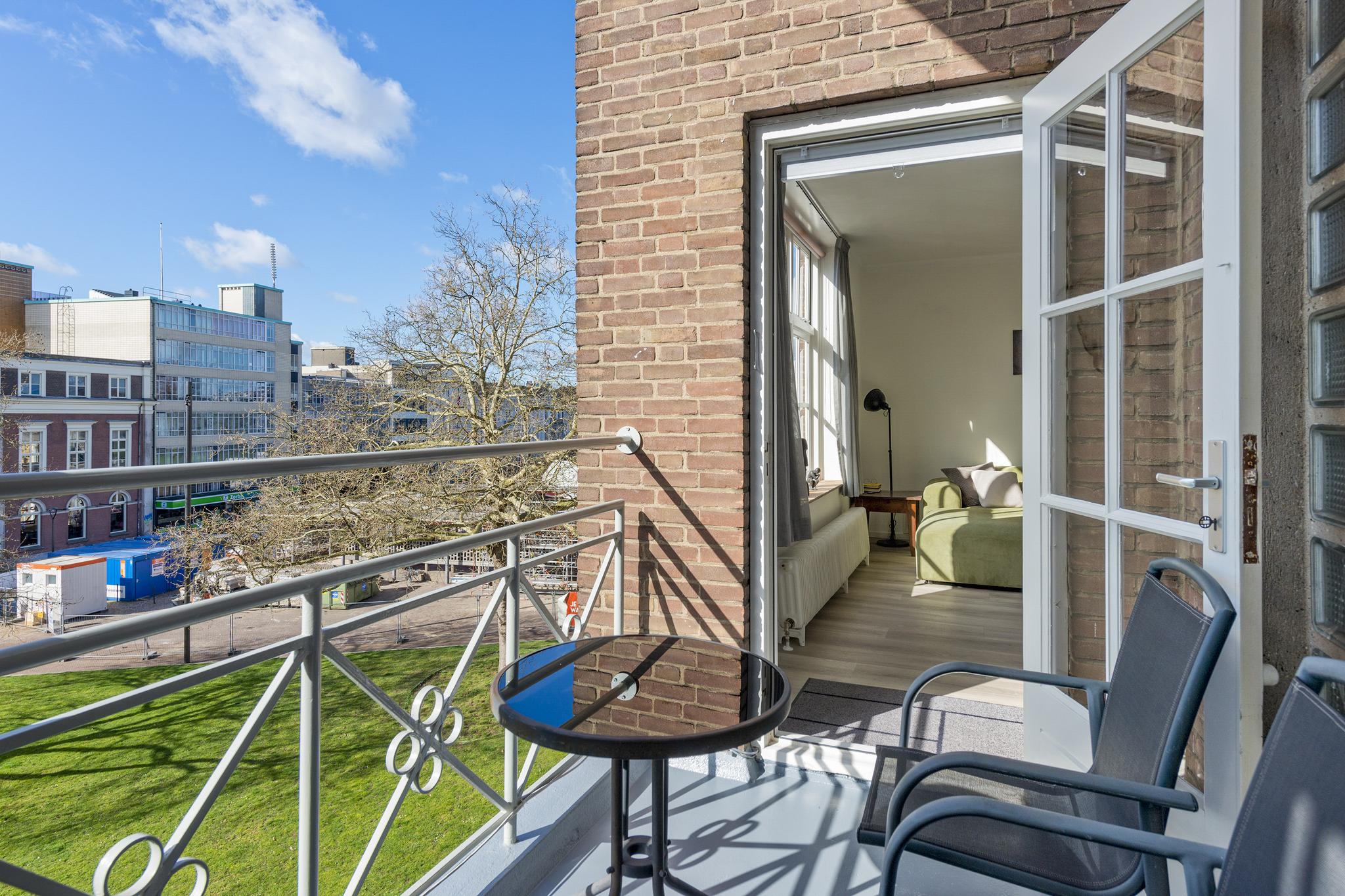 Het appartement beschikt over 2 ruime woonvertrekken, het ene vertrek bijvoorbeeld te gebruiken als zitkamer en het andere vertrek als eet- en werkkamer. Beide woonvertrekken hebben toegang tot de loggia met een mooi uitzicht over het plein.