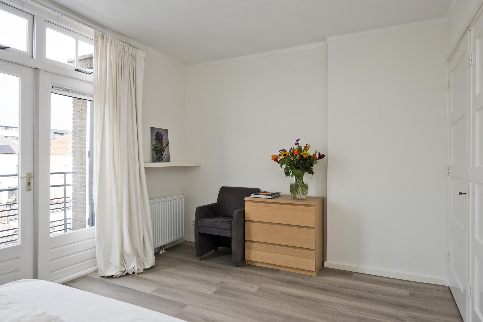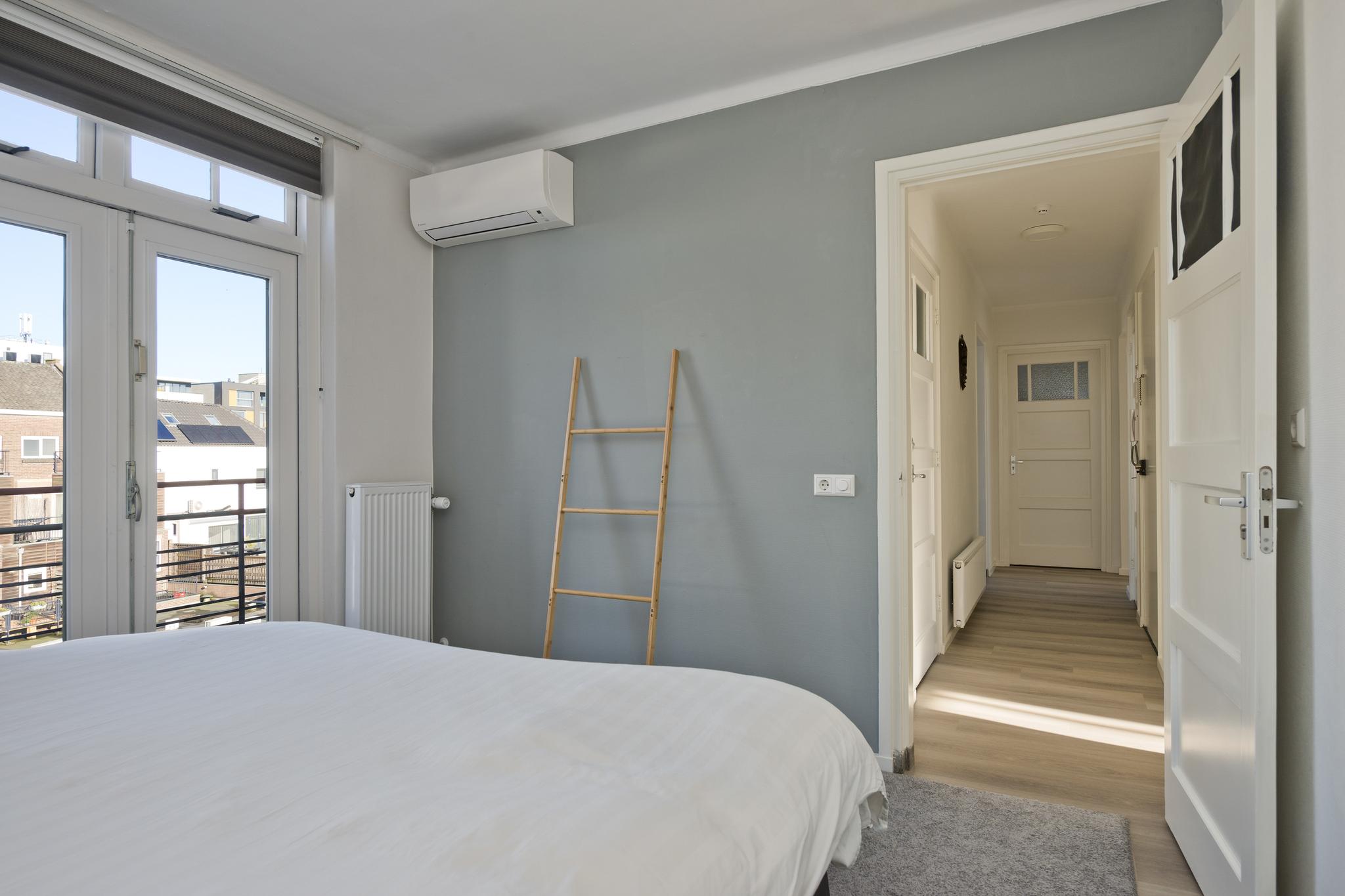 Aan de achterzijde bevinden zich 2 slaapkamers, beiden met openslaande deuren naar het achterbalkon. De grootste slaapkamer beschikt over een airco.