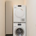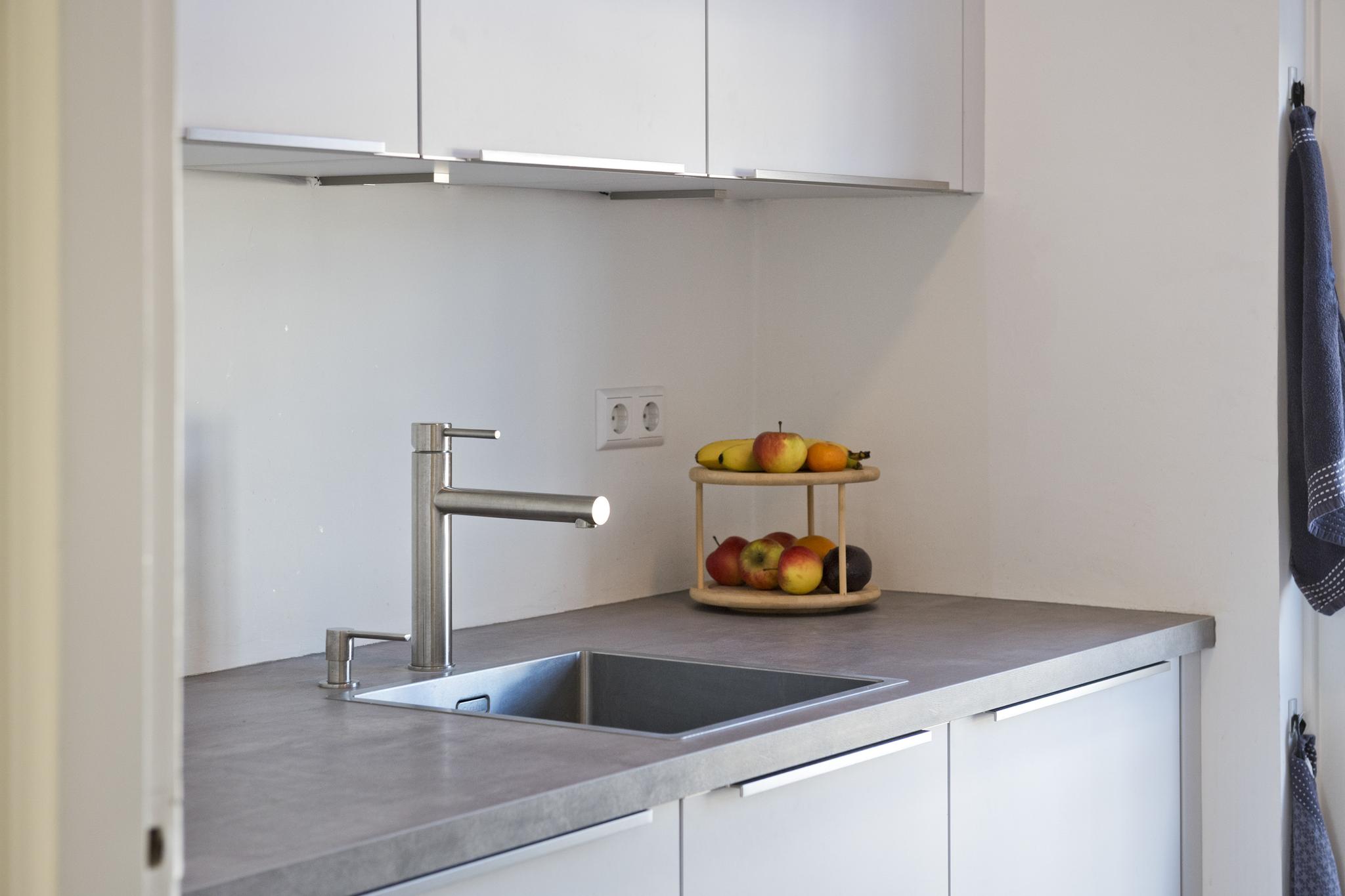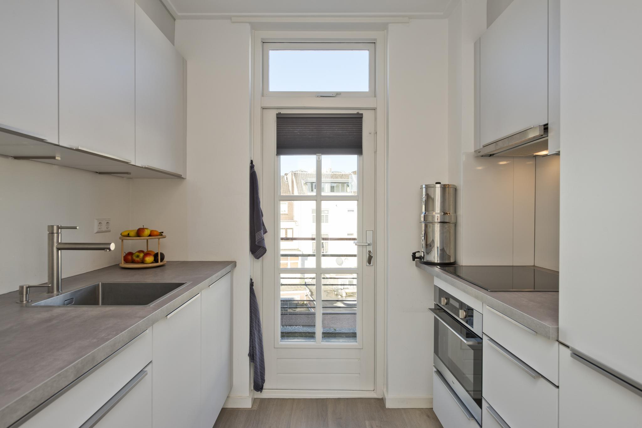 Daarnaast bevindt zich de keuken met aan weerszijde voorzien van een kwaliteitskeukeninrichting met inbouwapparatuur. (inductiekookplaat, combi-oven, afzuigkap, koel-vriescombinatie, vaatwasser). De keuken beschikt over een deur naar het achterbalkon.