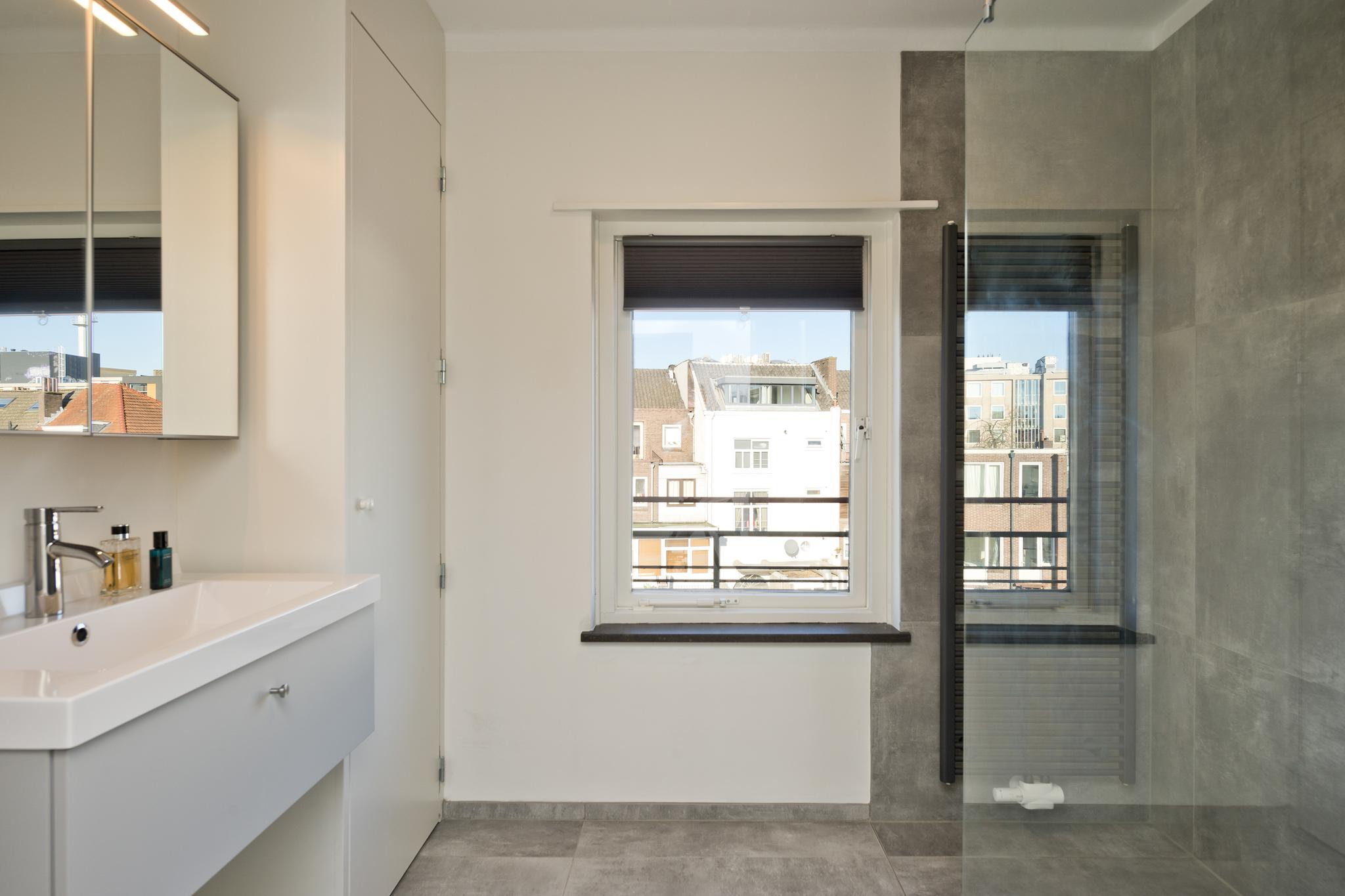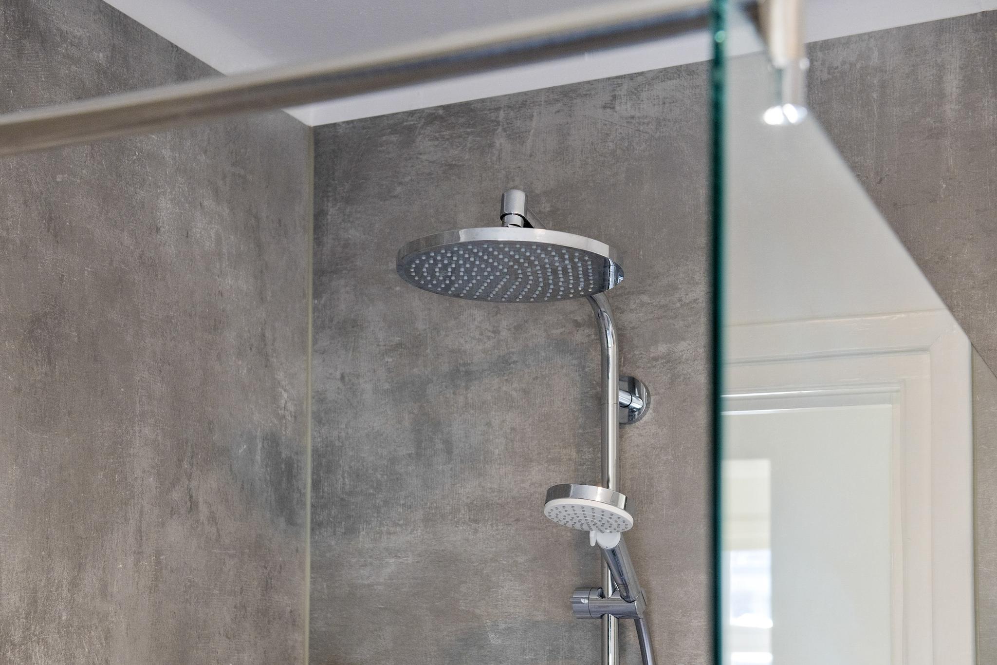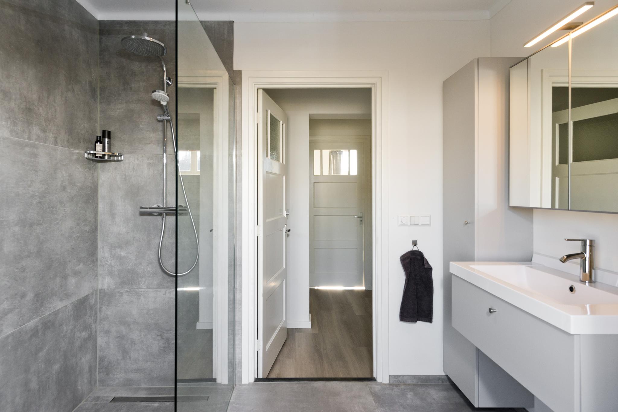 Naast de grootste slaapkamer ligt de vernieuwde badkamer met inloopdouche en wastafelmeubel.