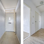 Entree/tochtportaal, hal, toilet, inbouwkeuken, royale lichte woonkamer met toegang tot het balkon, slaapkamer met toegang tot het balkon. Totaal zijn er 3 slaapkamers. Nette badkamer met wastafel en open douche. Berging in de onderbouw.
