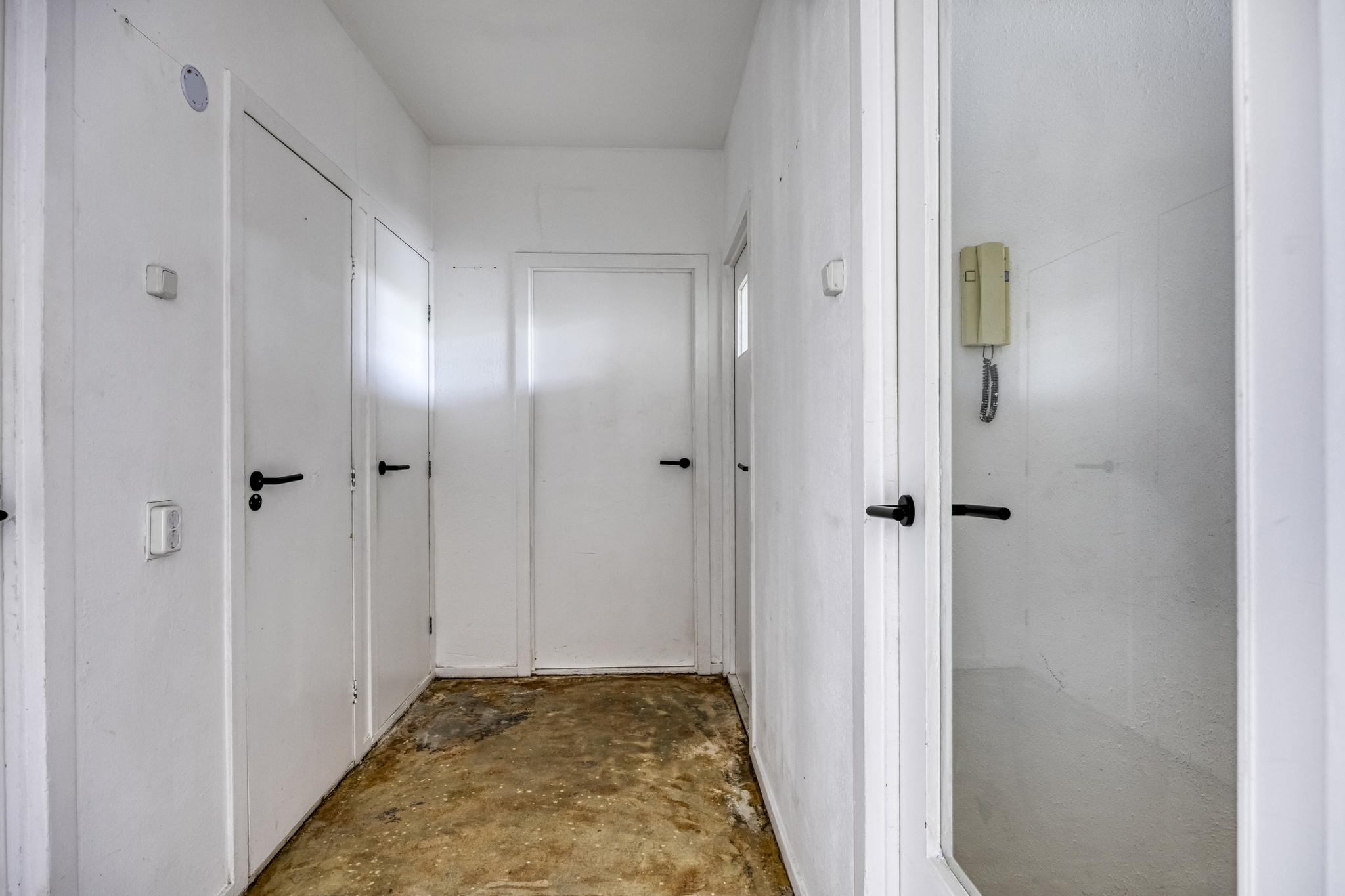 Entree/tochtportaal, hal, toilet, inbouwkeuken, royale lichte woonkamer met toegang tot het balkon, slaapkamer met toegang tot het balkon. Totaal zijn er 3 slaapkamers. Nette badkamer met wastafel en open douche. Berging in de onderbouw.
