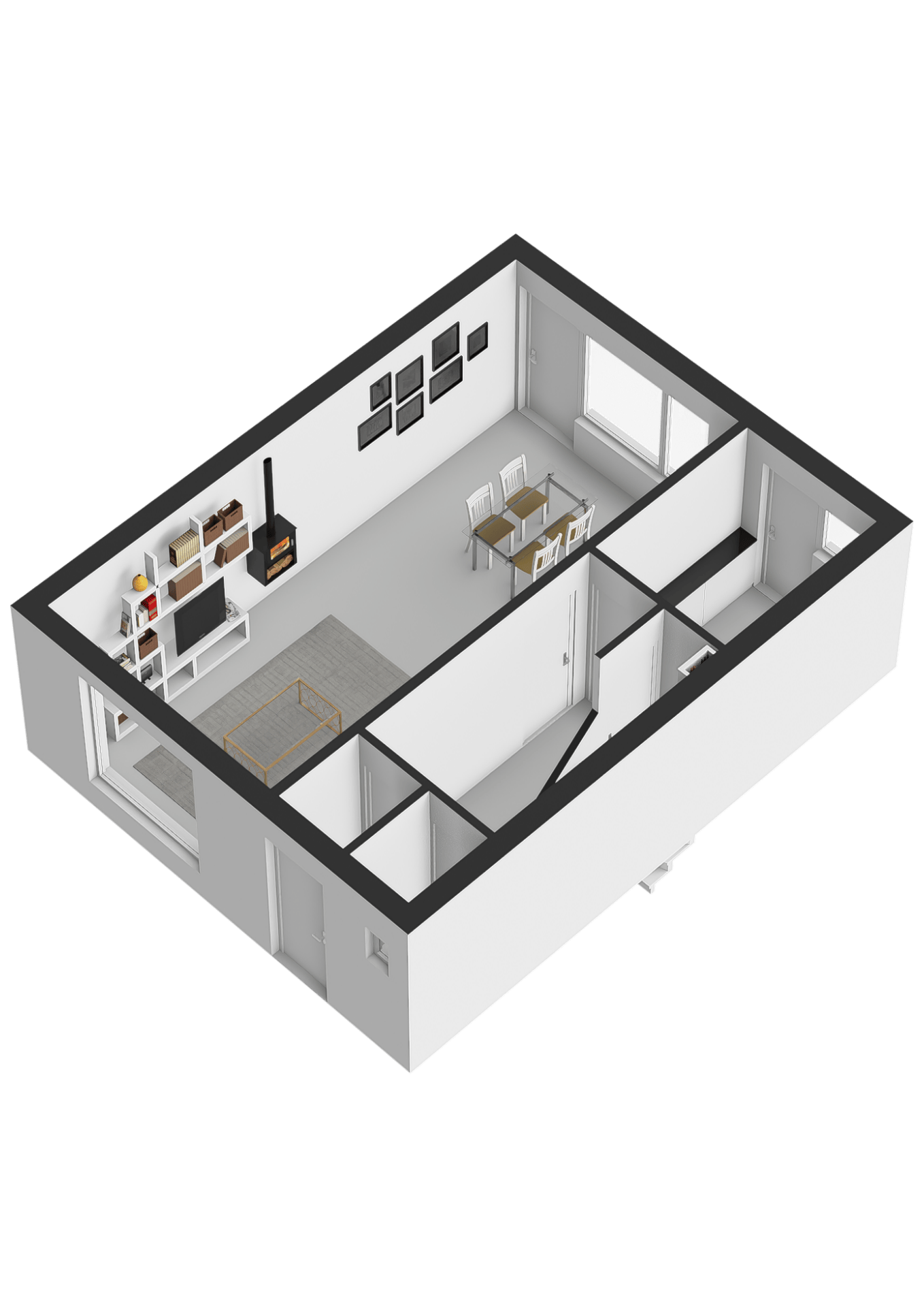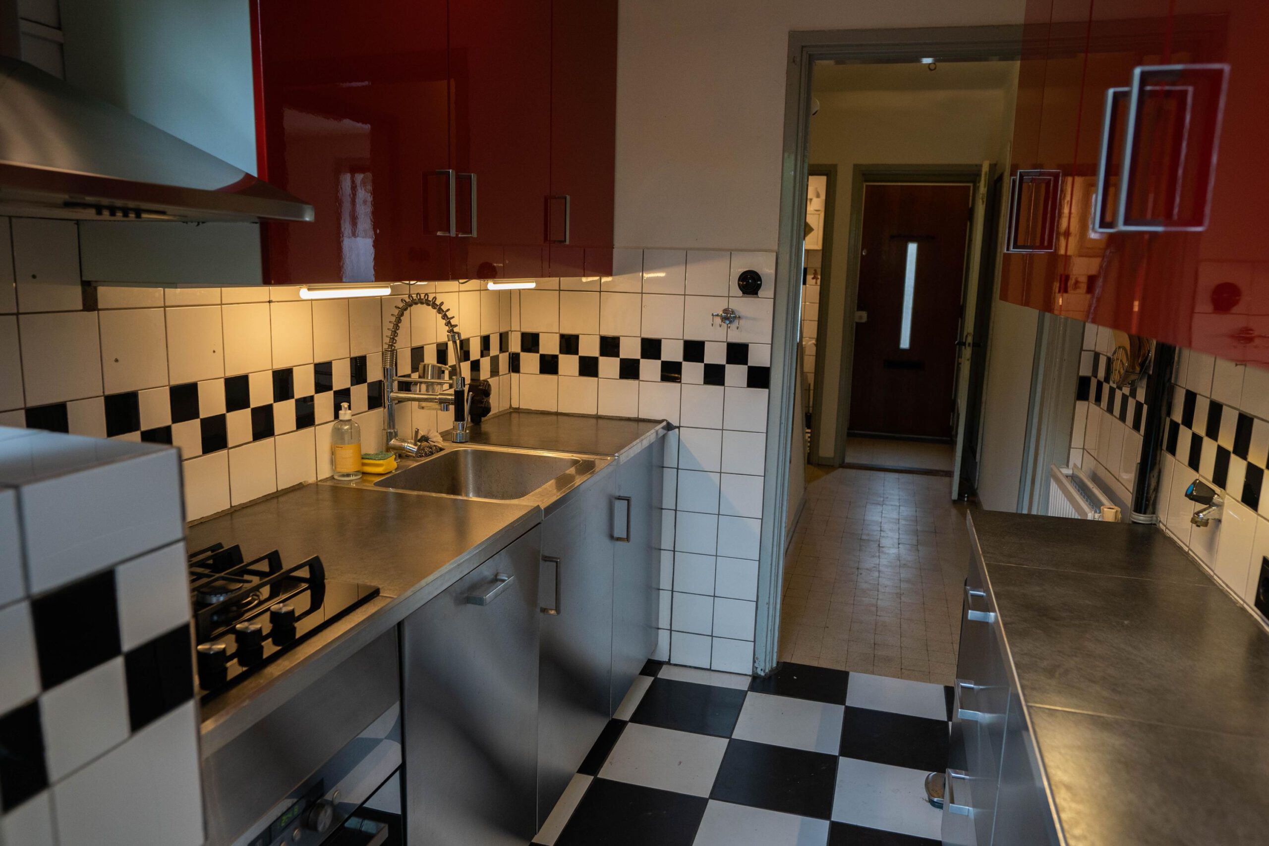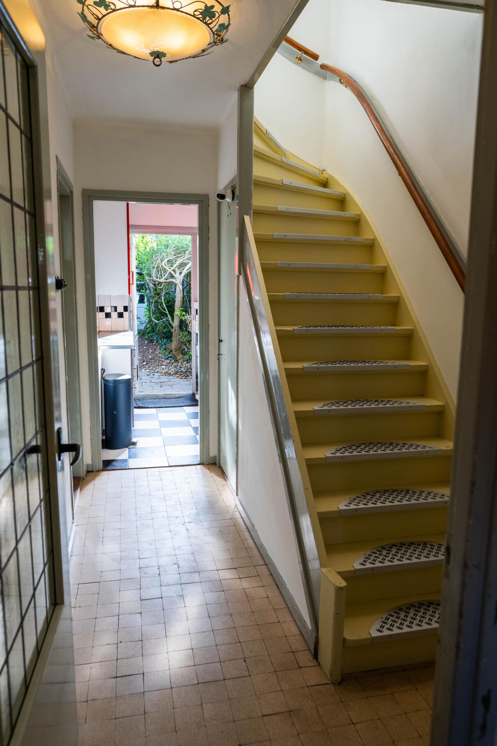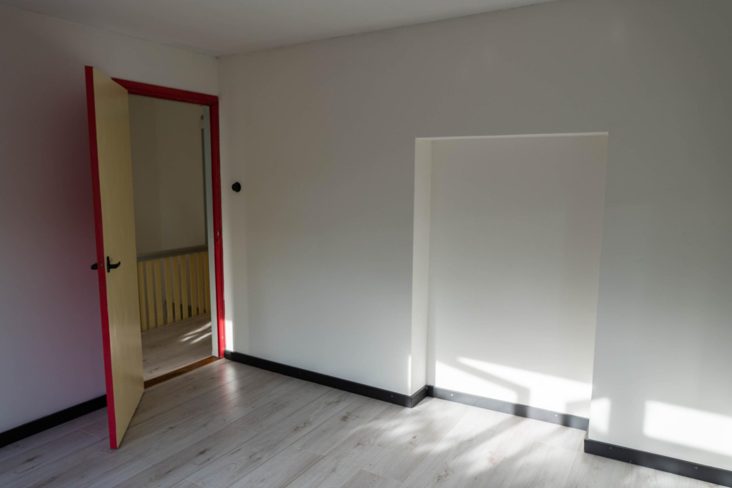 Je komt binnen via de hal met toegang tot het toilet, een praktische trapkast en de trap naar de eerste verdieping. Vanuit de gang loop je door naar de keuken en de lichte doorzonwoonkamer. Dankzij grote raampartijen aan beide zijden geniet je hier de hele dag van natuurlijk licht. De woonkamer biedt direct toegang tot de zonnige tuin, net als de keuken.