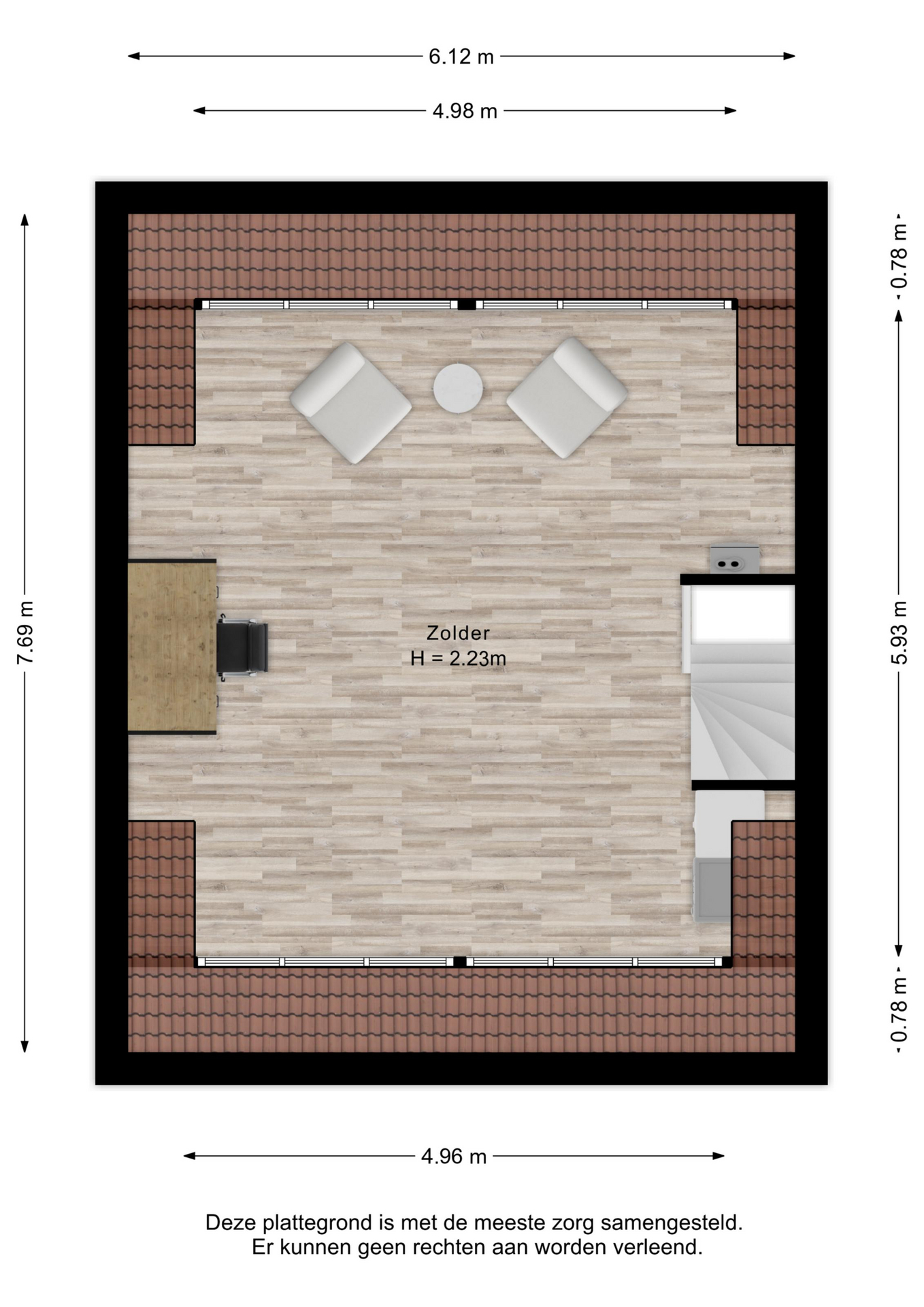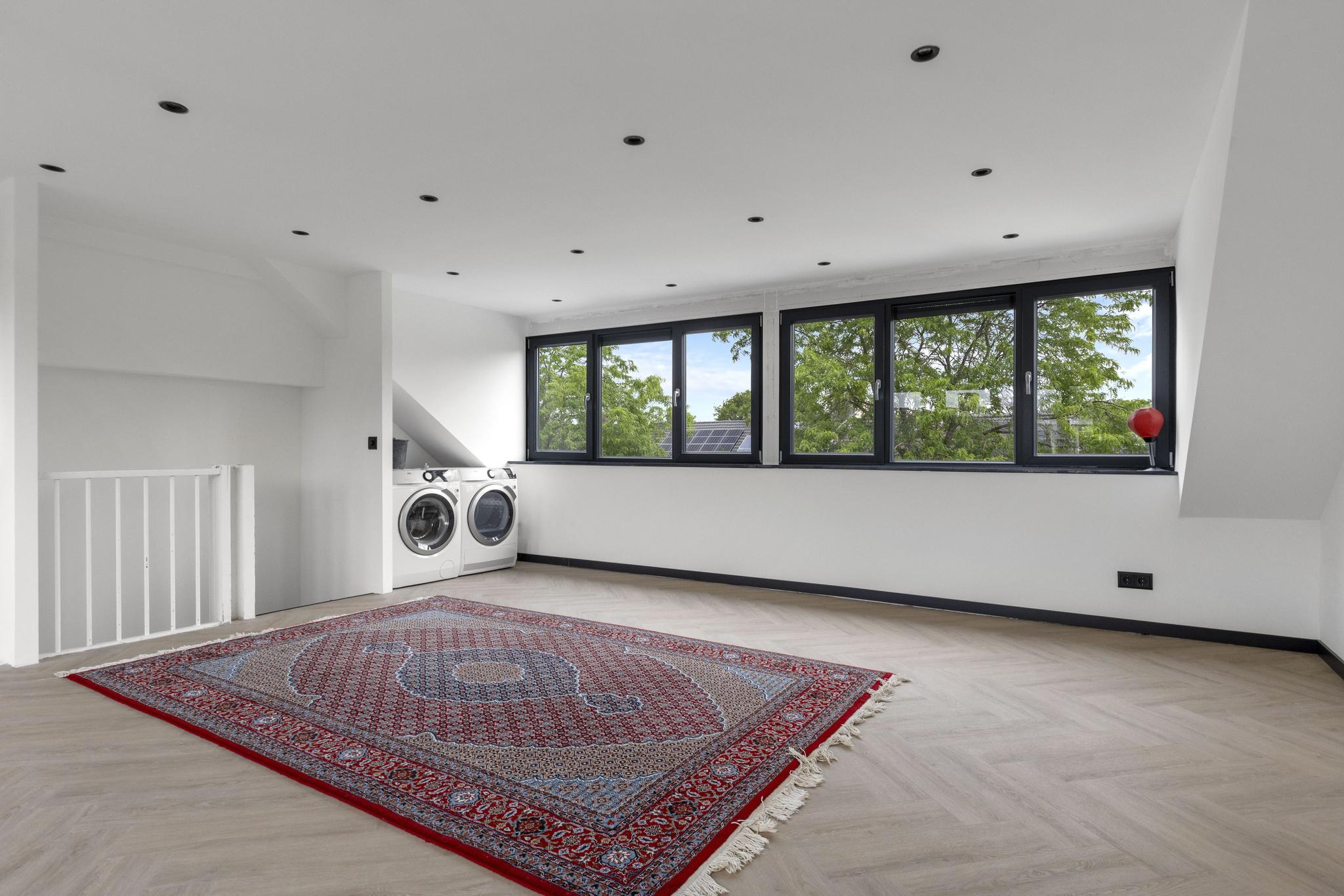 De tweede verdieping is momenteel een grote open ruimte – dankzij de dubbele dakkapel is het hier mogelijk om eenvoudig twee extra slaapkamers te creëren, een thuiswerkplek, of een hobbyruimte. De keuze is aan jou! Tevens zijn hier de cv ketel en de mechanische ventilatie geïnstalleerd.