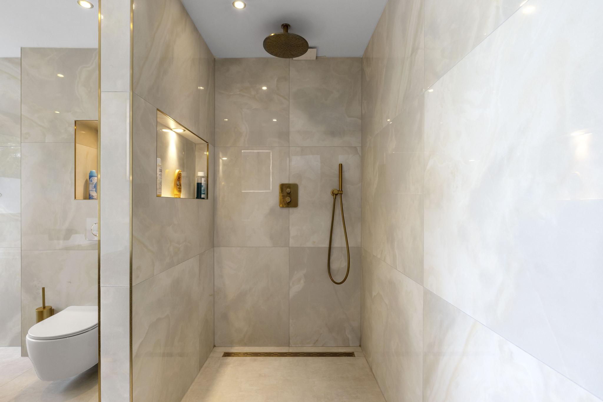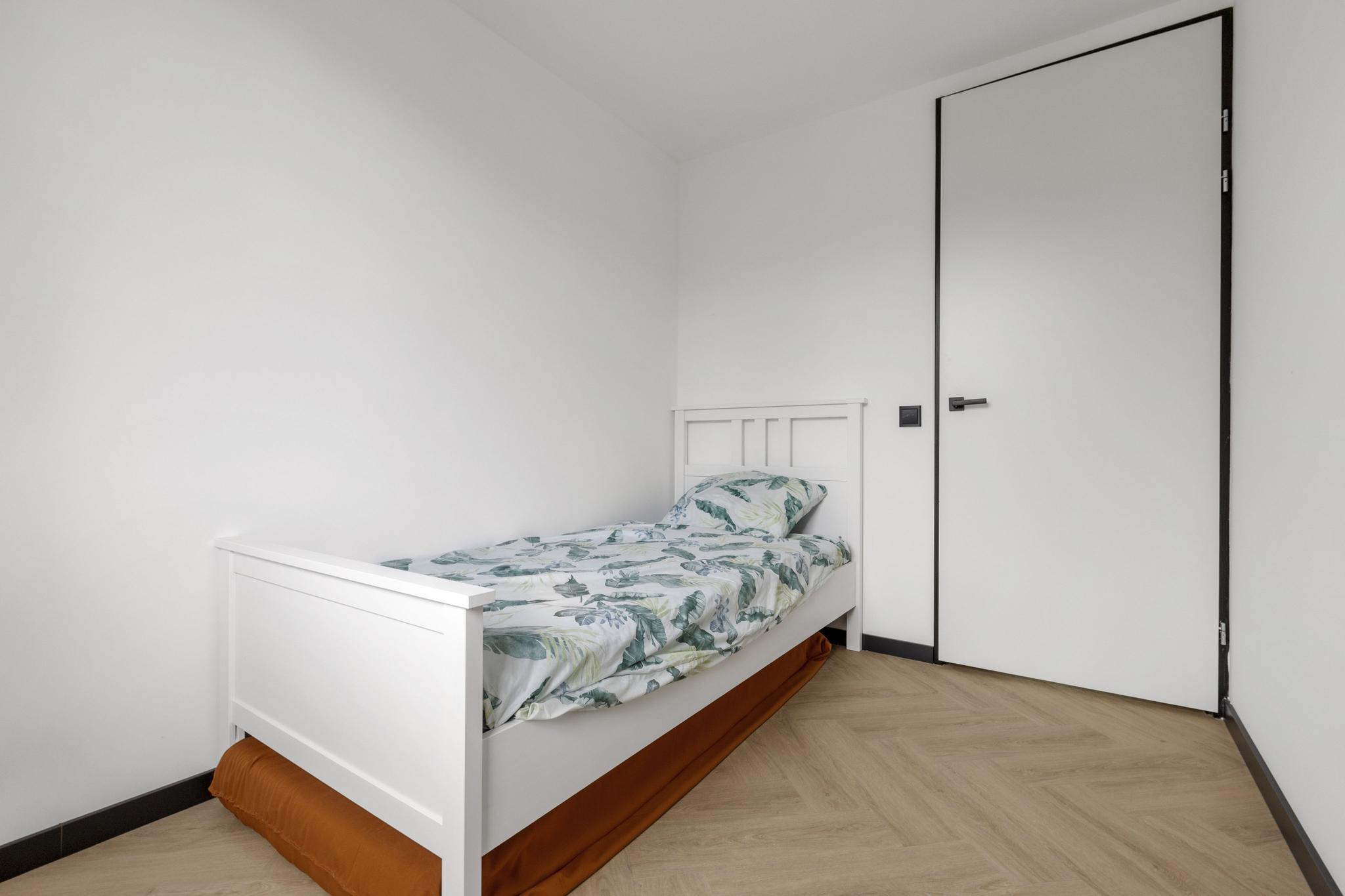 Op de eerste verdieping bevinden zich drie ruime slaapkamers, allen met veel daglicht en strak afgewerkt, waarbij de master-bedroom de beschikking heeft over een cinemawall.  De moderne badkamer is een echte eyecatcher: luxe uitgevoerd met een inloopdouche, tweede toilet, stijlvolle wastafel en een royaal bubbelbad - met zicht op de ingebouwde tv - om heerlijk in te ontspannen.