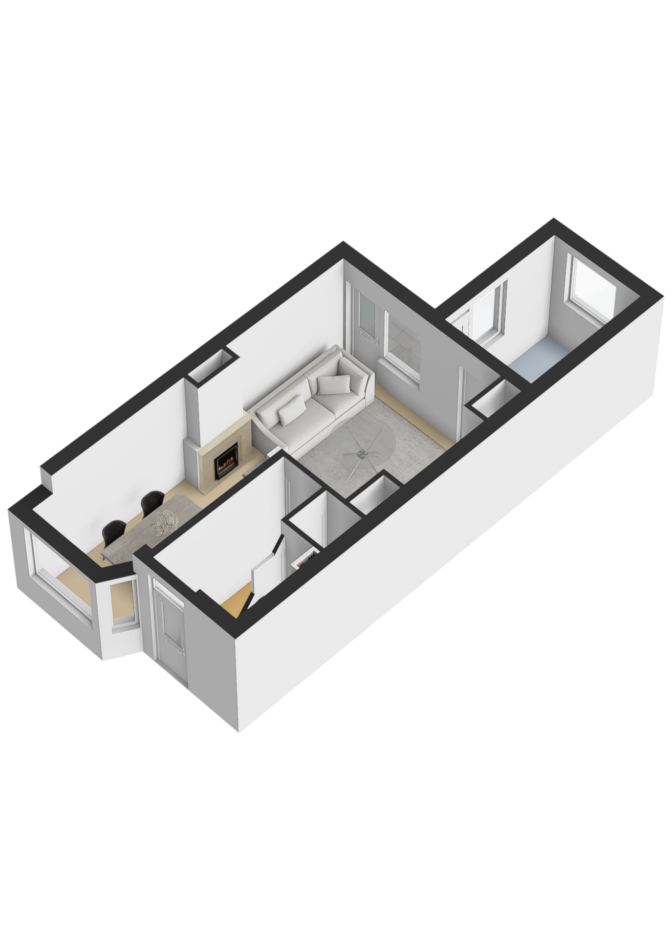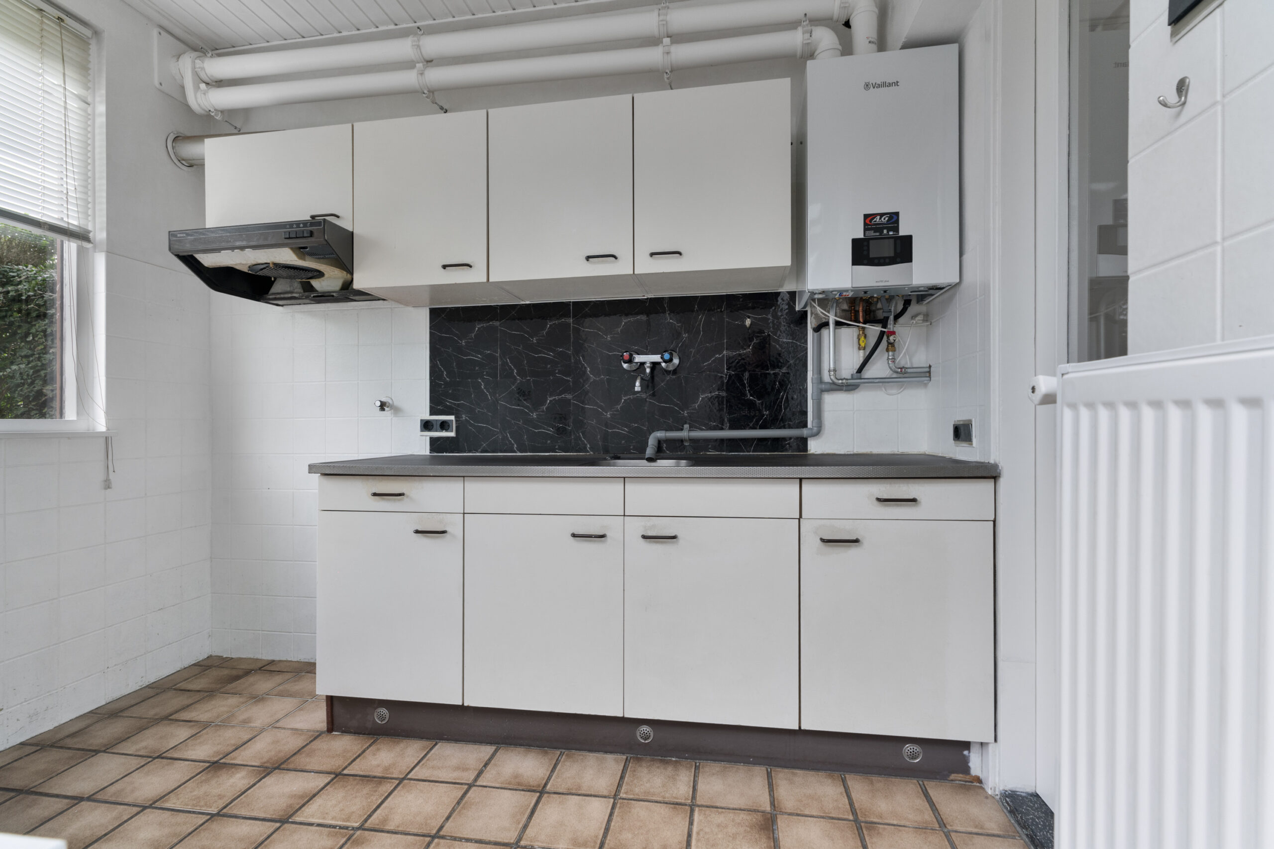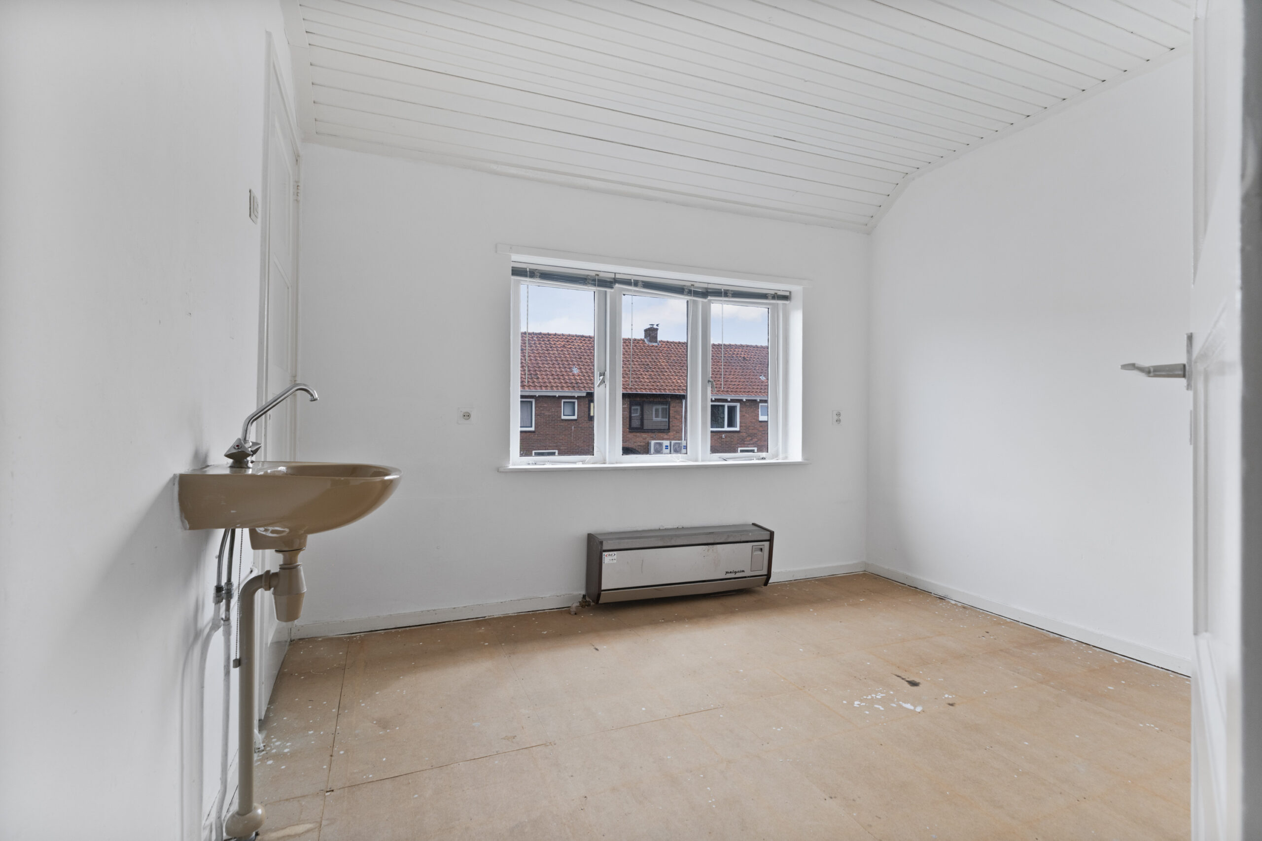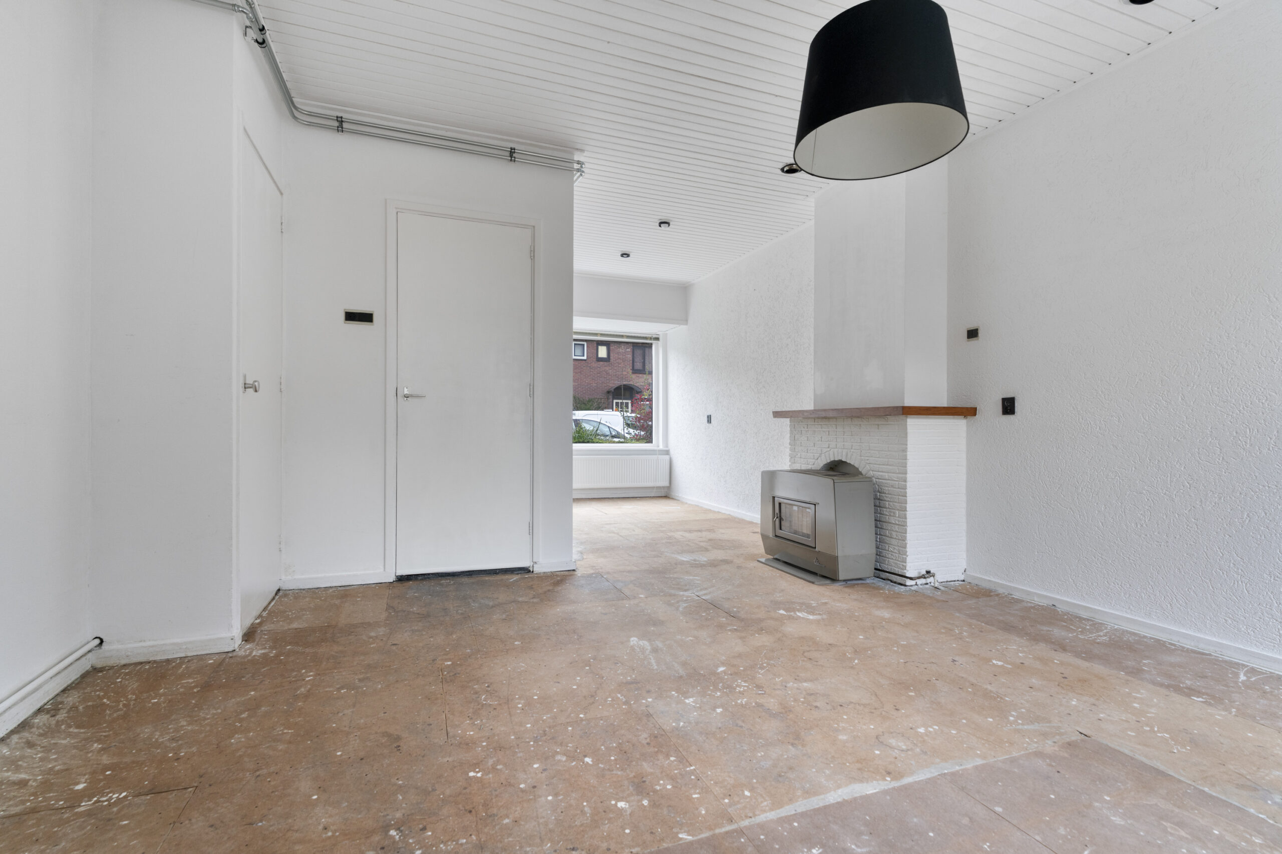 De woning zelf biedt volop mogelijkheden, maar dient wel gemoderniseerd te worden. Je komt binnen in de hal met toegang tot de trap naar de eerste verdieping, een praktische trapkast en het toilet. De woonkamer is voorzien van een gaskachel en biedt een goede basis voor een sfeervolle leefruimte. Aan de achterzijde bevindt zich de keuken in de uitbouw, waar tevens een nieuwe cv-ketel is geplaatst.