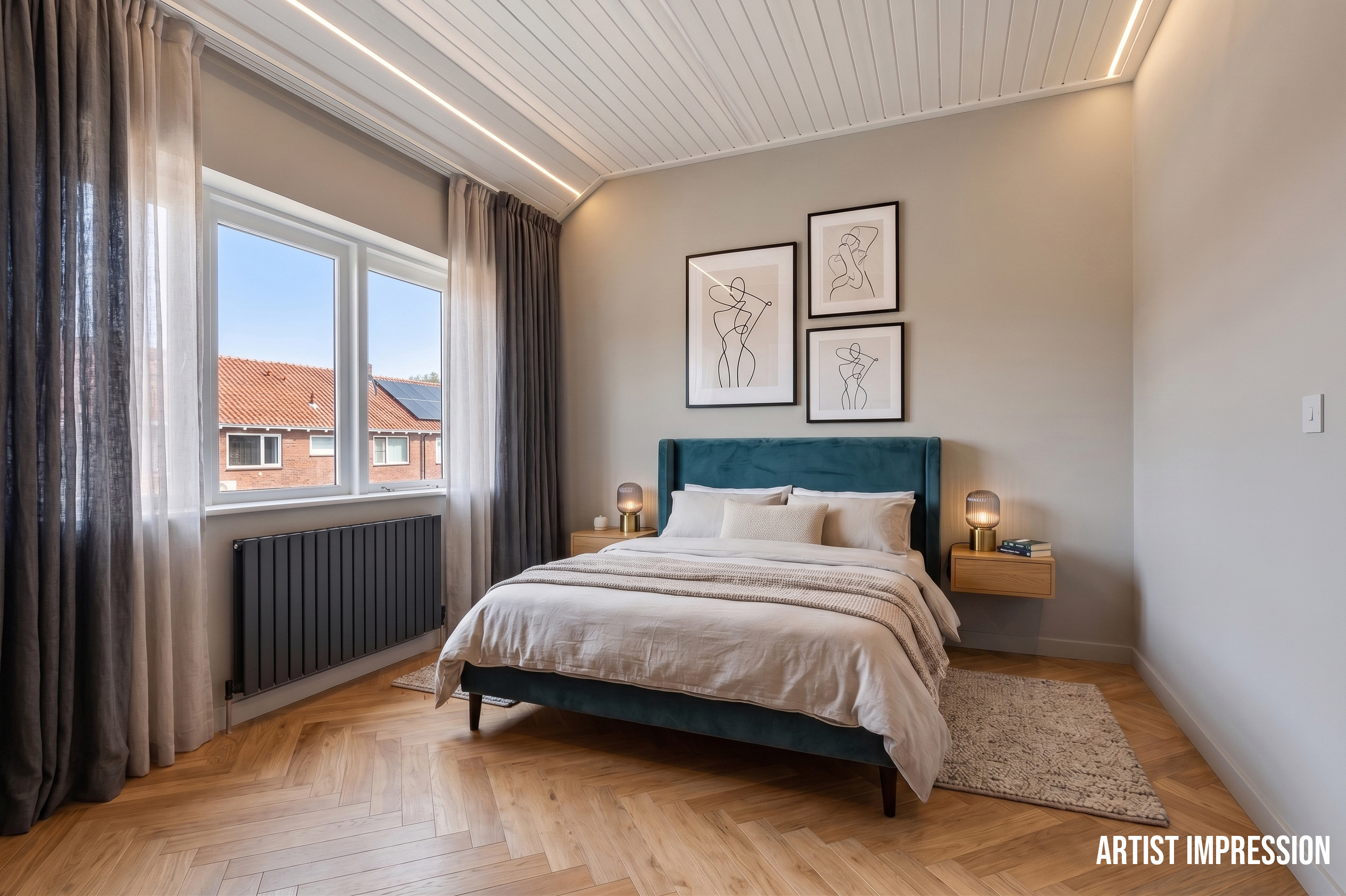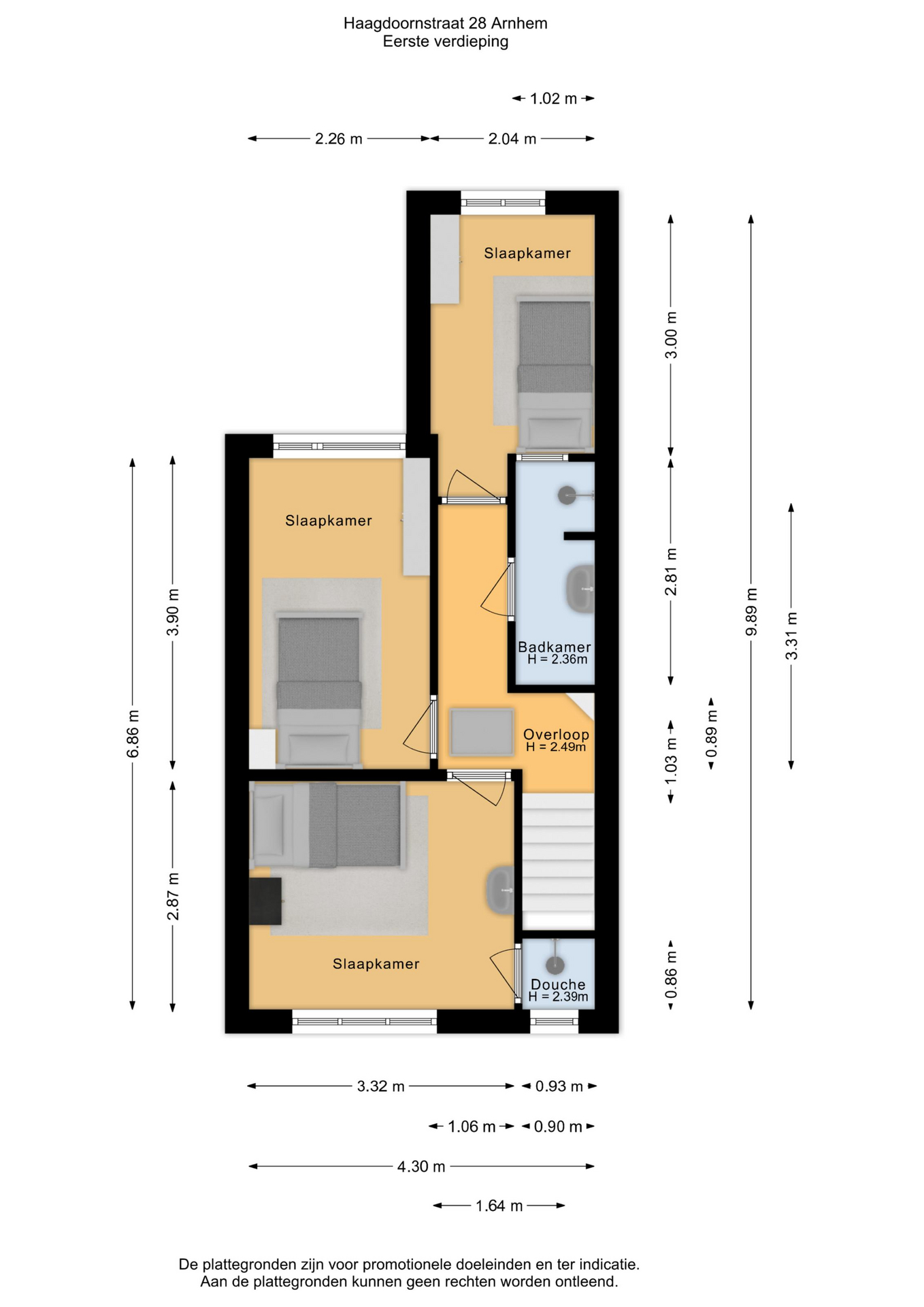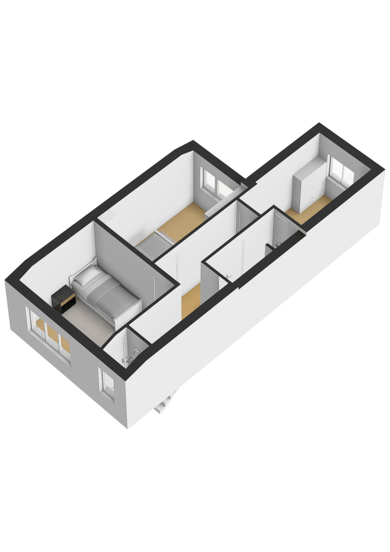 Op de eerste verdieping zijn drie slaapkamers en een badkamer met douche en wastafel gesitueerd. Via de overloop bereik je met een vlizotrap de tweede verdieping. Deze zolderverdieping biedt extra bergruimte, maar met een nokverhoging is hier ook prima extra woonruimte te realiseren.