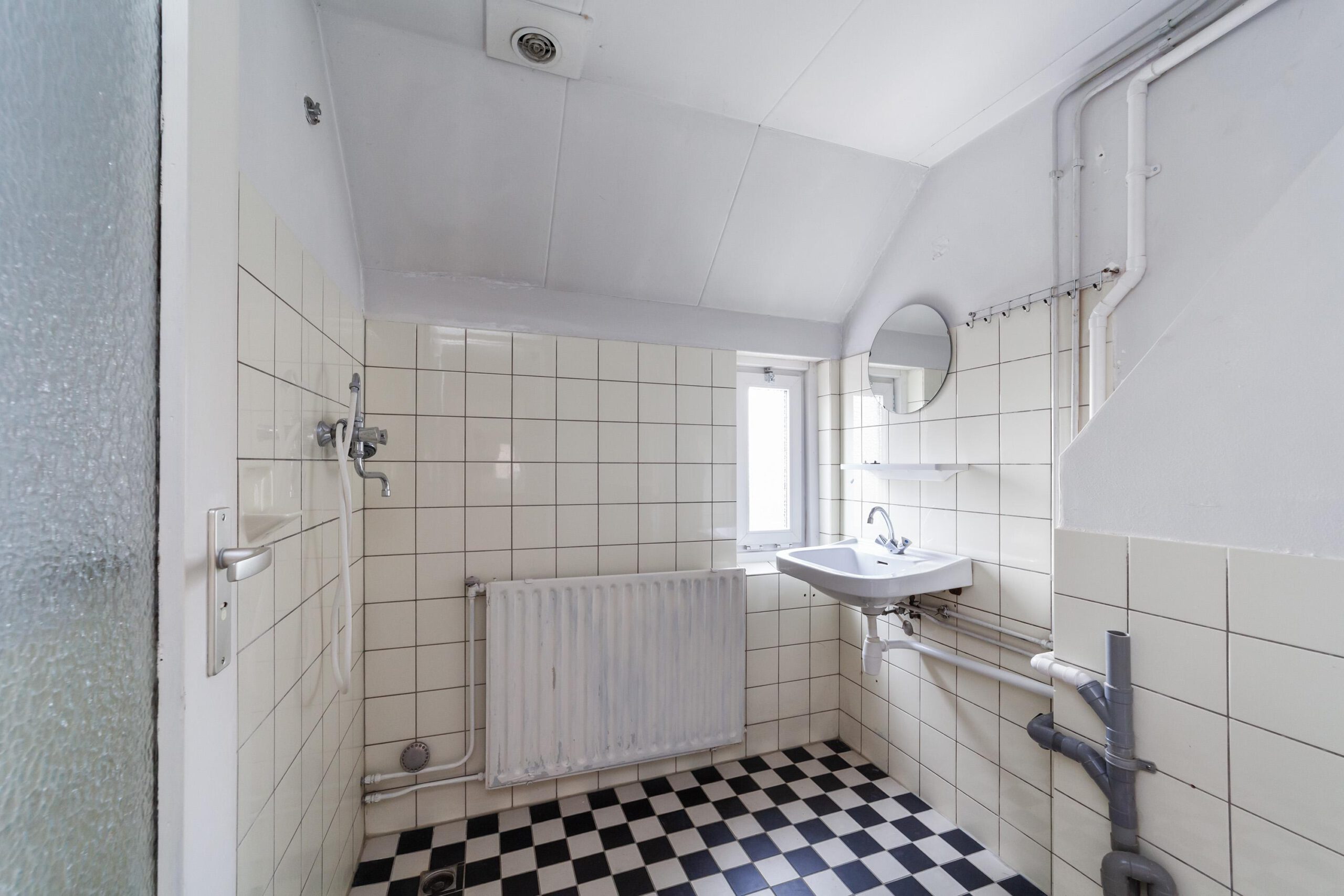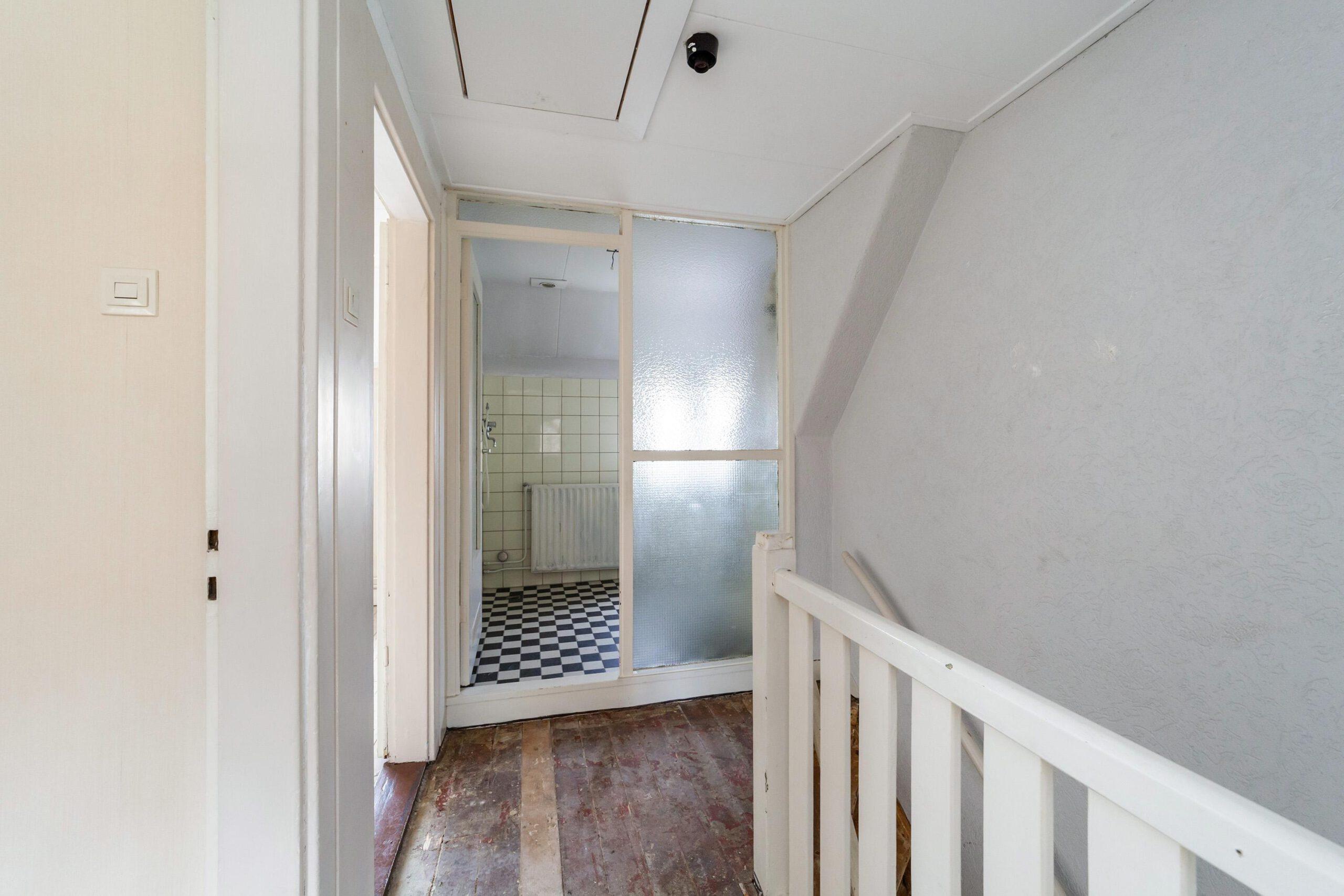 Overloop, badkamer met douche en wastafel en 3 slaapkamers.
