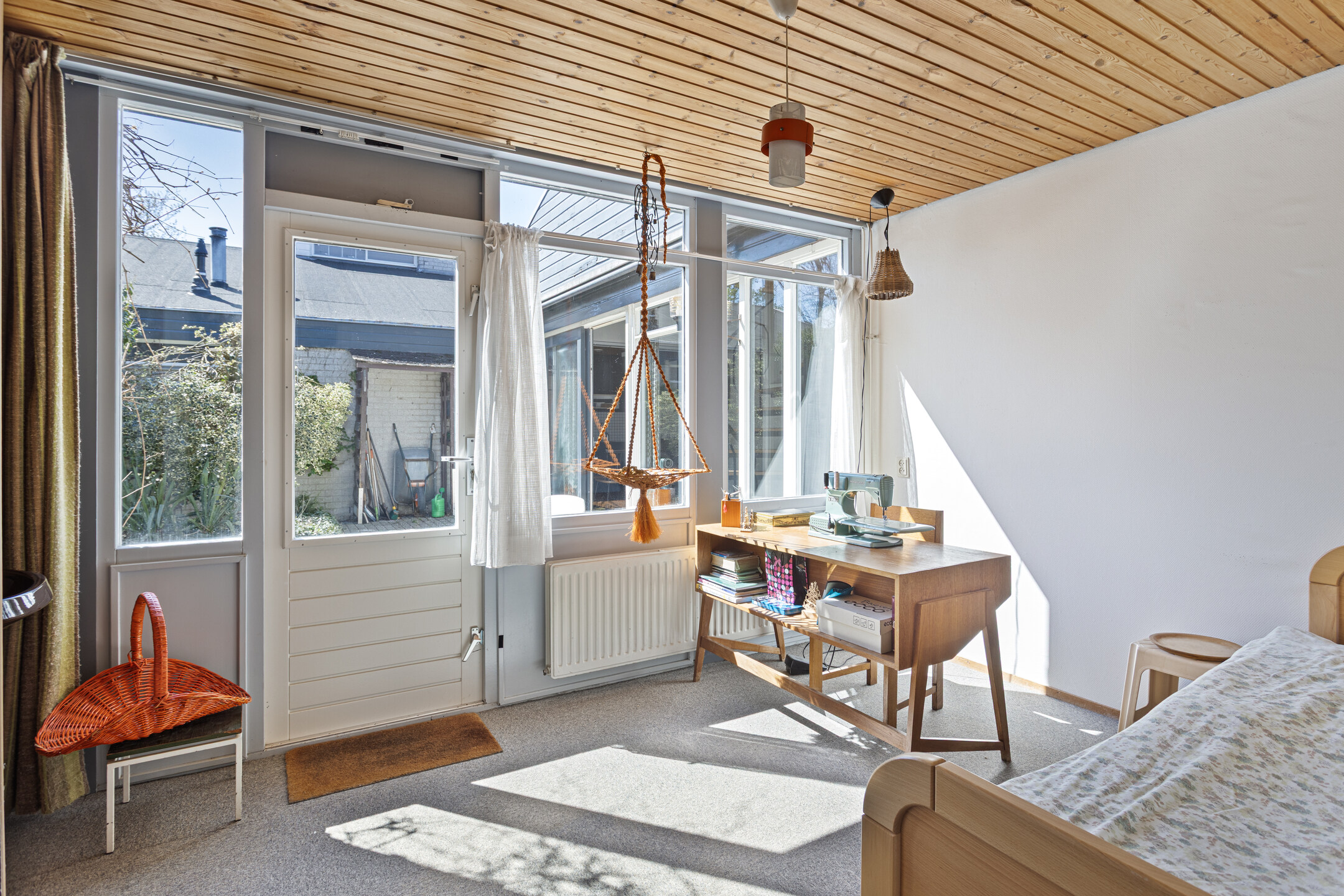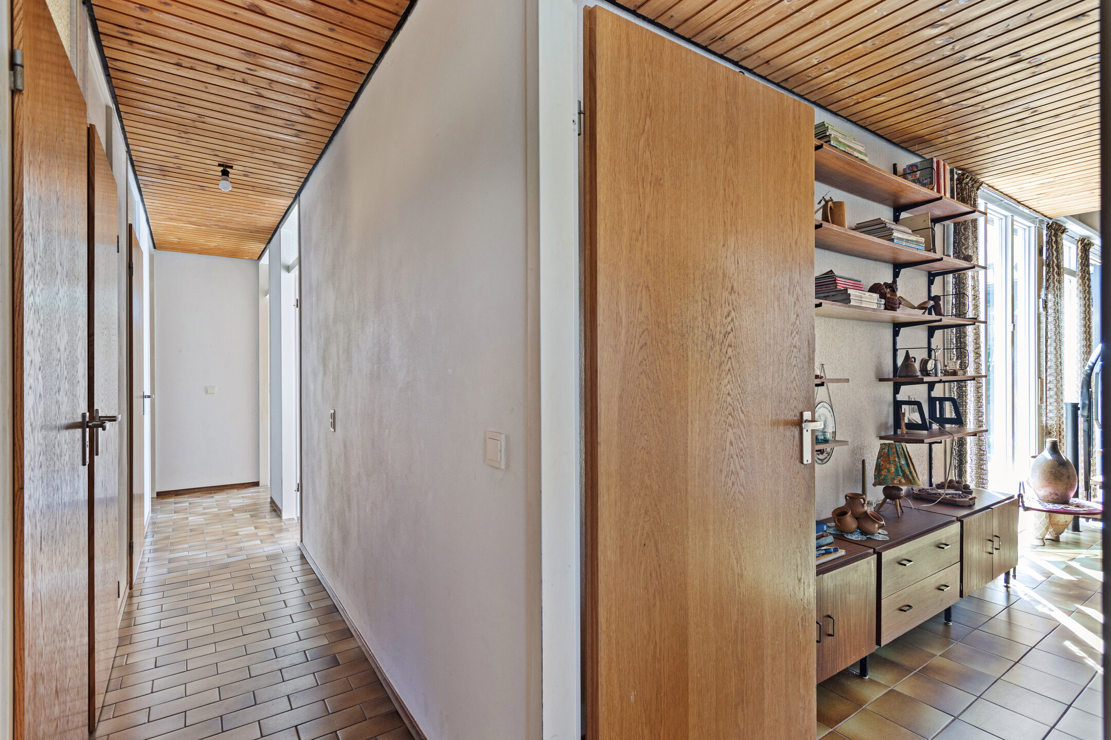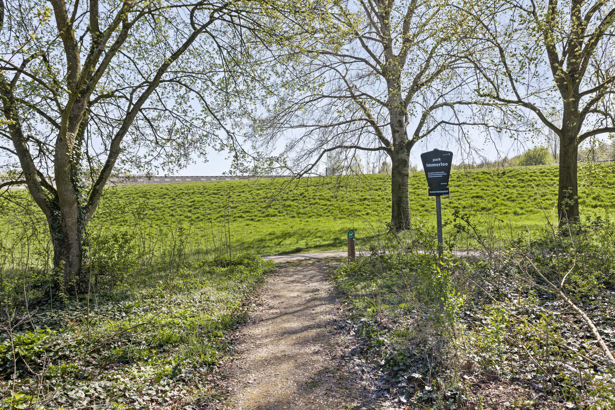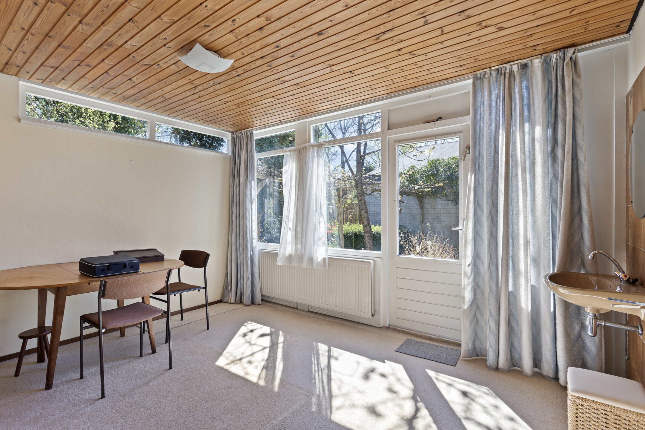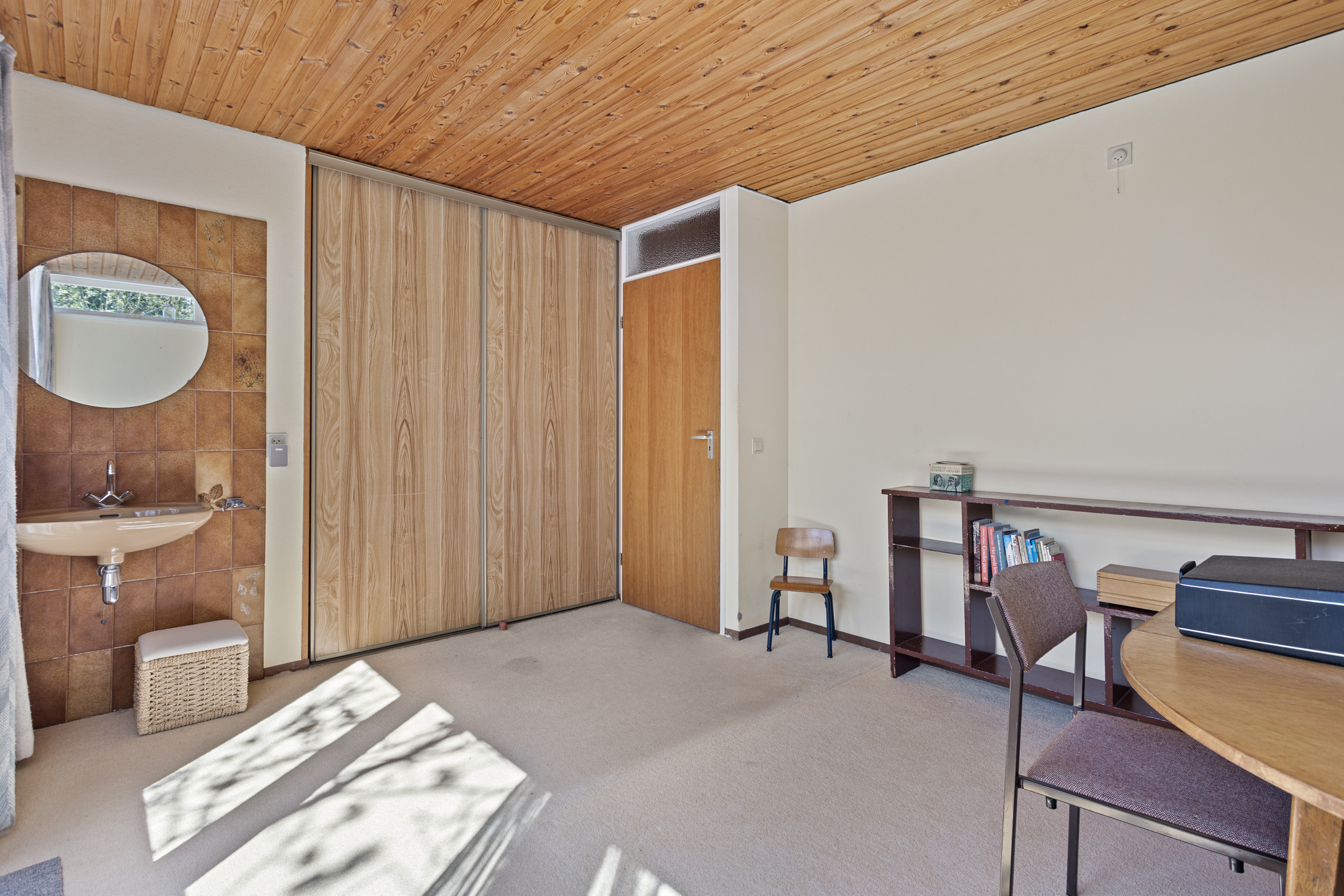Op een heerlijk rustige locatie, aan de rand van de wijk Holthuizen in Arnhem-Zuid, staat deze royale, levensloopbestendige, semi-bungalow hoekwoning die aan de achterzijde een vrije ligging heeft. Het huis beschikt over 4 ruime slaapkamers op de begane grond en een grote living met open keuken. De garage is eveneens voorzien van een tegelvloer en de garagedeur is elektrisch te bedienen. Het speelse karakter van de woning komt ook tot uiting in het hoge plafond in de woonkamer, de spiltrap die je naar de eerste verdieping leidt en de indeling op deze etage. De keurig aangelegde achtertuin wordt netjes bijgehouden en is mooi gelegen op het zuiden. Aan de achterzijde is er geen sprake van bebouwing. Het geheel grenst aan de Huissensedijk, waar voornamelijk sprake is van fietsers en achter de tuin ligt een wandelpad (onderdeel van het Klompenpad). Vanuit dit pad wandel je zo naar een groot park. De tuin is gemeten van de achtergevel van de woonkamer ongeveer 15 meter diep.
