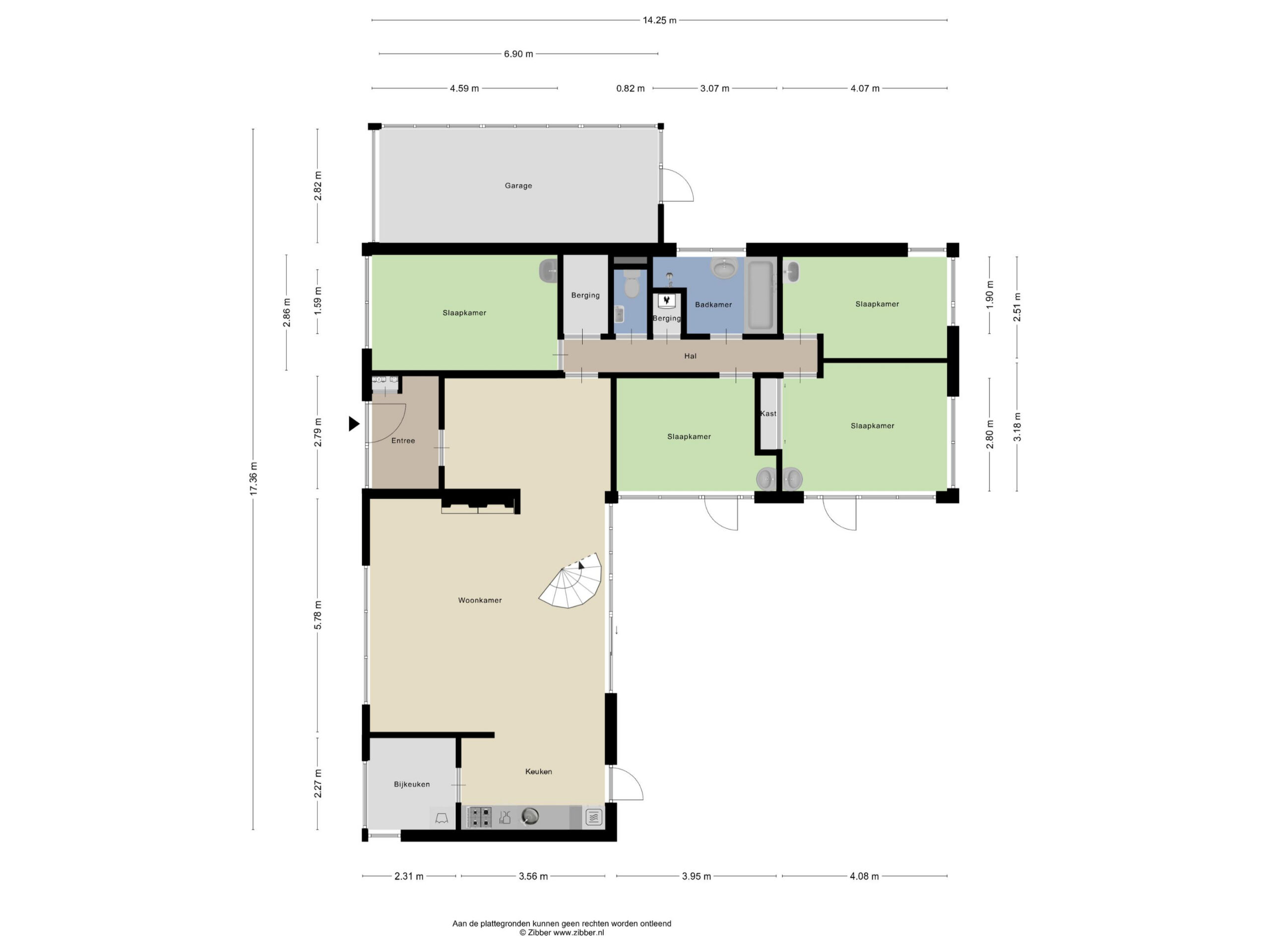Entree, hal, royale tuingerichte woonkamer met open haard en schuifpui naar de zonnige tuin. Open keuken met diverse inbouwapparatuur en doorgang naar de achtertuin en bijkeuken. De bijkeuken is voorzien van een toegangsdeur naar de voorzijde en deze ruimte beschikt over een wateraansluiting. Vanuit de woonkamer heeft u toegang via een hal naar een separaat toilet en 4 ruime slaapkamers. De 2 slaapkamers aan de tuinkant, zijn alle voorzien van een deur naar de tuin toe. De badkamer beschikt over een inloopdouche, wastafel en ligbad. De woonkamer biedt door middel van een vaste trap toegang naar de 1e verdieping (entresol). Op deze verdieping is een slaapkamer en een zolderberging met mogelijkheid tot het creëren van ca. 40 m² extra kantoor-, klus- of slaapruimte (middels dakkapel)