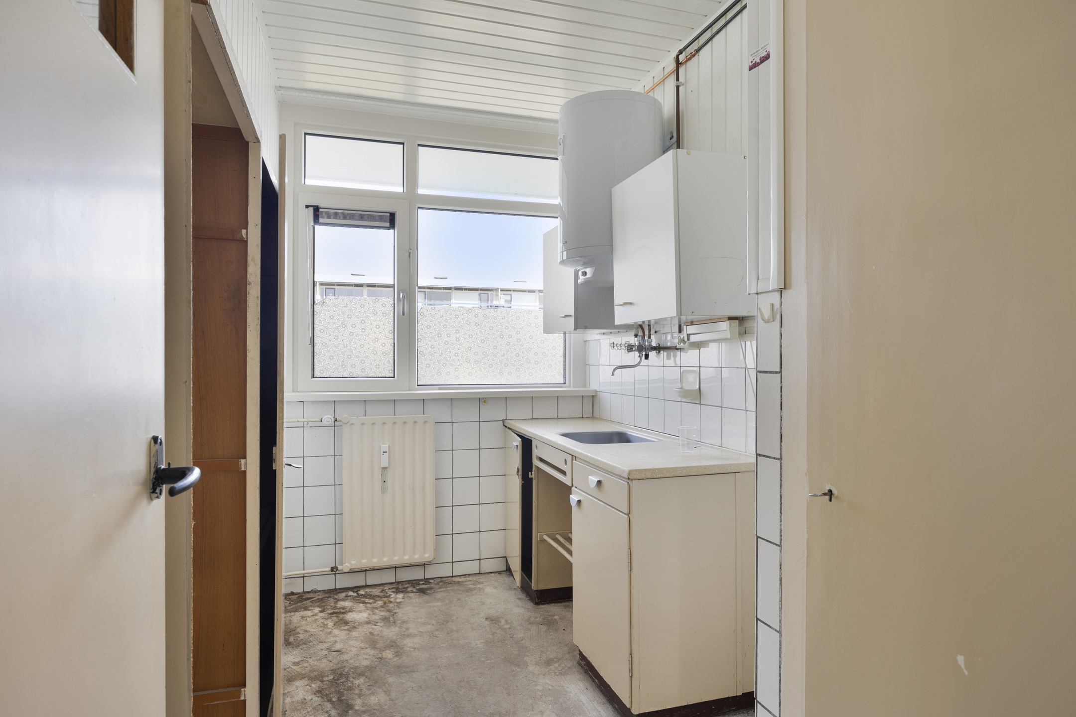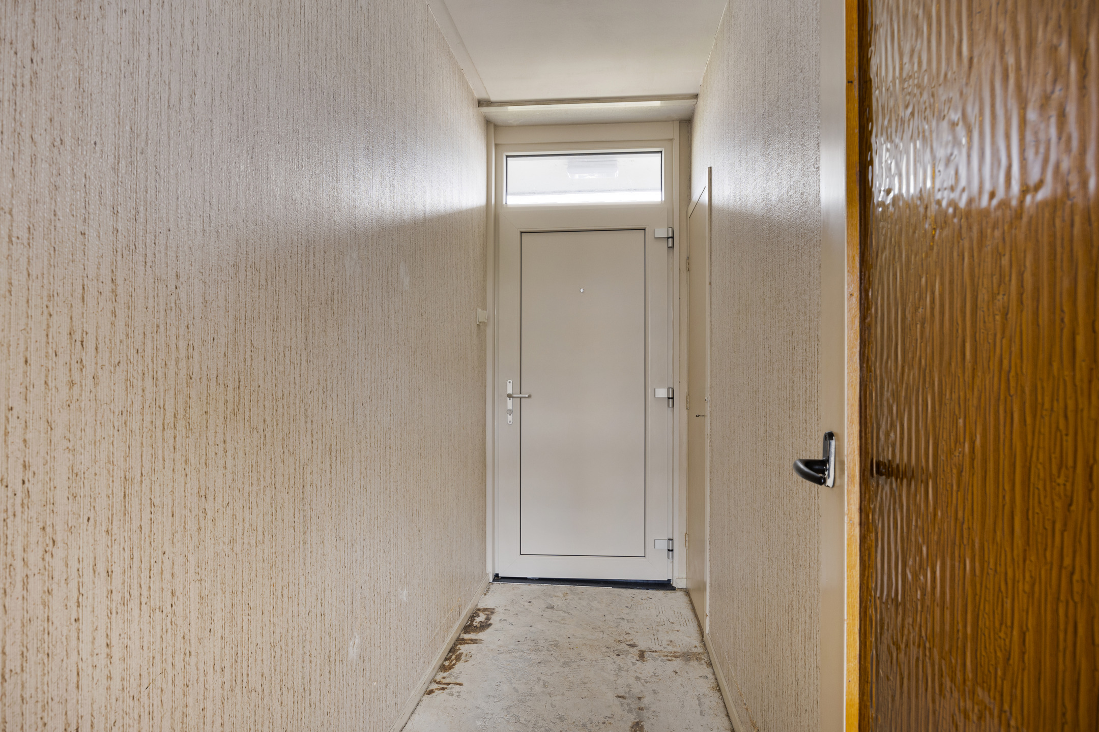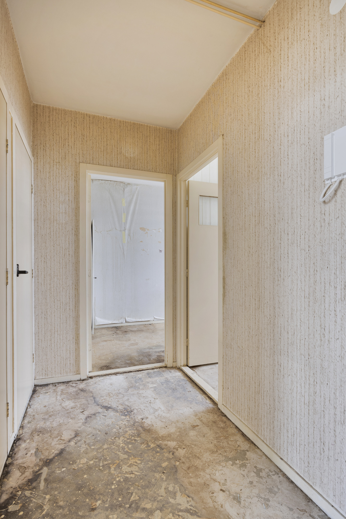 Entree/tochtportaal, hal, toilet, inbouwkeuken, royale lichte woonkamer met toegang tot het balkon, slaapkamer met toegang tot het balkon. Totaal zijn er 3 slaapkamers. Nette badkamer met wastafel en open douche. Berging in de onderbouw.
