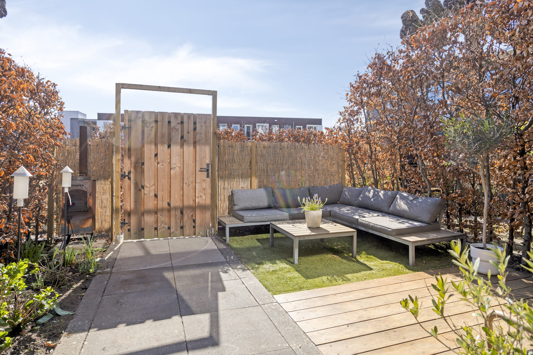 Aan de voorzijde geniet je van een prachtig verzorgde tuin op het zuiden, waar je heerlijk kunt ontspannen in de zon. Perfect ingericht met ruimte voor een loungebank en een zithoek.