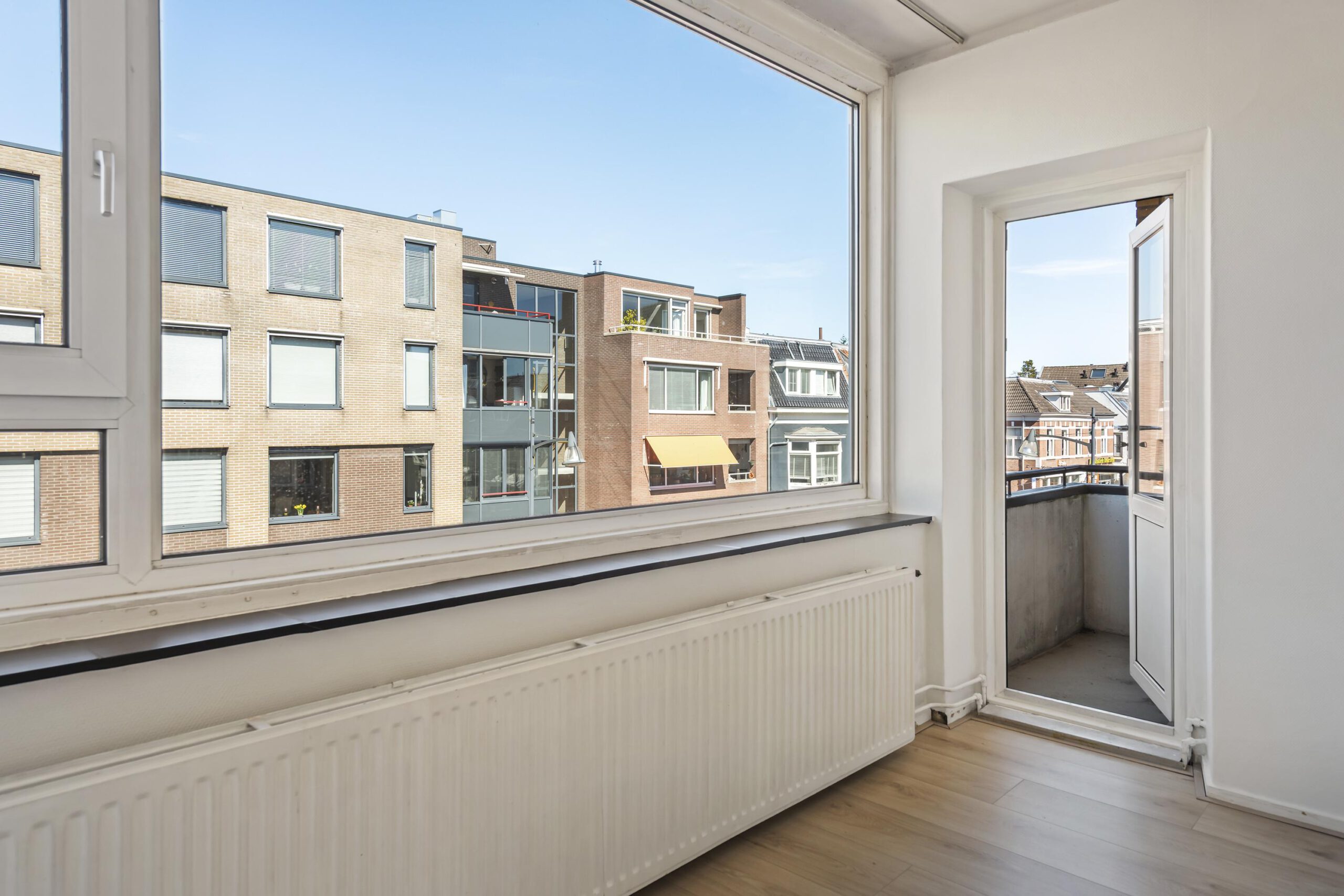 - Het gehele appartement is voorzien van laminaatvloeren en grotendeels dubbel glas in kunststof kozijnen en deuren.