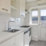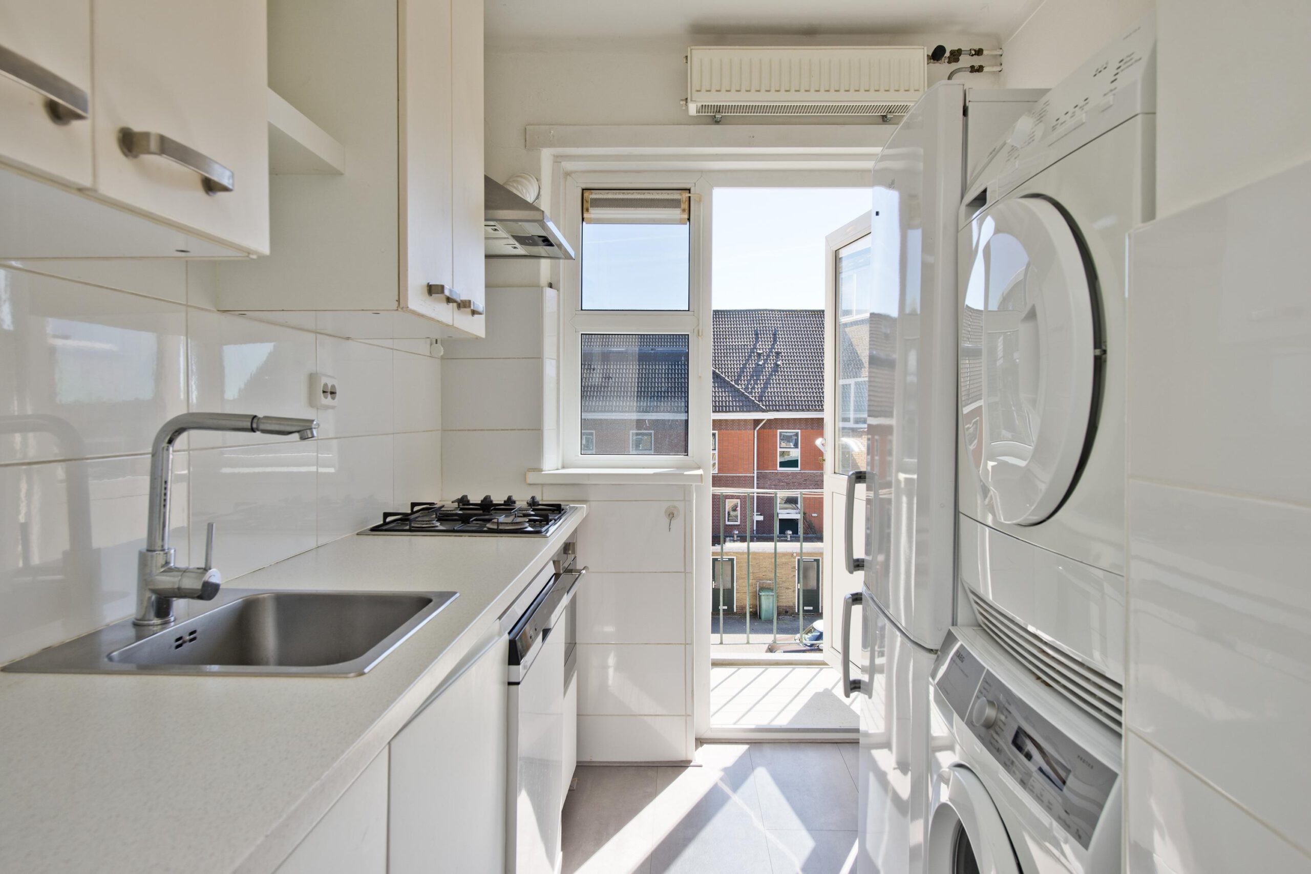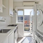 - In de keuken blijft ruimte achter voor een wasmachine en een droger.