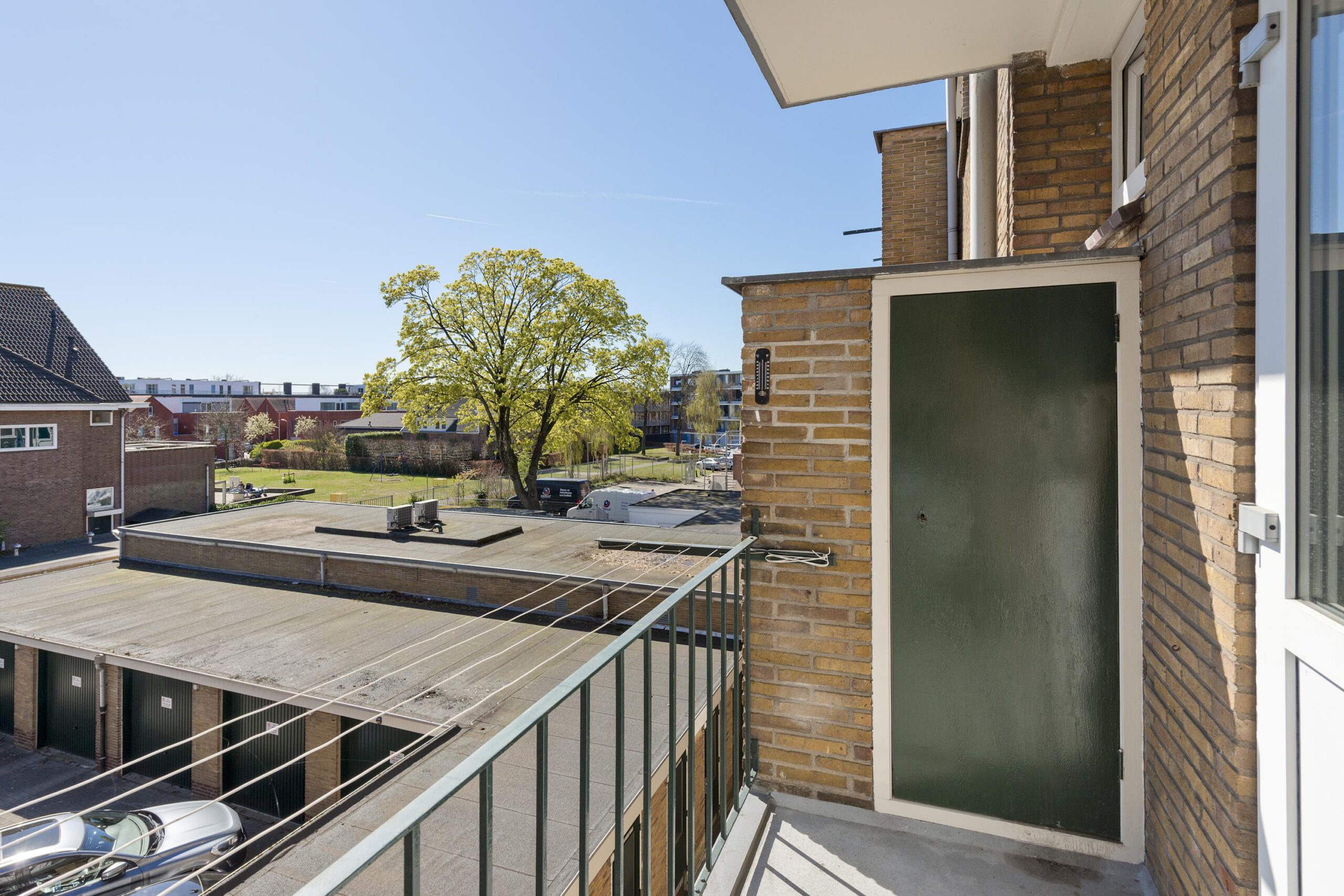 Heeft men meer behoefte aan rust en zon, dan kan ook gekozen worden voor het balkon aan de achterzijde.