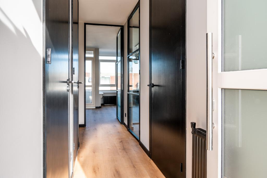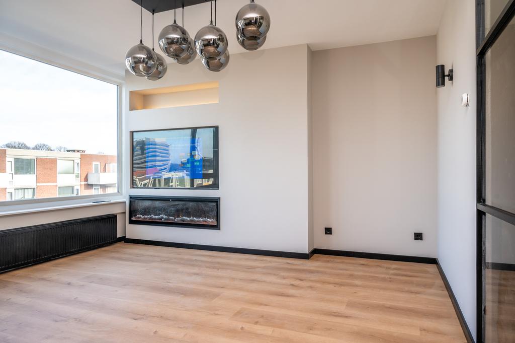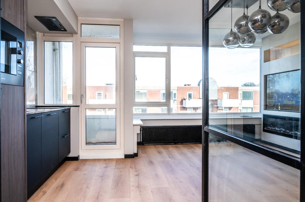 4e Verdieping: entree, hal met meterkast, separaat toilet en badkamer voorzien van wastafel en inloopdouche, werkkast met cv opstelling, licht woonkamer met open keuken en toegang tot balkon en 2 ruime slaapkamers.