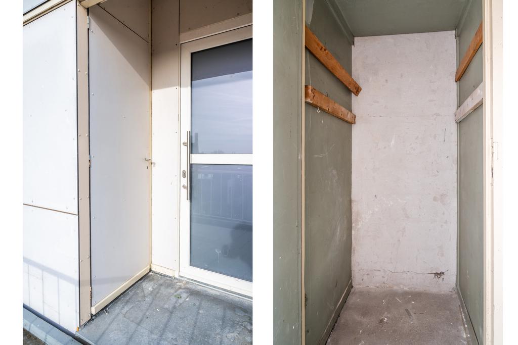 Begane grond: brievenbussen, intercom, lift en onderbouw met toegang tot de bergingen.