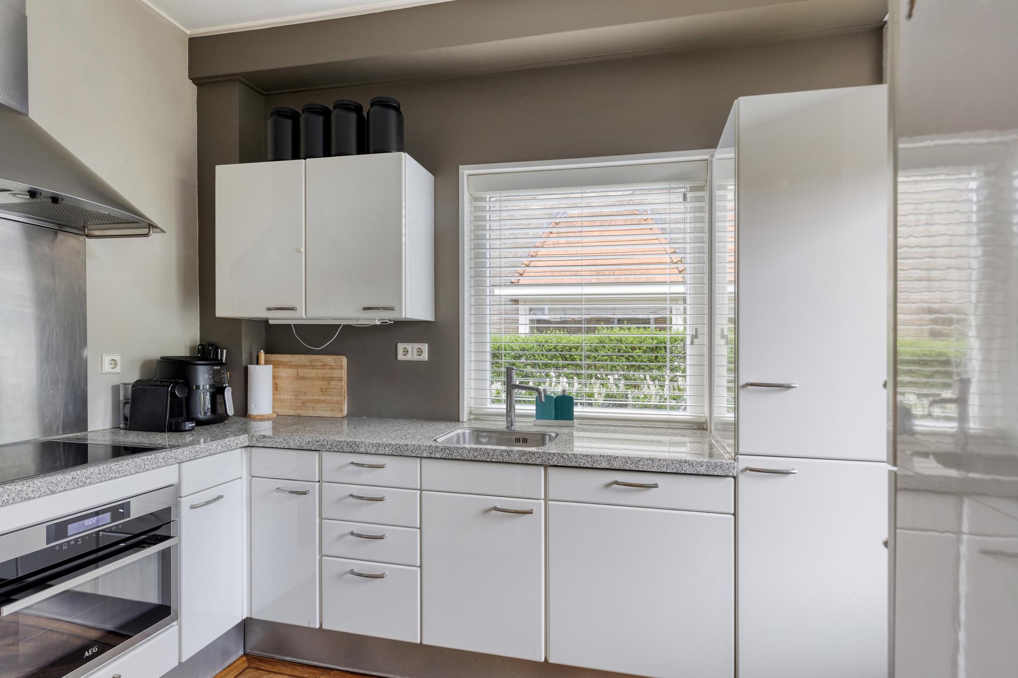 De L-vormige keuken is praktisch én gezellig, perfect voor wie graag kookt én ontvangt. De keuken staat in open verbinding met de eetkamer. Vanuit de eetkamer bereik je tuin via de openslaande deuren – de tuin is een fijne plek met volop privacy, een vrijstaande berging én extra ruimte achterin die ideaal is als extra opbergruimte.
