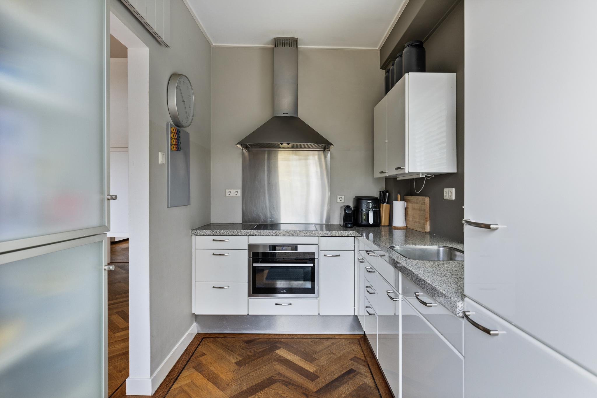 De L-vormige keuken is praktisch én gezellig, perfect voor wie graag kookt én ontvangt. De keuken staat in open verbinding met de eetkamer. Vanuit de eetkamer bereik je tuin via de openslaande deuren – de tuin is…