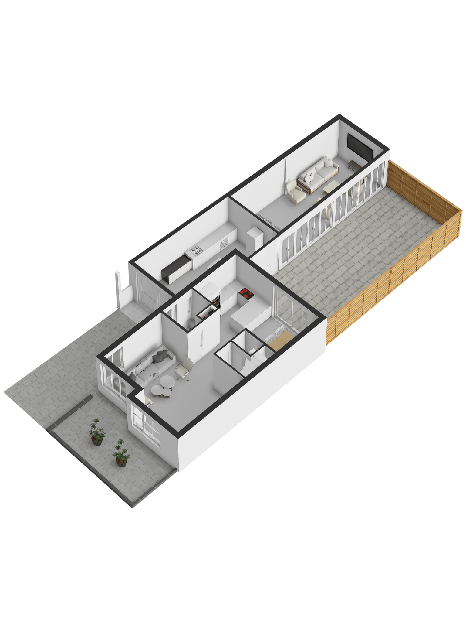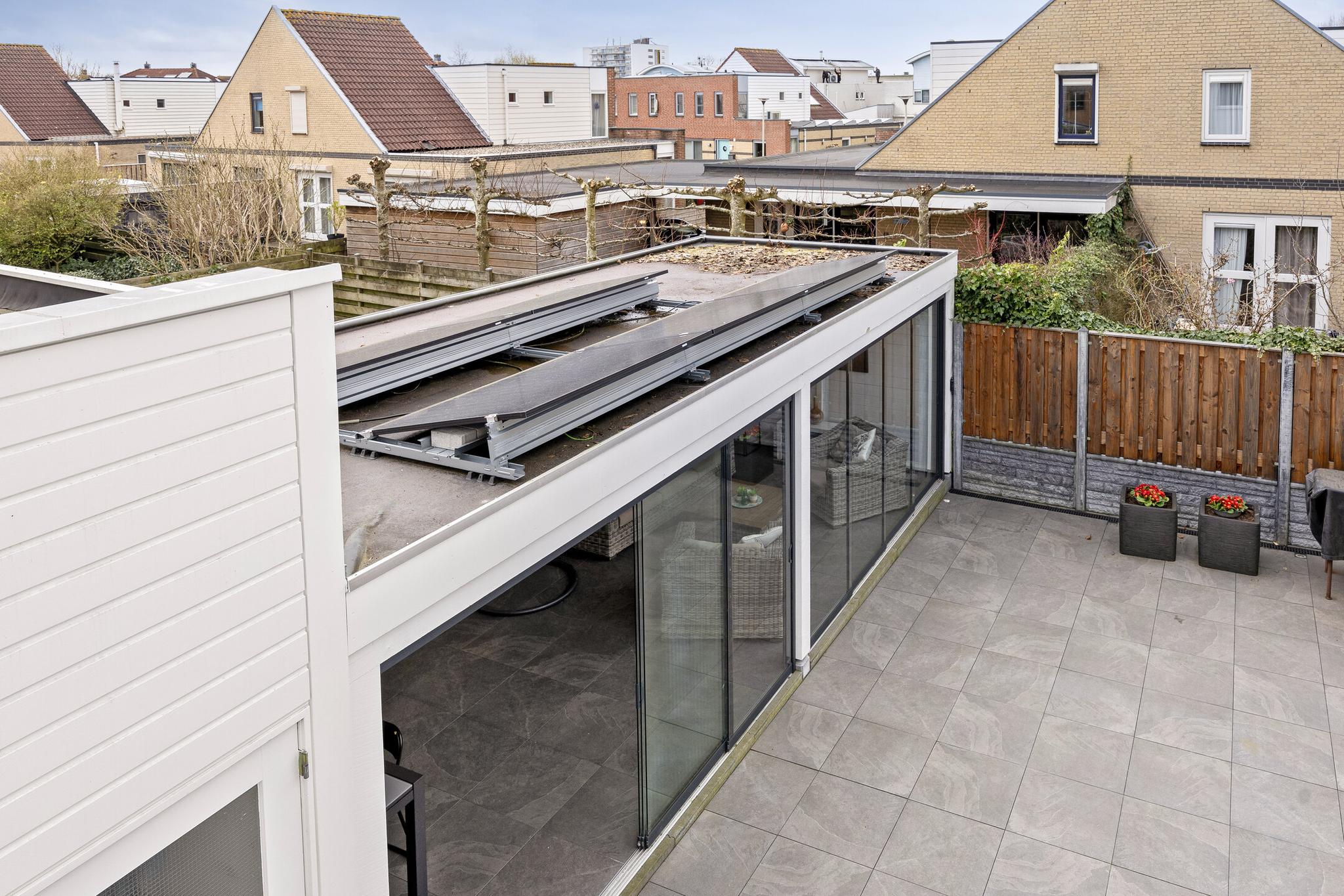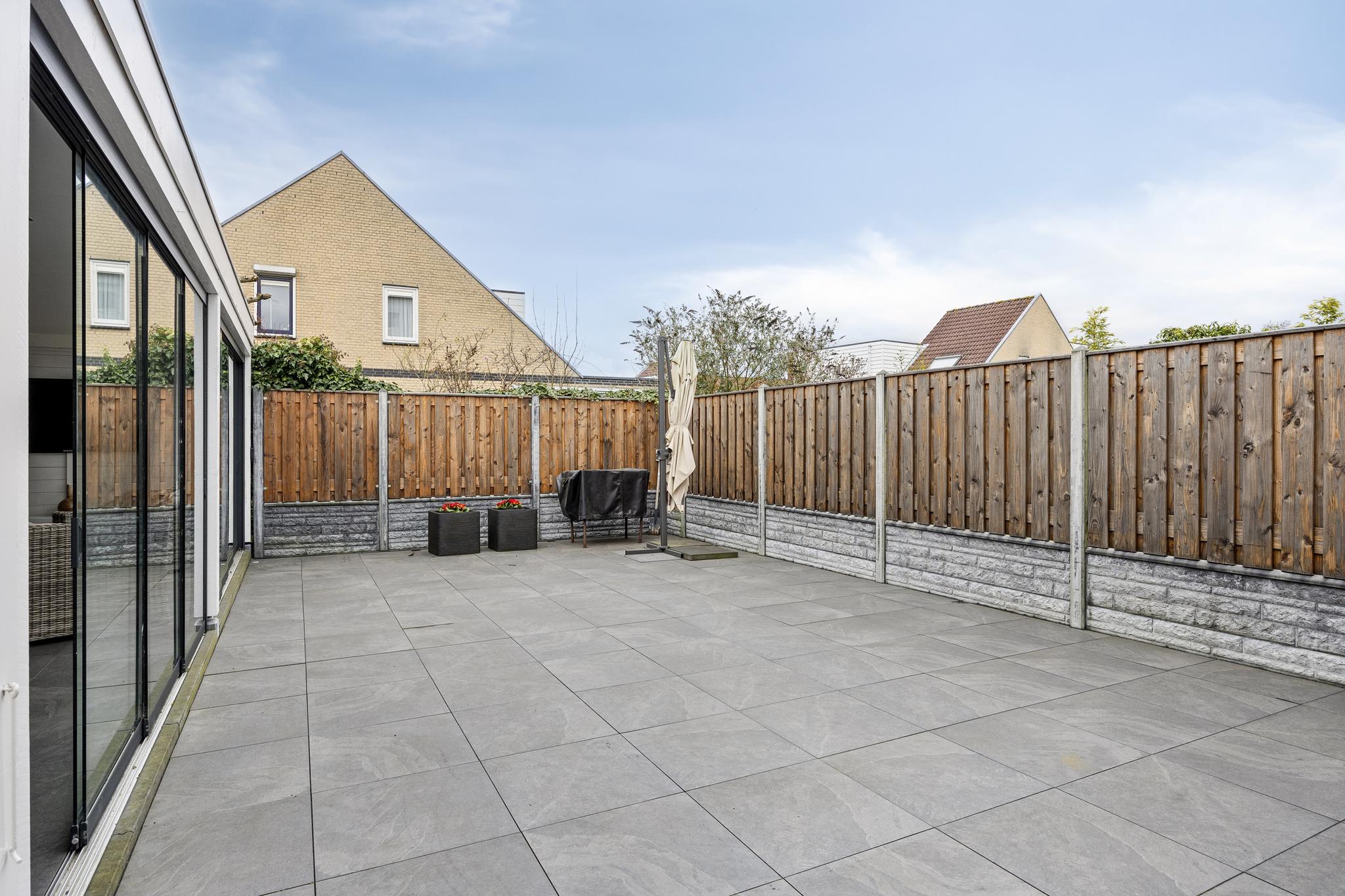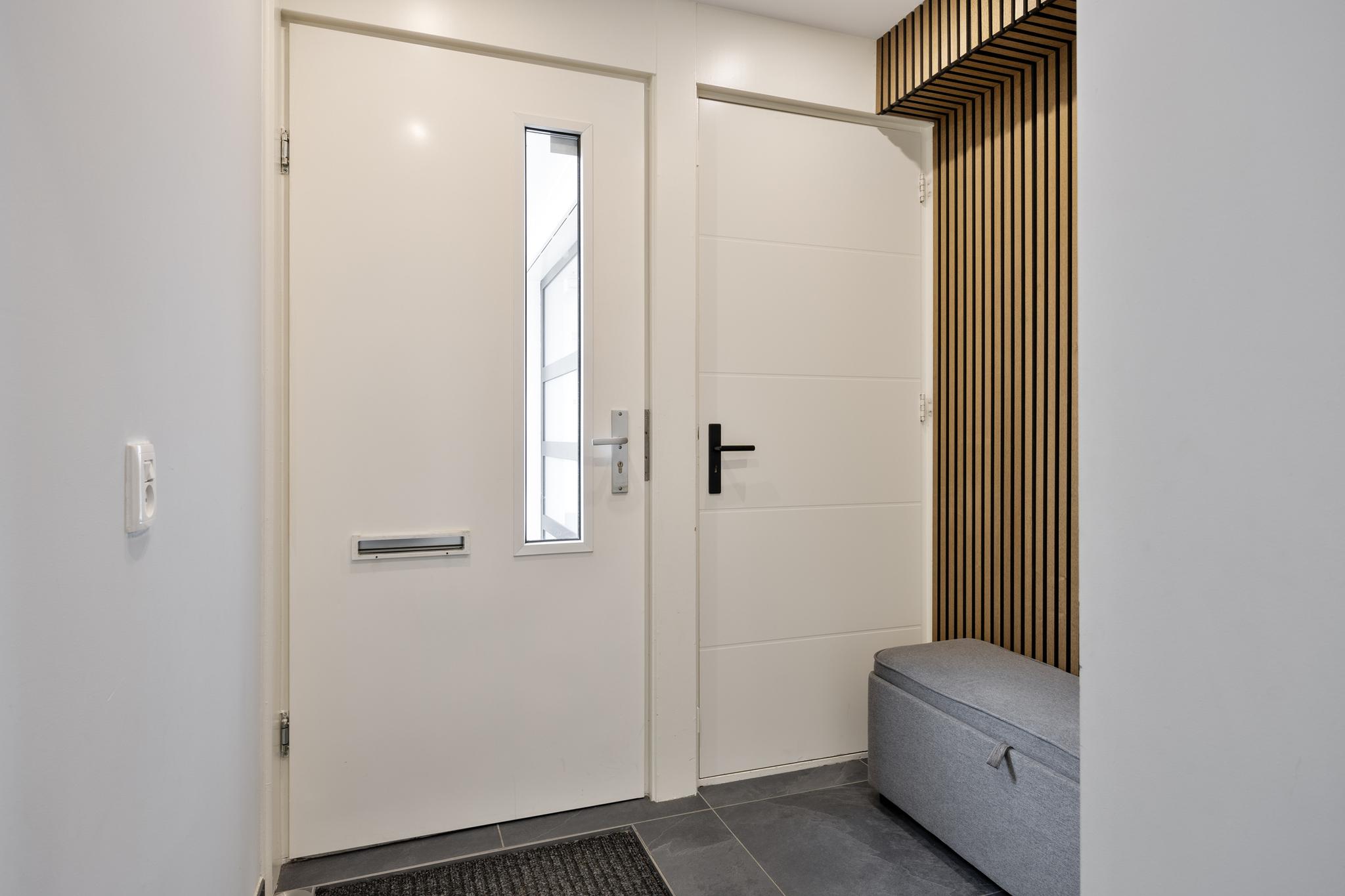 Entree, hal met meterkast en doorgang naar de garage. Vanuit de hal toegang tot de woonkamer en keuken. Deze royale woonkamer ligt aan de aan de voorzijde gesitueerd en de open keuken met eetkamer strekt zich uit over de volle breedte van het huis, waardoor er ruimte is gemaakt voor een heerlijk kookeiland. Vanuit deze moderne keuken is er toegang naar de achtertuin middels een schuifdeur. De achtertuin is deels voorzien van tegelwerk en stroken met beplanting. Achter in de tuin staat een overkapping met glazen schuiframen, welke ideaal is voor een loungeset of een gezellige eet plek.