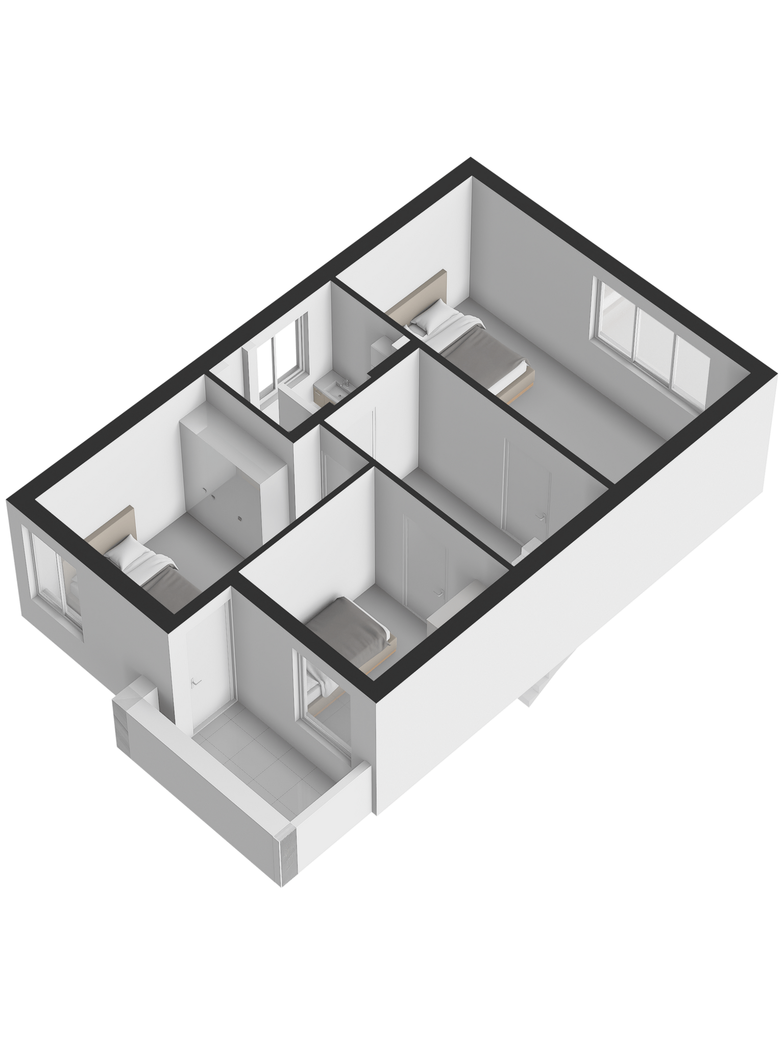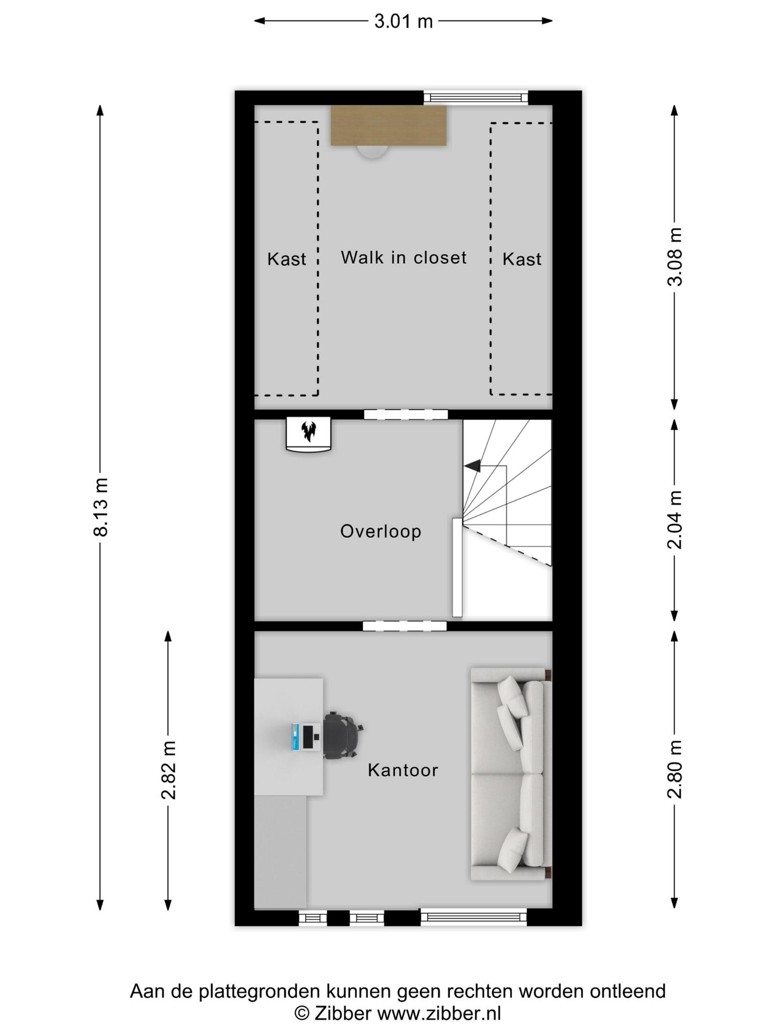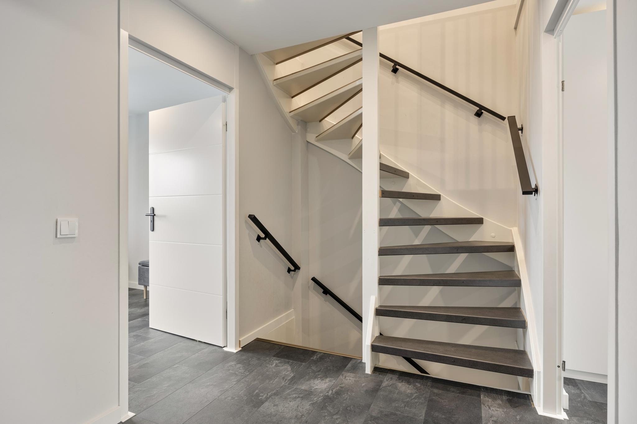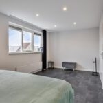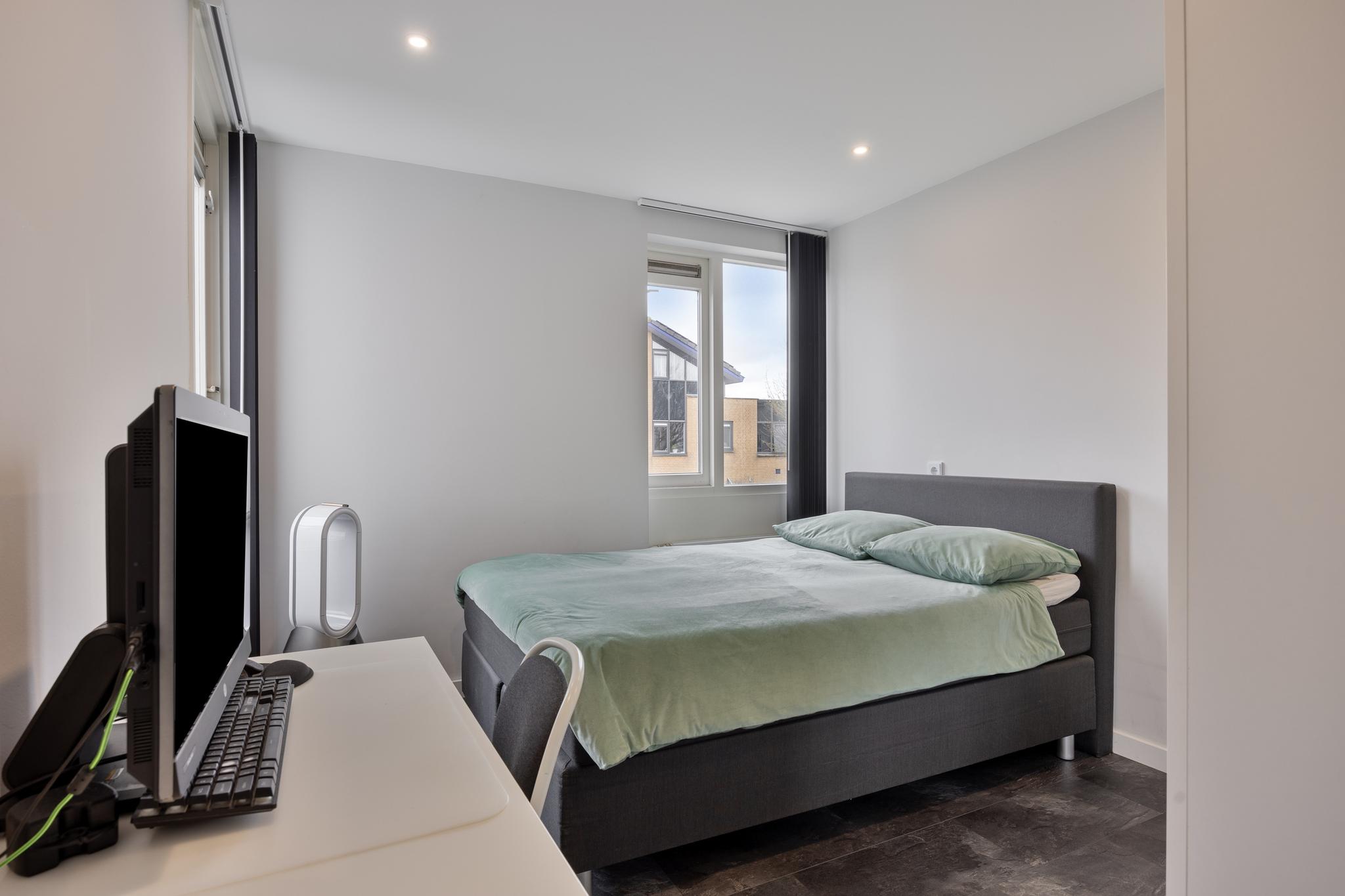 Te bereiken via een vaste trap, Zowel aan voor- als achterzijde zijn kamers gerealiseerd, 1 slaapkamer en waarvan 1 in gebruik als inloopkast. Daartussen bevinden zich de aansluitingen voor de wasmachine en de droger. Ook is hier de cv-ketel geplaatst.