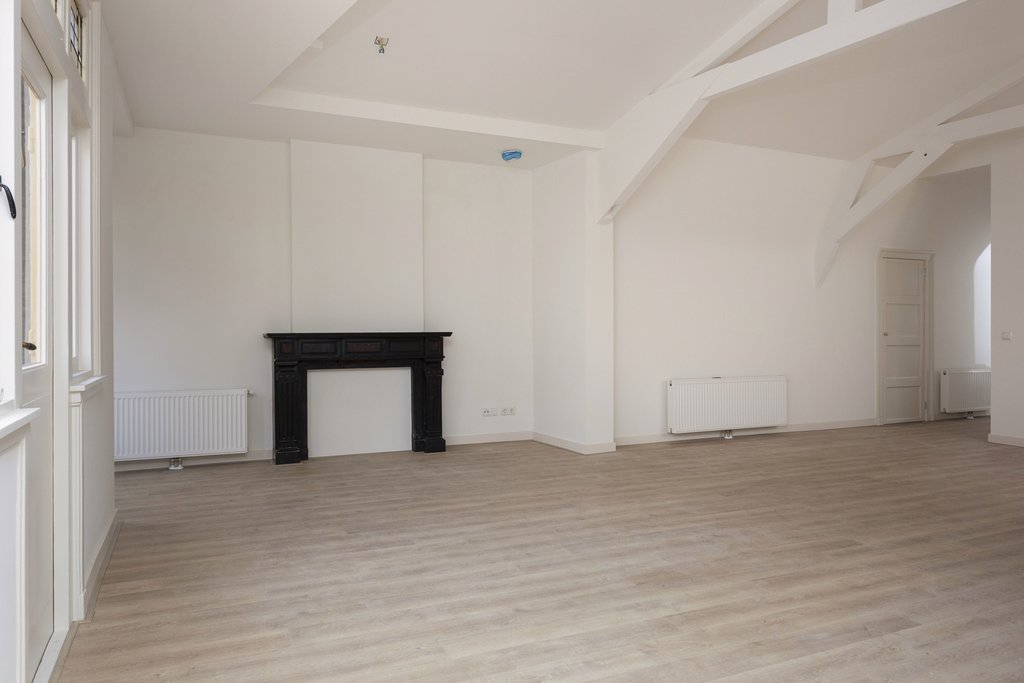 Moderne ruime woonkamer met veel lichtinval, glas-in-lood ramen en balkon aan de voorzijde, een moderne open keuken (met de oude spanten in het zicht) voorzien van diverse apparatuur te weten koelkast, vriezer, oven, combimagnetron, vaatwasser, inductiekookplaat en afzuigkap, toilet met fontein, slaapkamer met aangrenzend de badkamer voorzien van douche en wastafel en toegang tot het balkon aan de achterzijde.