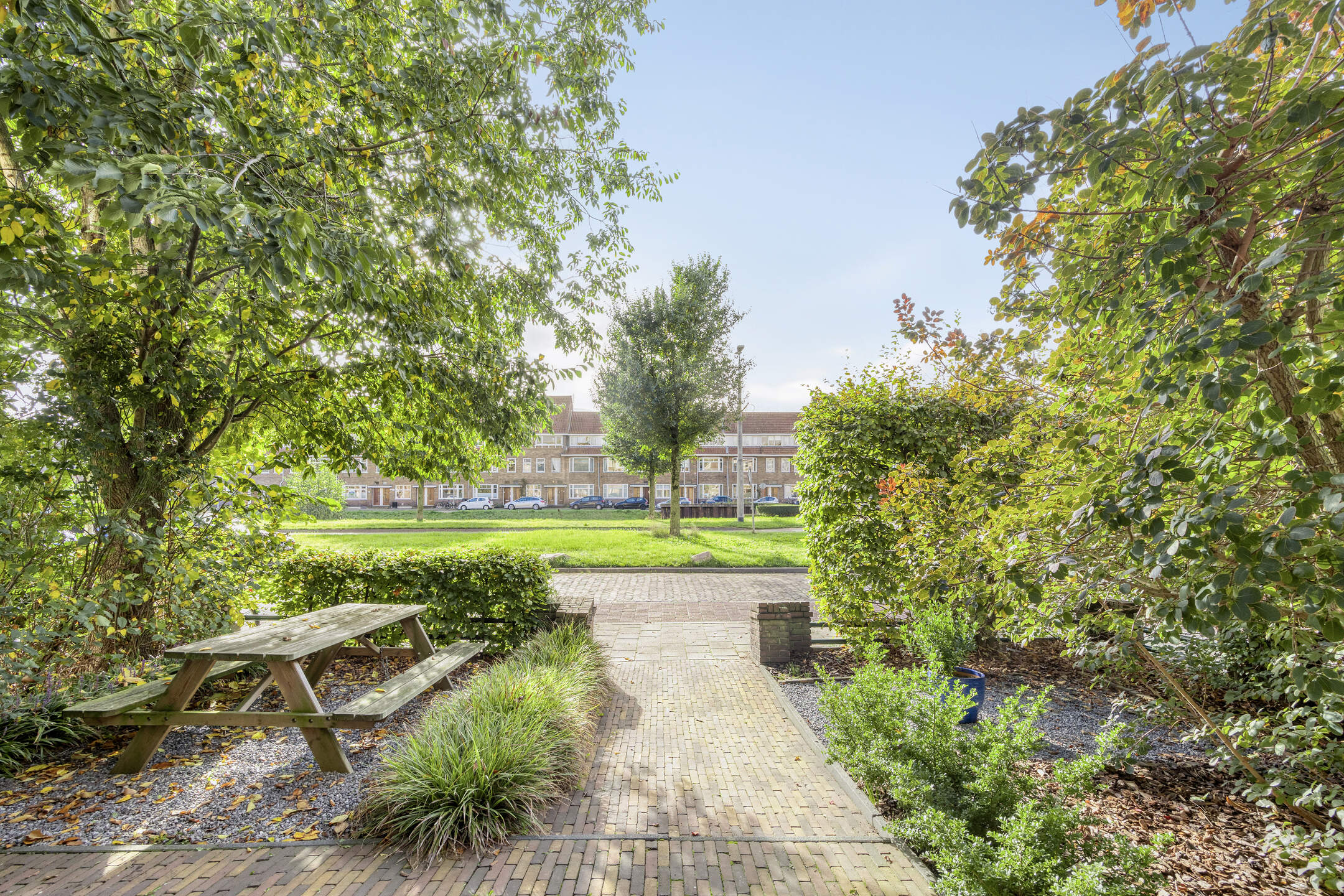 Het pad richting de voordeur deelt u met de bewoners van hoger gelegen appartementen. De voortuin aan beide zijden van het pad is volledig eigendom van het beneden appartement.