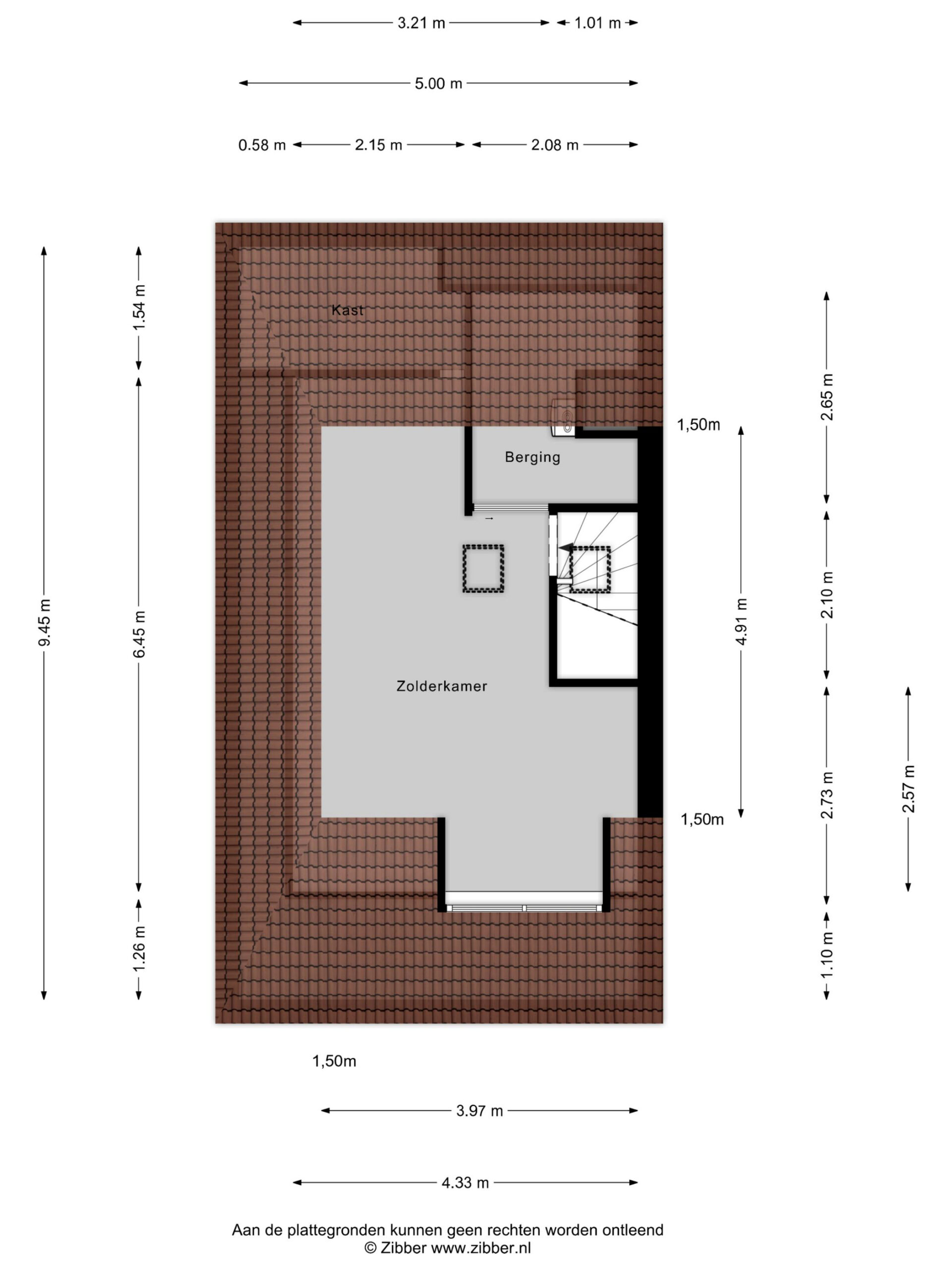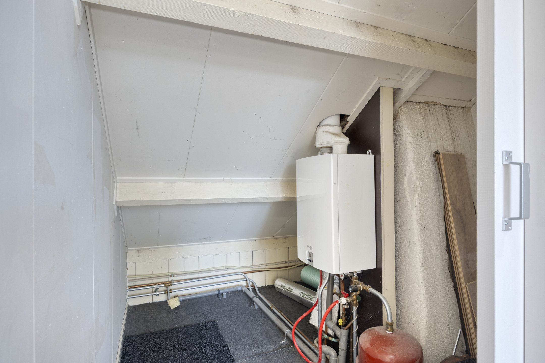 Een verrassend ruime woon-/slaapzolder met recent geplaatst groot dakkapel voorzien van dubbel glas. Hier bevindt zich ook de opstelplaats van de CV-ketel (Remeha Avanta).