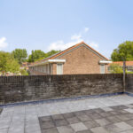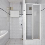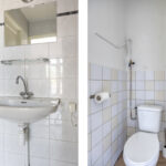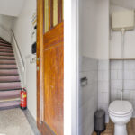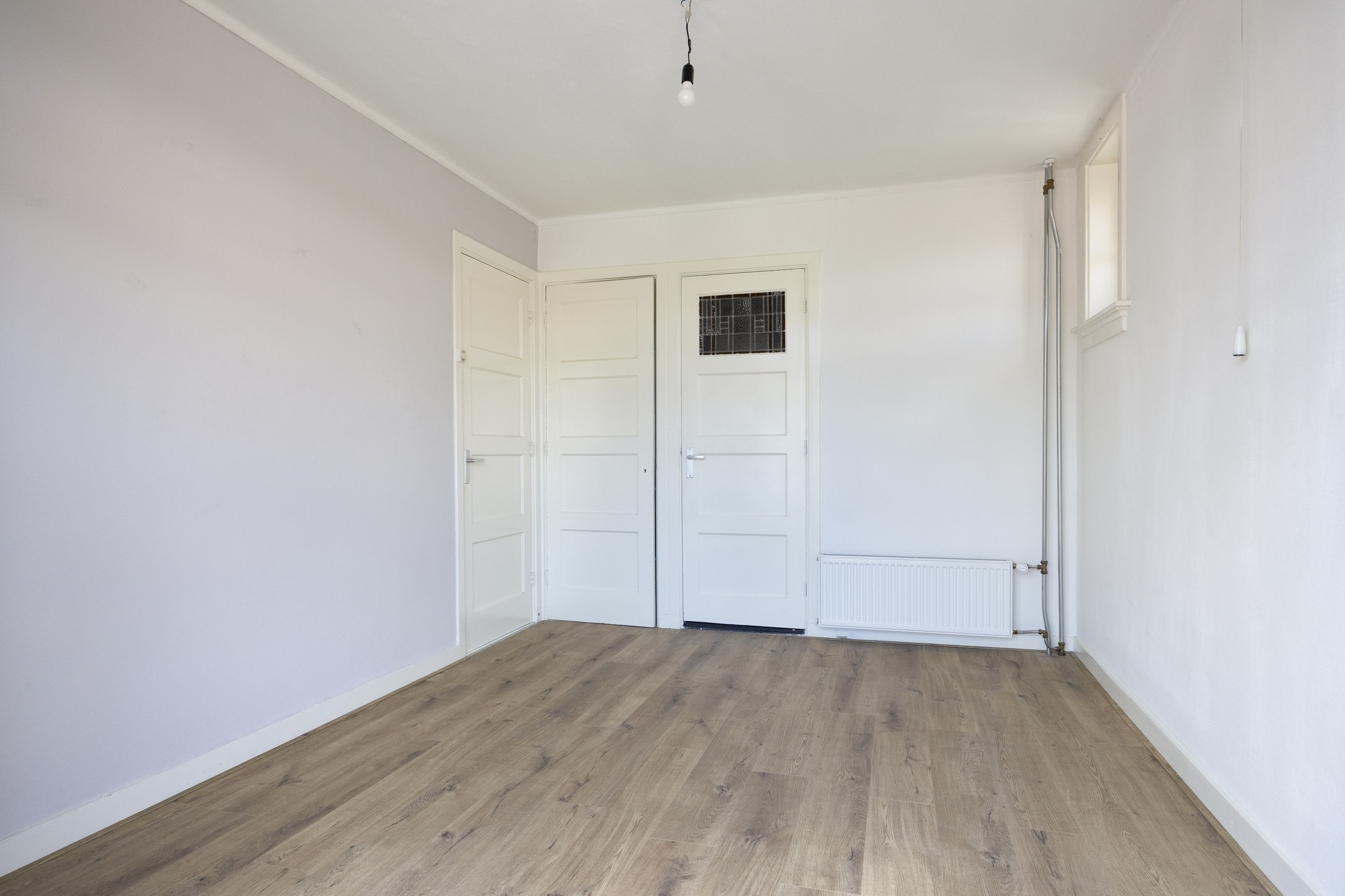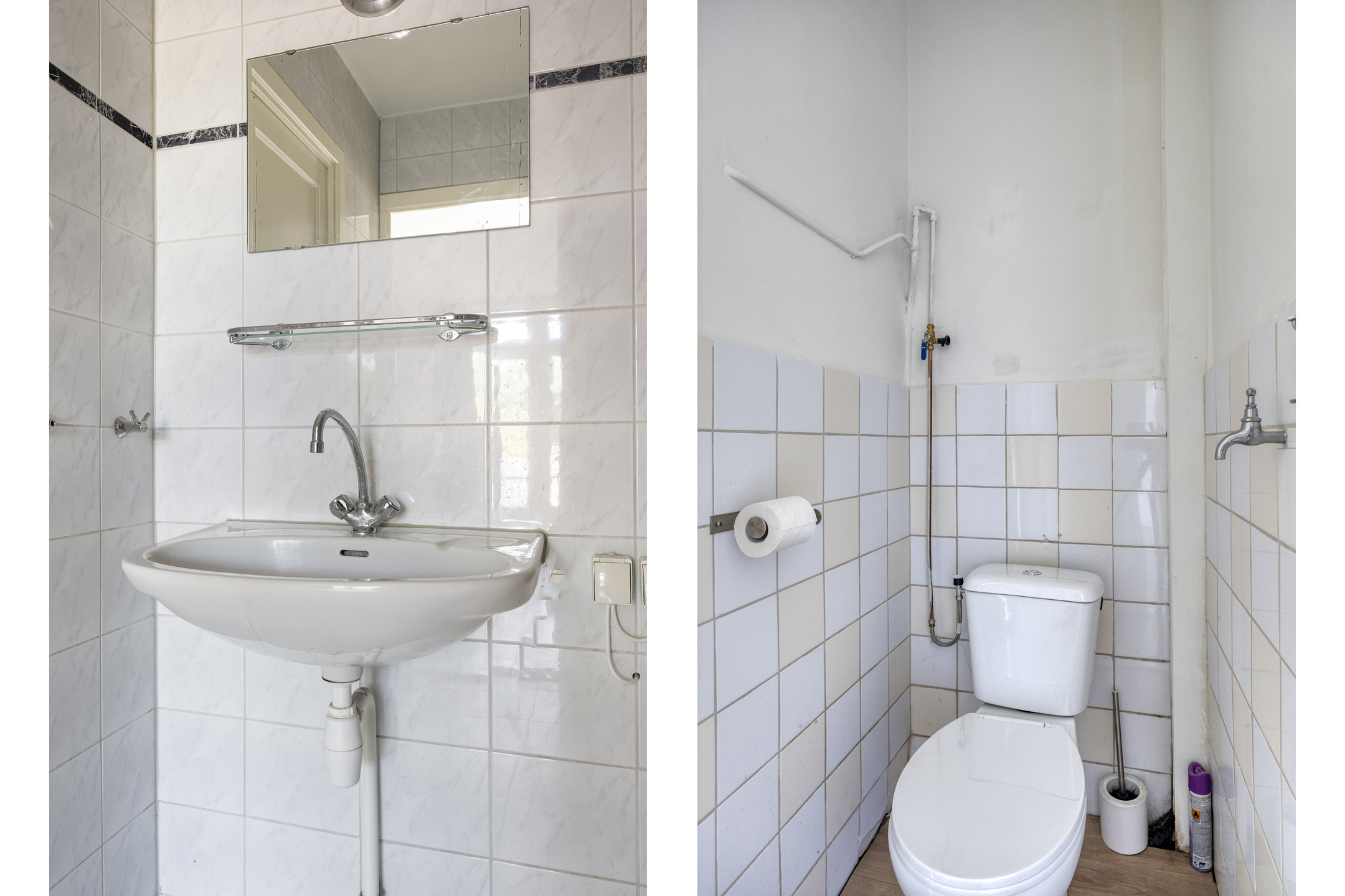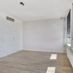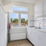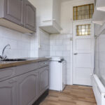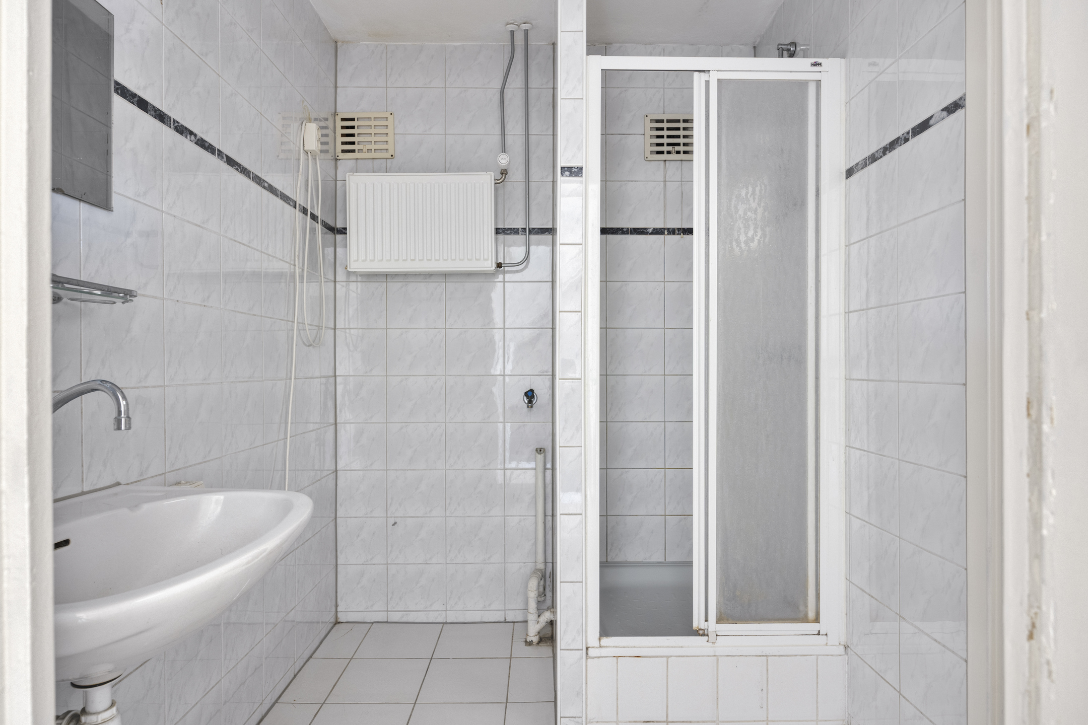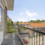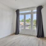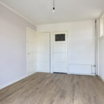 Ruime overloop met tweede toilet. Aan de voorzijde een grote slaapkamer over de volle breedte, voorzien van vaste inbouwkasten. Aan de achterzijde een tweede slaapkamer, eveneens met inbouwkasten en toegang tot een balkon. De badkamer is eenvoudig maar functioneel, met douche, wastafel en wasmachine-aansluiting.