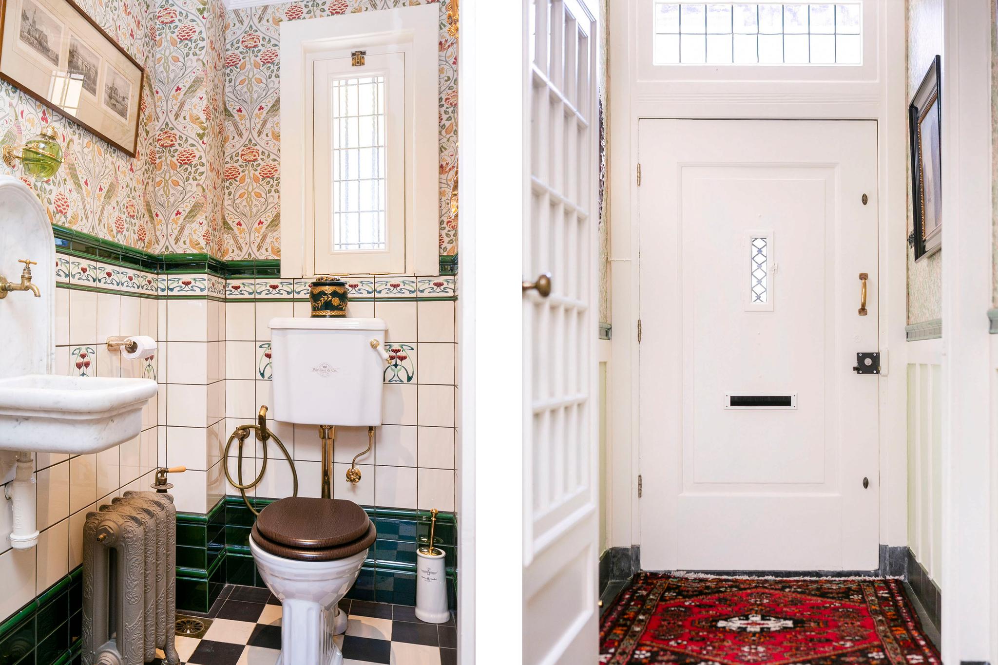 - Toilet begane grond met belle epoque tegelwerk gedeeltelijk handgeschilderd.