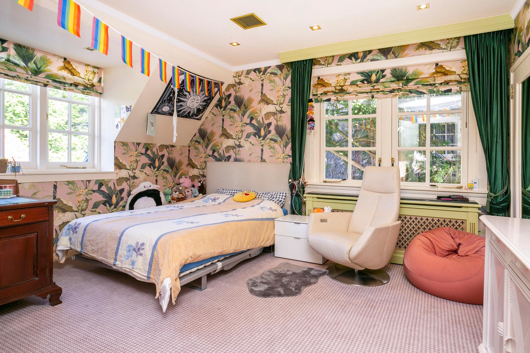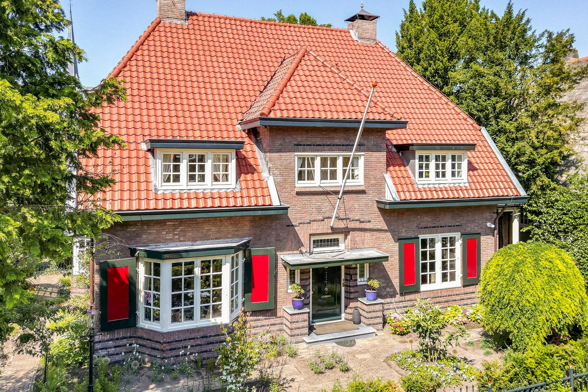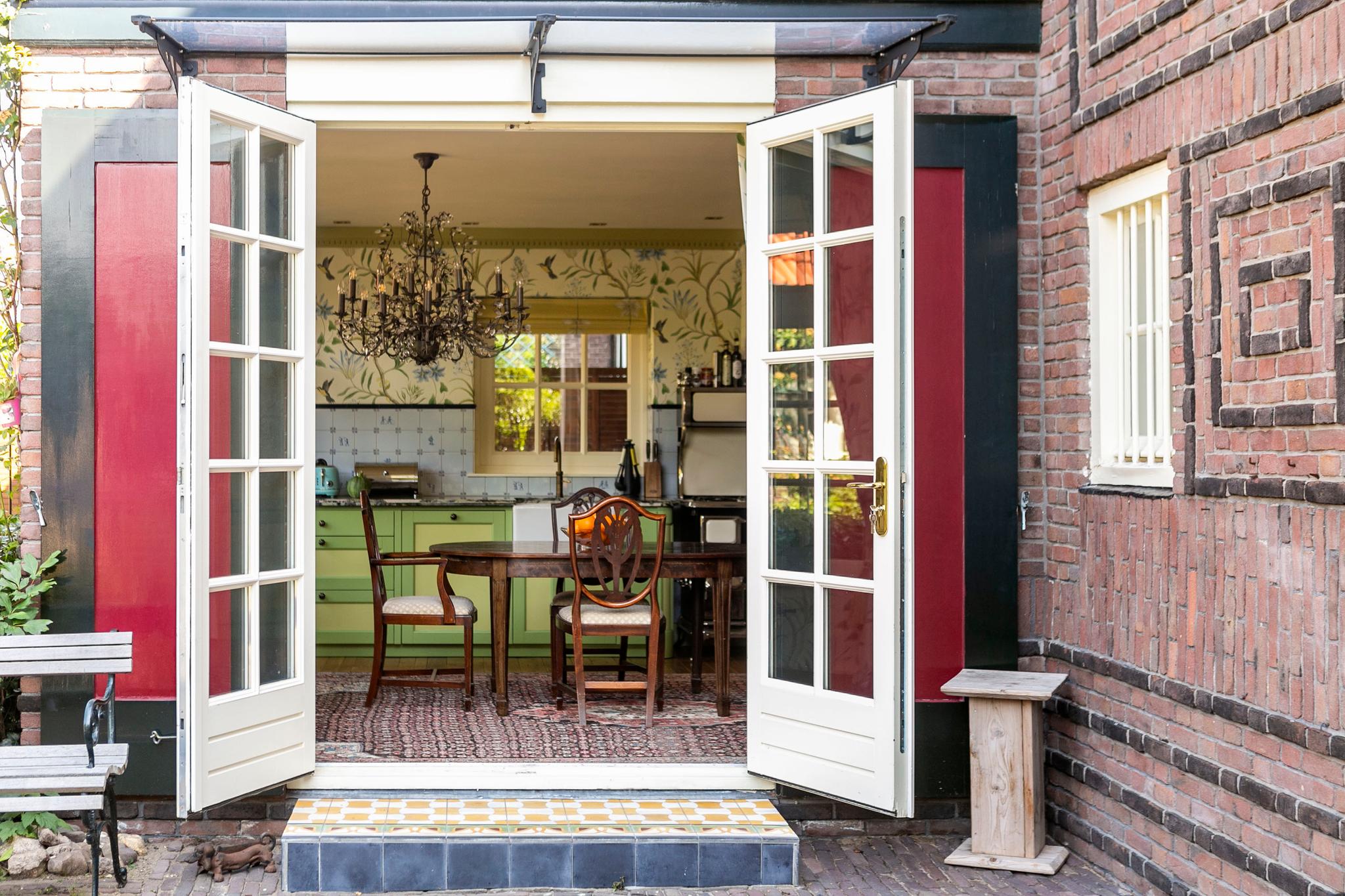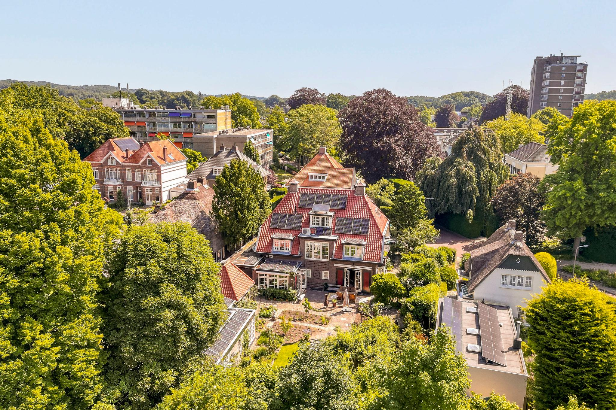 Onder architectuur gebouwd in romantische stijl gerenoveerd en uitstekend onderhouden royale vrijstaande villa uit 1926. Met in 2005 gebouwd vrijstaand fraai in dezelfde sfeer uitgevoerd bouwwerk waarvan in ondergebracht een verwarmd zwembad, toilet met fontein, sauna, openslaande deuren naar de schitterend aangelegde achtertuin op het zuidwesten met diverse terrassen, grenzend aan voormalige garage, waarin nu garderobe, elektrische zonneboiler, tuingereedschap, fietsenberging met zolder aanwezig zijn. Dit vrijstaand bouwwerk kan gemakkelijk omgevormd worden tot praktijk aan huis, kantoor, atelier of semi zelfstandige woon- slaapunit voor familielid van 75 m2 (binnenmaat) exclusief alle bergingsruimten van ongeveer 12,5m2 (binnenmaat) plus vliering van 18m2 (binnenmaat). Er zijn 2 buitenkranen, 2 buitenstopcontacten en een elektrische terrasverwarming aanwezig. Het platte dak deel is voorzien van zonnecollectoren. De twee zonneschermen zijn elektrisch bedienbaar.