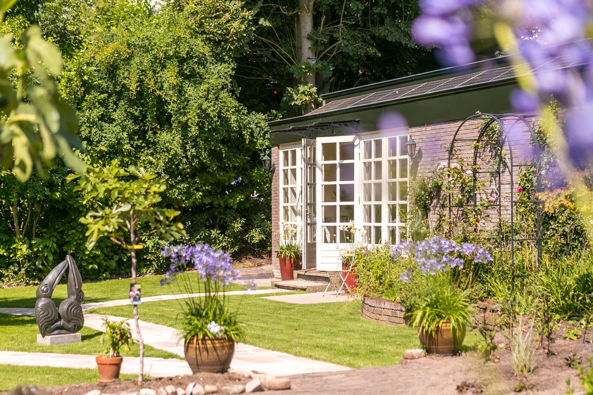 - Bijzonder mooie Engelse bloementuin met beregeningsinstallatie, terras en verwarming