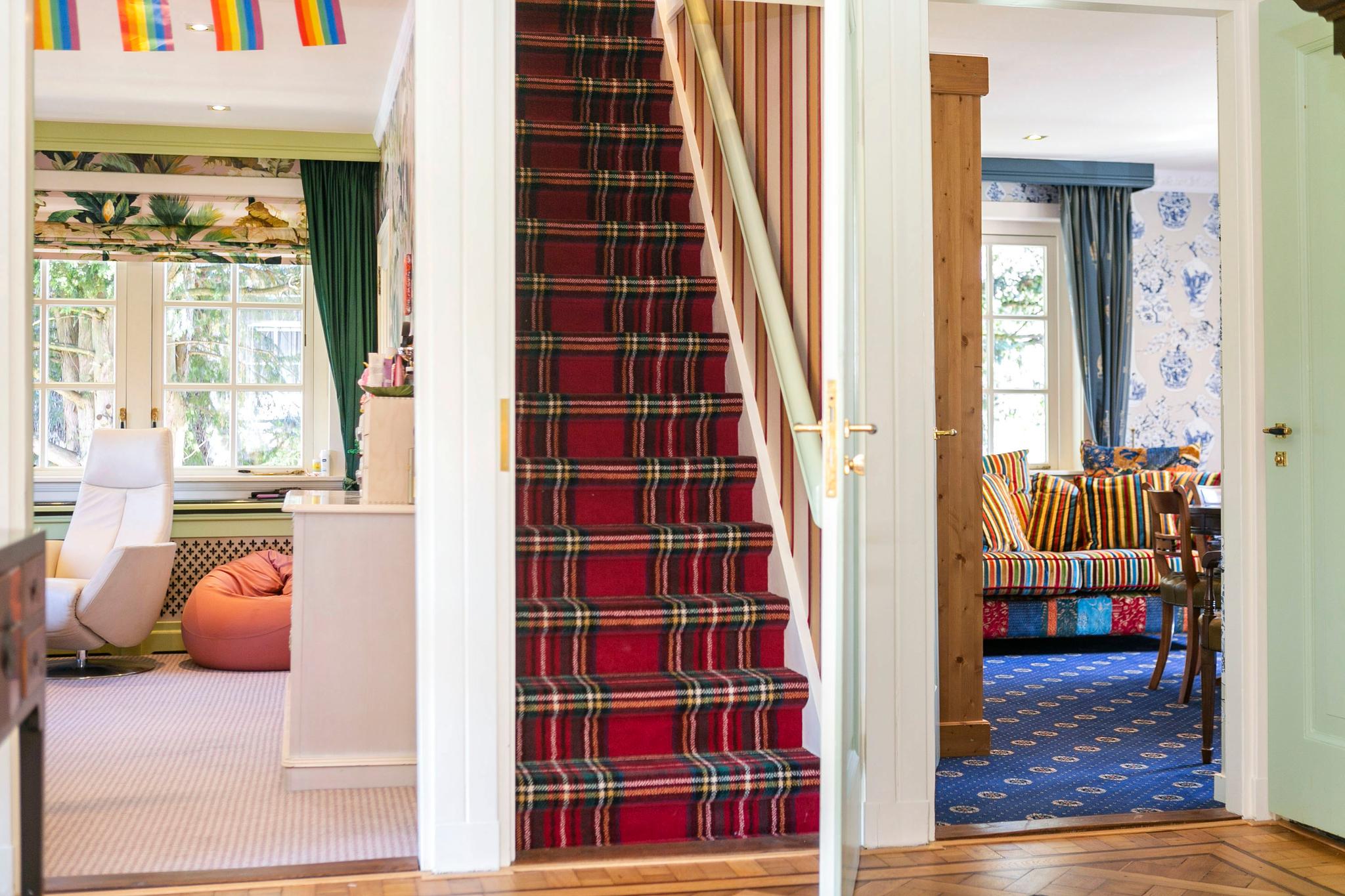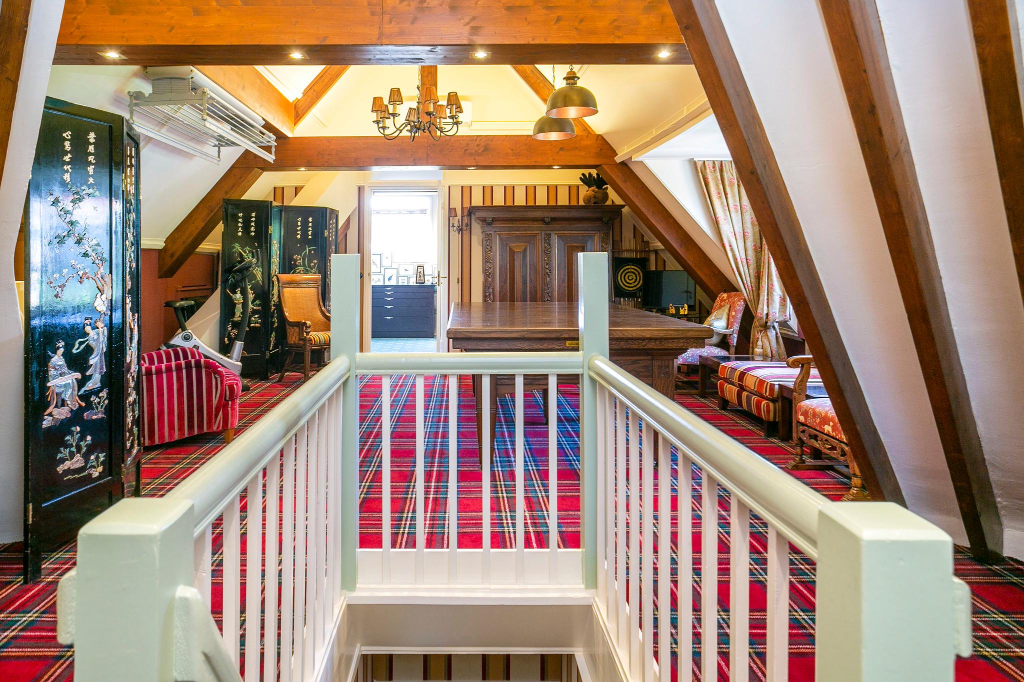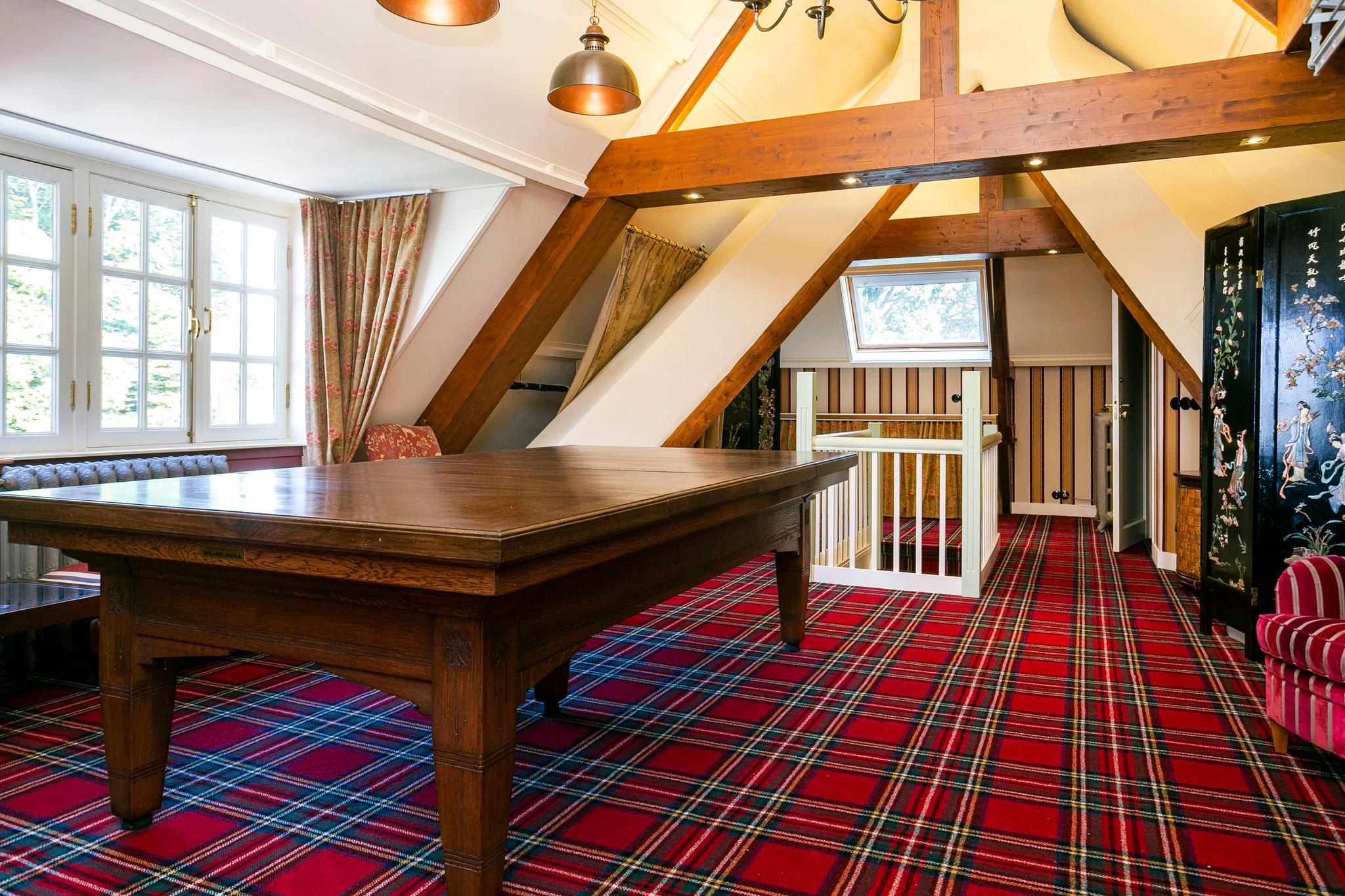 - 1e en 2e verdiepingsvloeren met wollen tapijten van Royal Ulster, o.a. Royal stuart tartan.