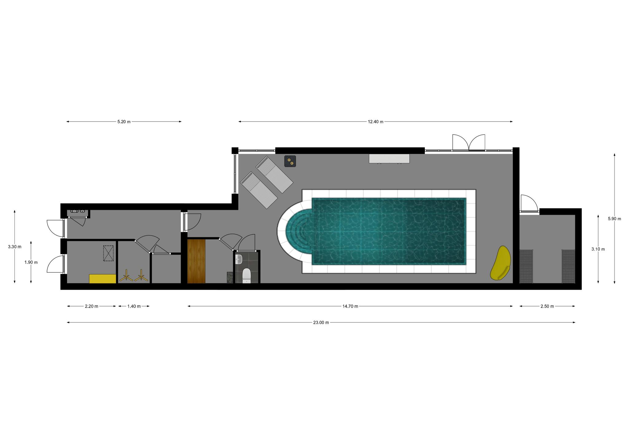 - Inpandig zwembad met nieuwste ultra violet filtertechniek, jetstream en sauna