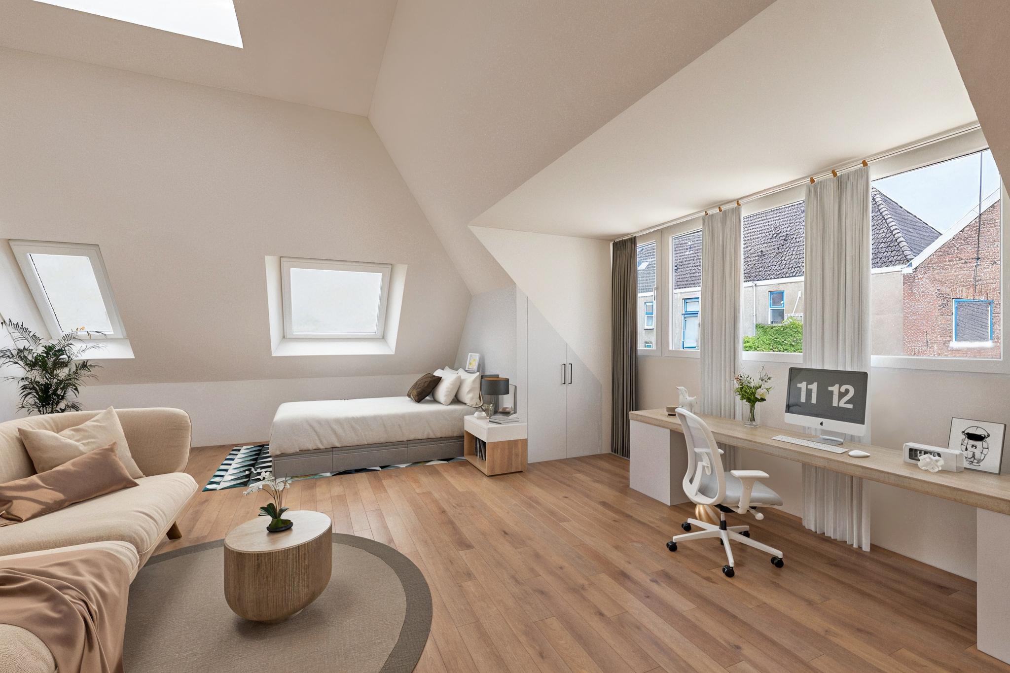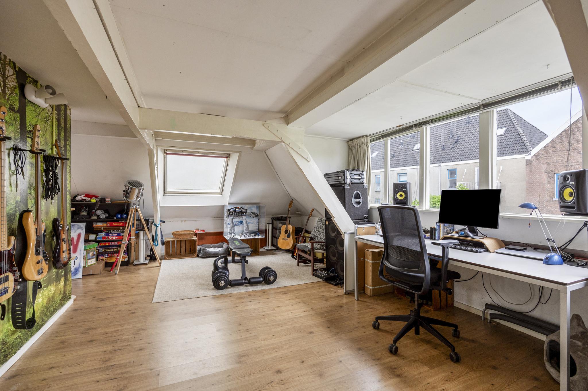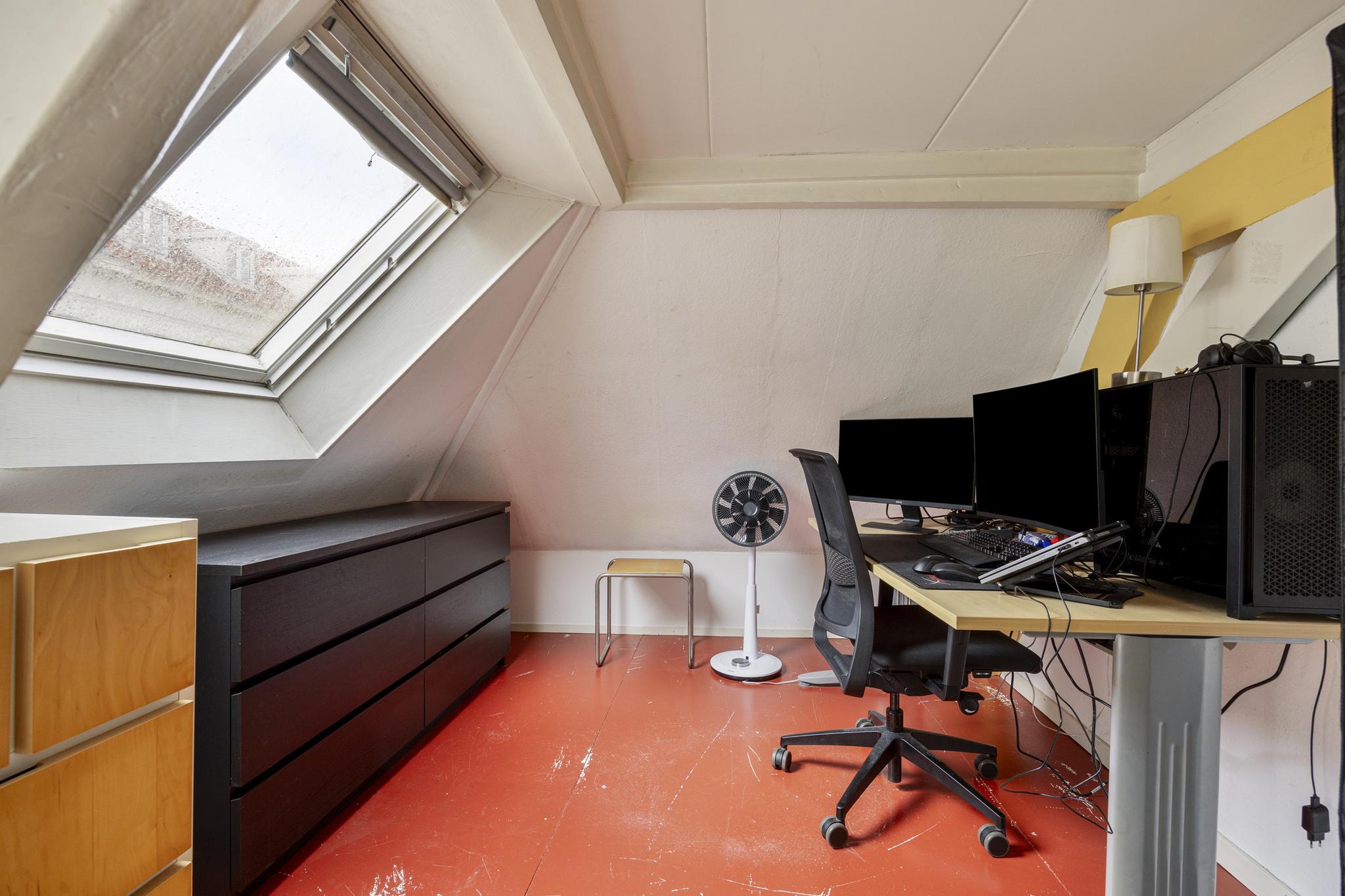 Tweede verdieping; Overloop. Drie slaapkamers waarvan twee met een in 2023 vernieuwde dakkapel. Eén van de kamers is voorzien van hybride-warmtepomp en cv opstelling en biedt mogelijkheid tot het realiseren van een tweede badkamer. Diverse bergruimtes.