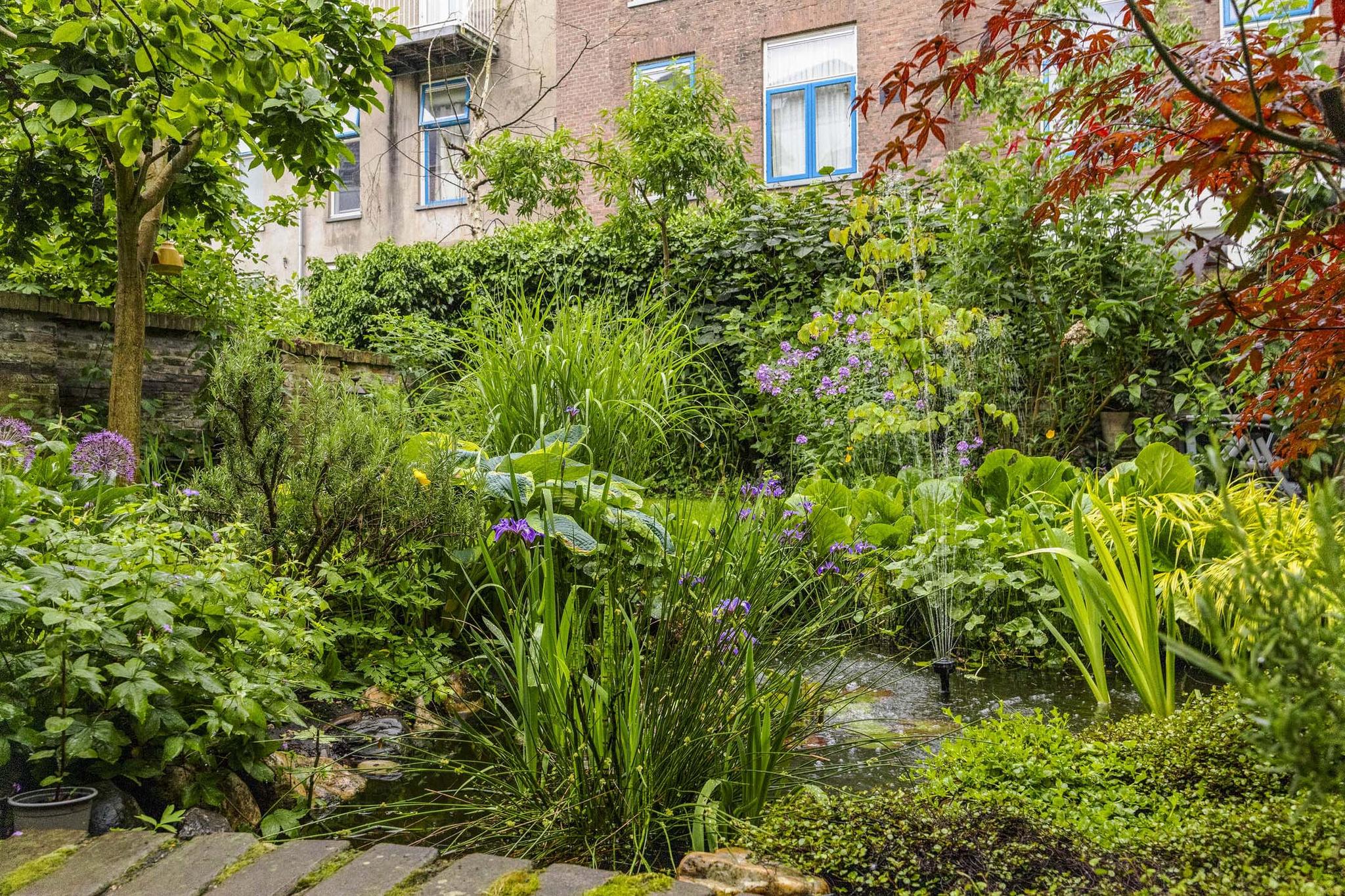 * Vrije, zonnige (west) en royale fraai aangelegde besloten stadstuin (10x10 meter) met zij uitgang naar de straat;