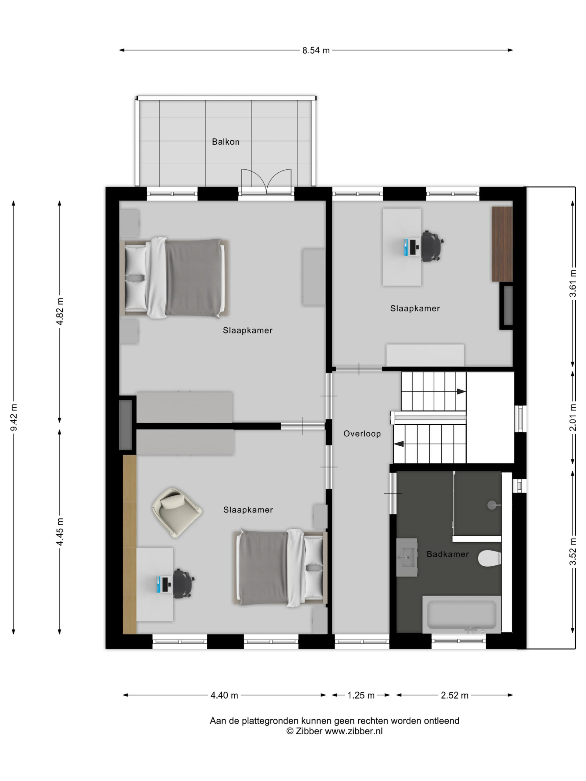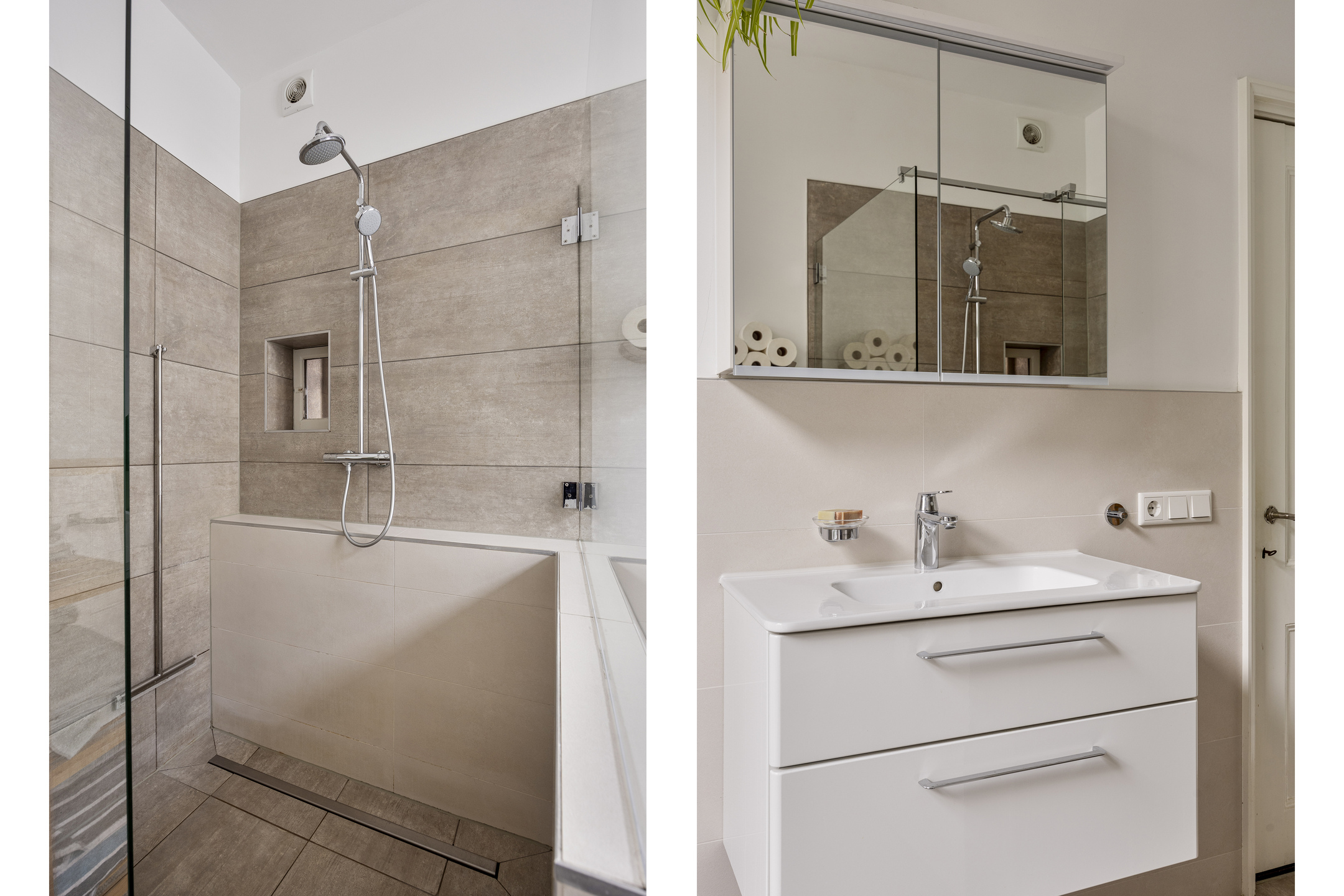 Eerste verdieping; Overloop en toegang tot de drie ruime slaapkamers en badkamer. Één van de slaapkamers heeft toegang tot het royale balkon dat deels is voorzien van een sedumdak en de andere kamers met Frans balkon. De royale luxueuze badkamer is voorzien van inloopdouche, ligbad, toilet, designwandradiator en wastafel met meubel.