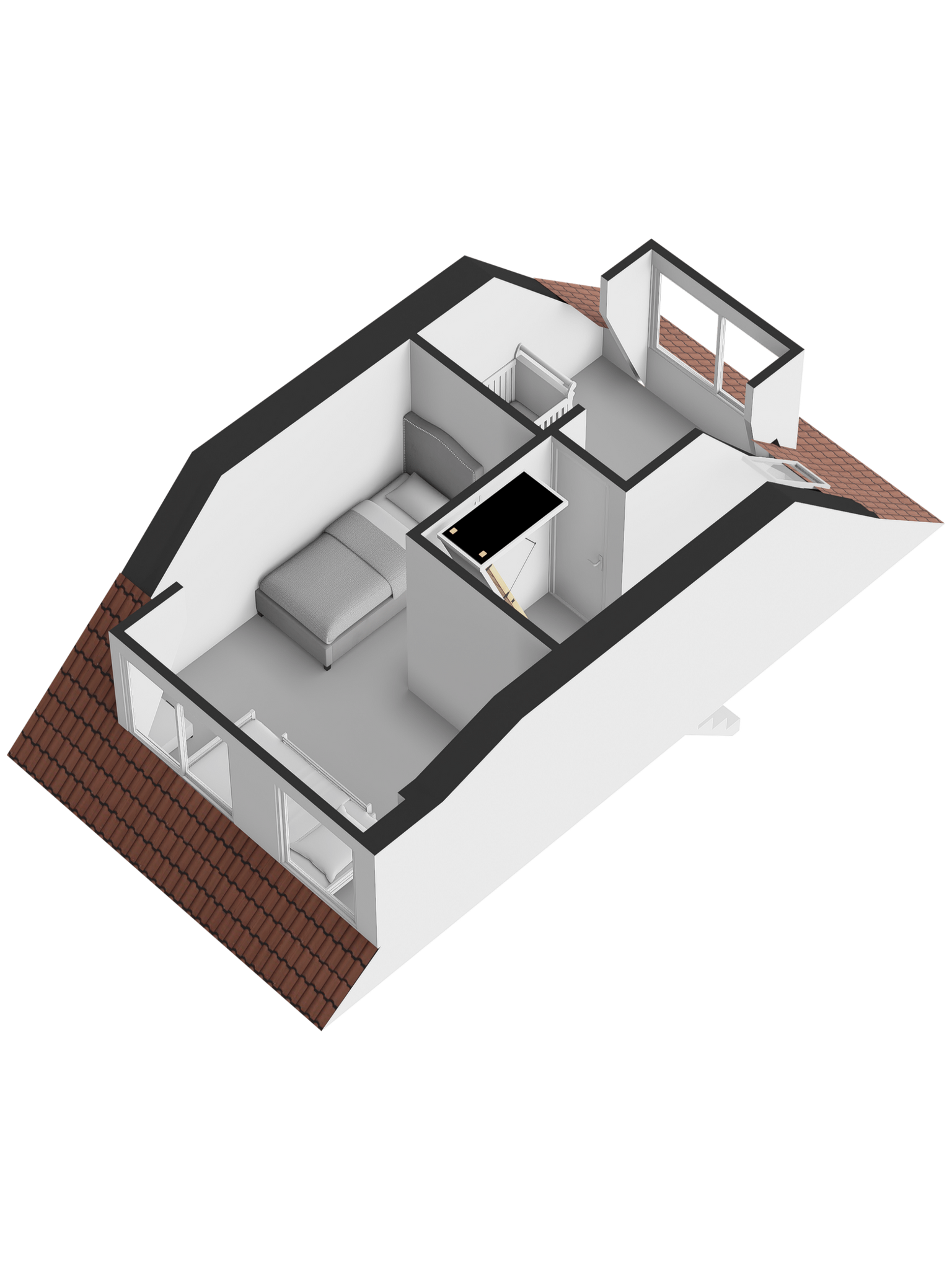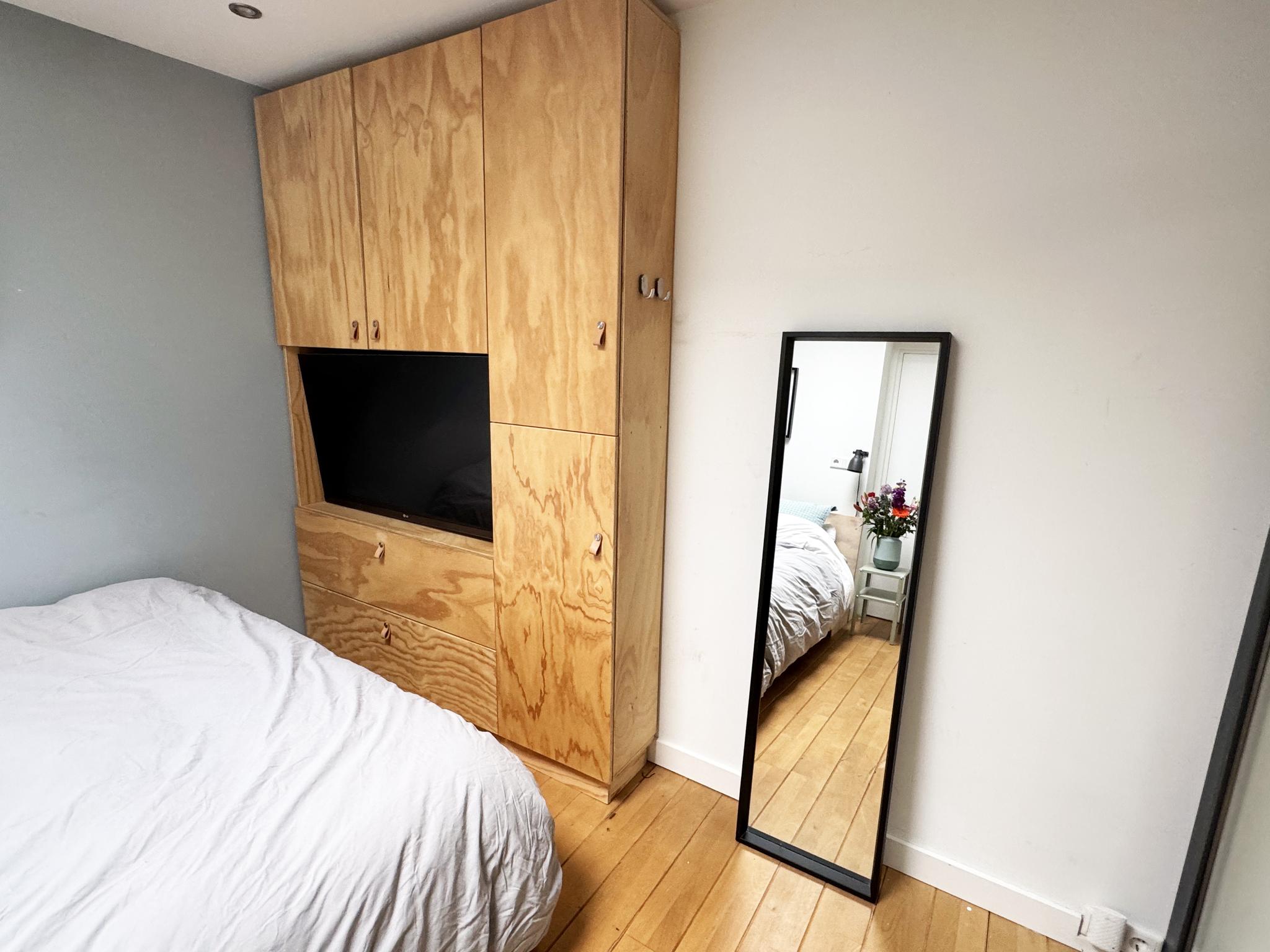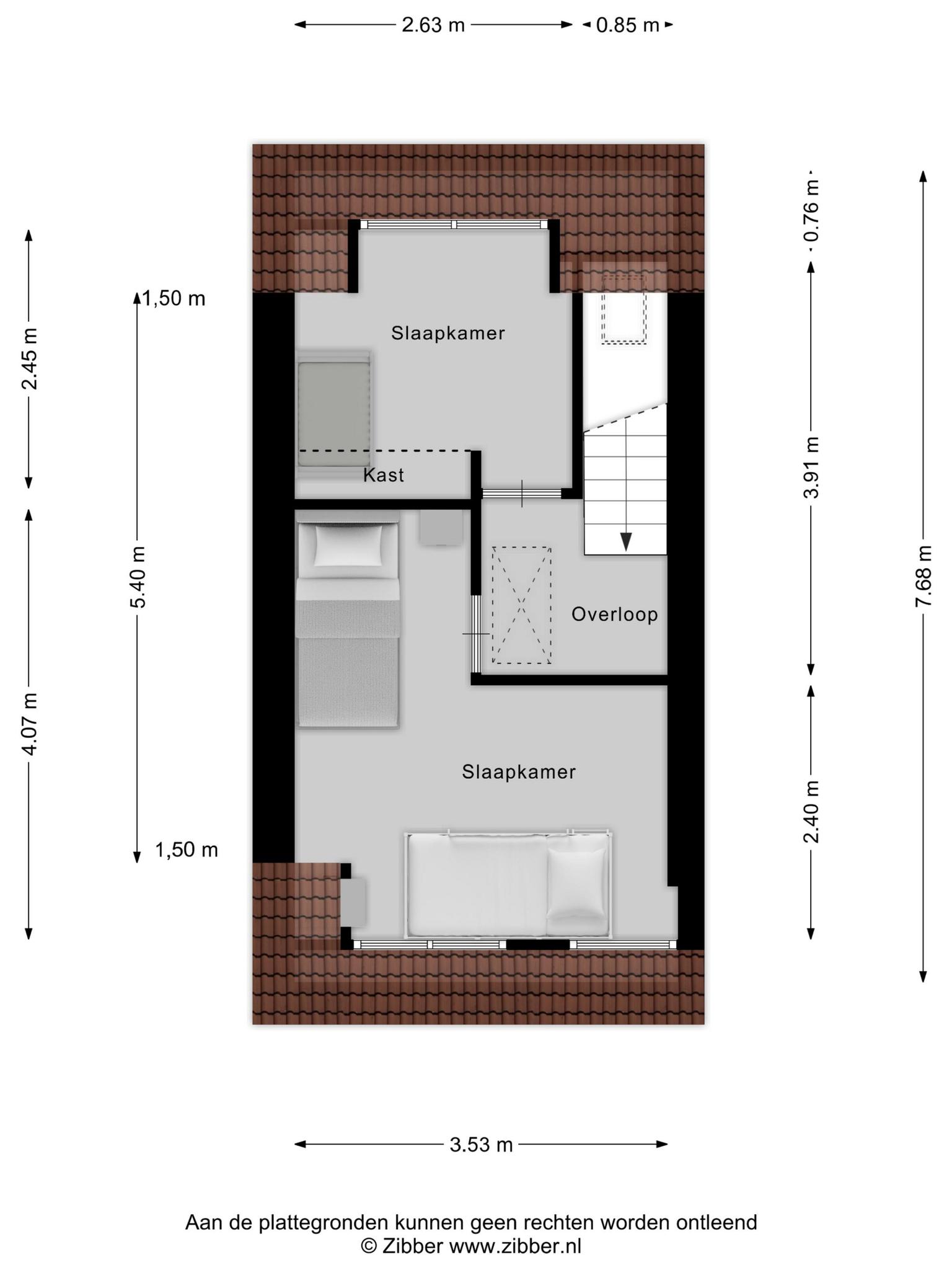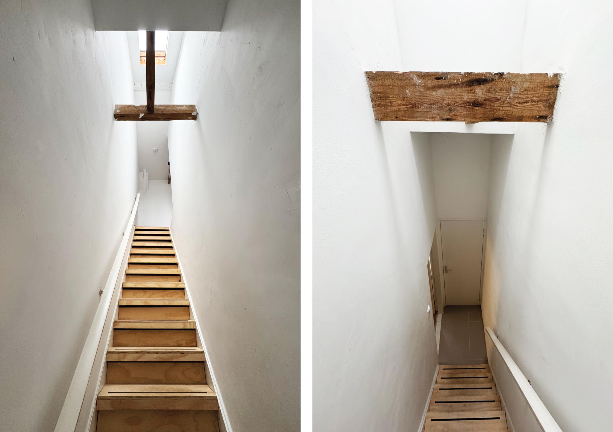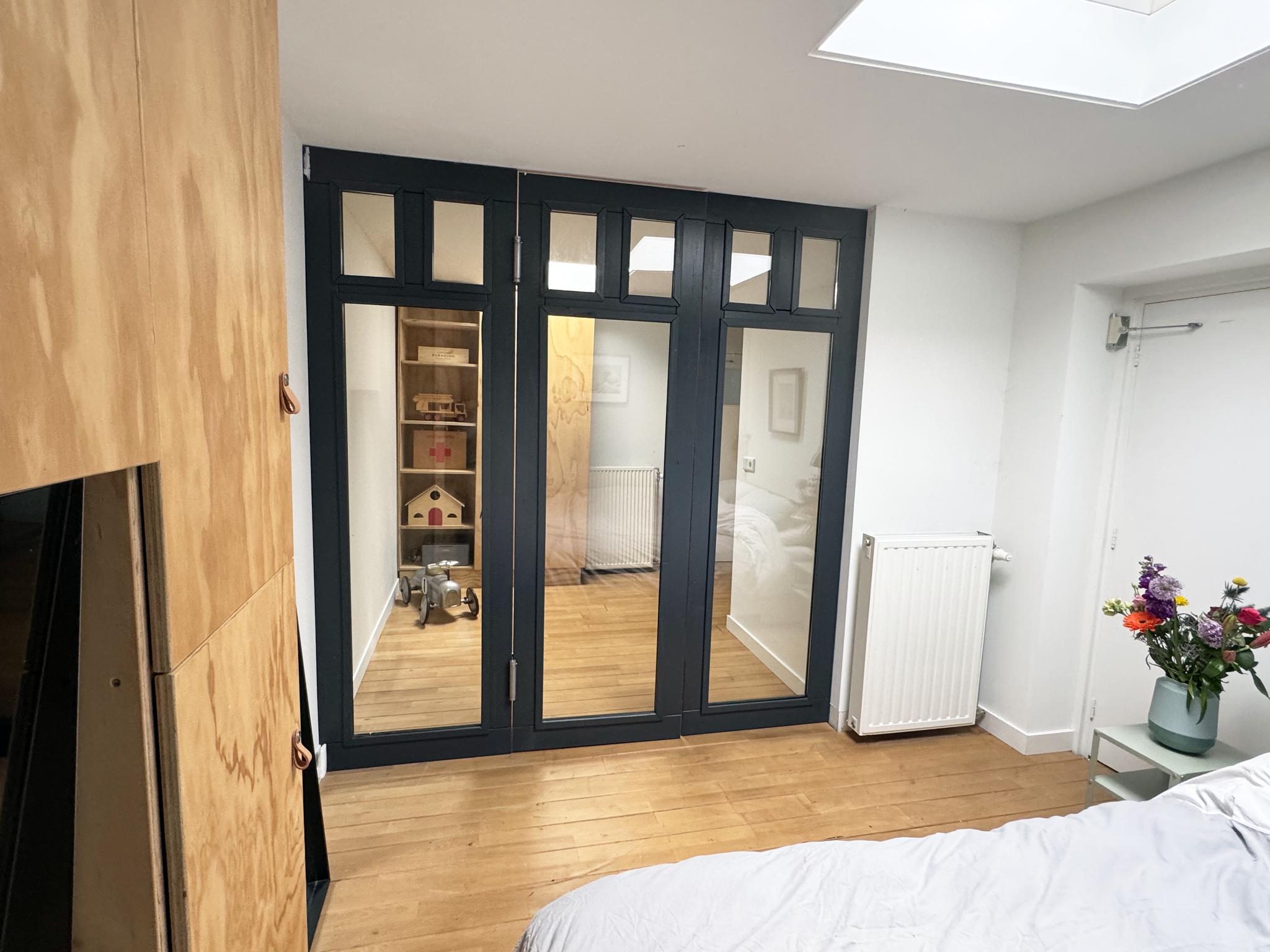 Op de eerste verdieping bevindt zich een ruime, zonnige 2 slaapkamers uitgerust met verschillende opbergmogelijkheden en twee dakkapellen, wat de ruimte bijzonder licht maakt. De zolder is een handige bergzolder voor extra opslag.