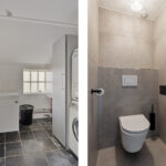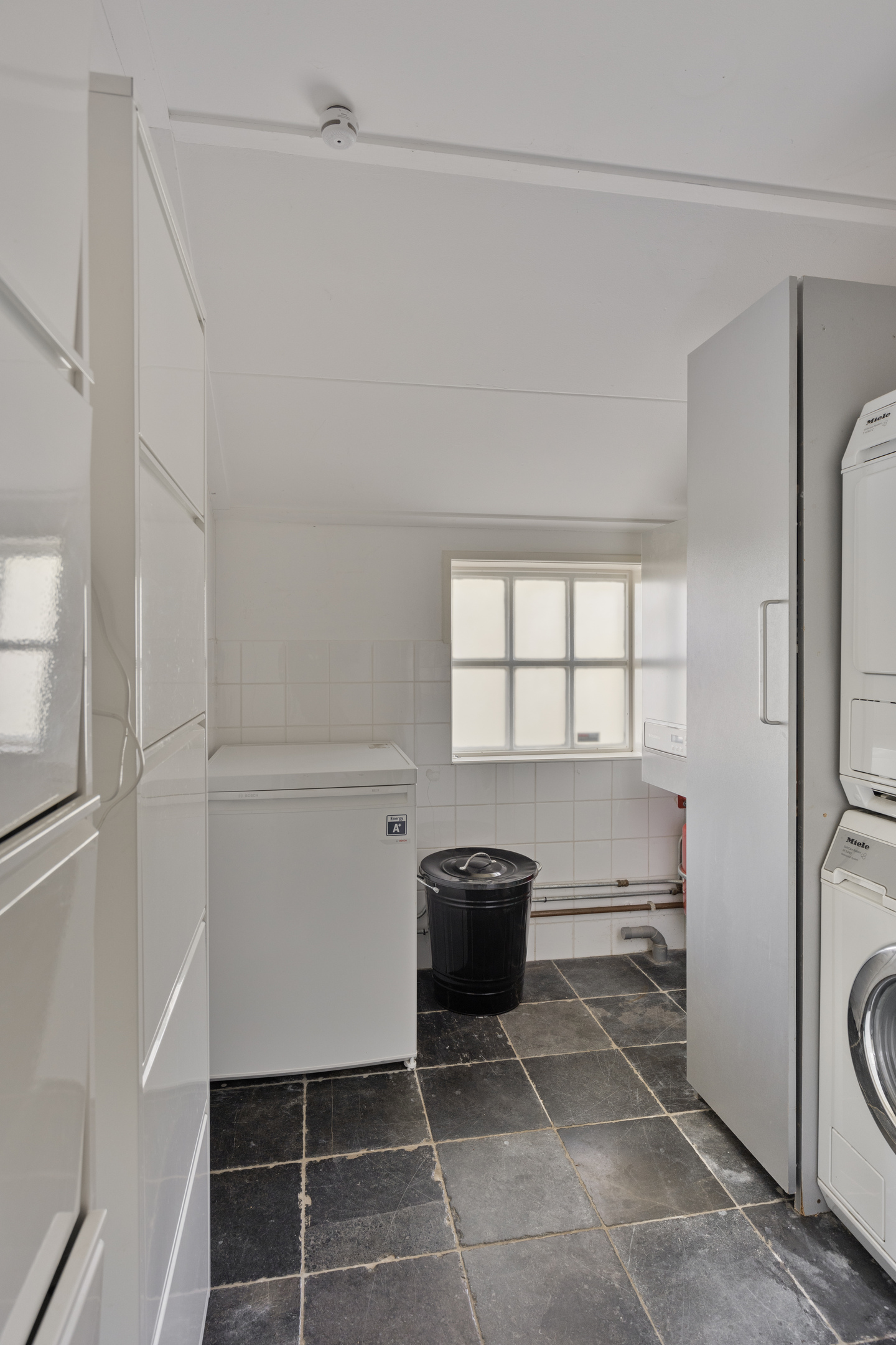 Begane grond: de entree begint in een ruime hal met natuurstenen vloer. Een vernieuwde meterkast, bijkeuken met aansluitingen voor diepvries, wasmachine en -droger. Vernieuwd toilet (2024) met fontein afgewerkt met hoogwaardige materialen.