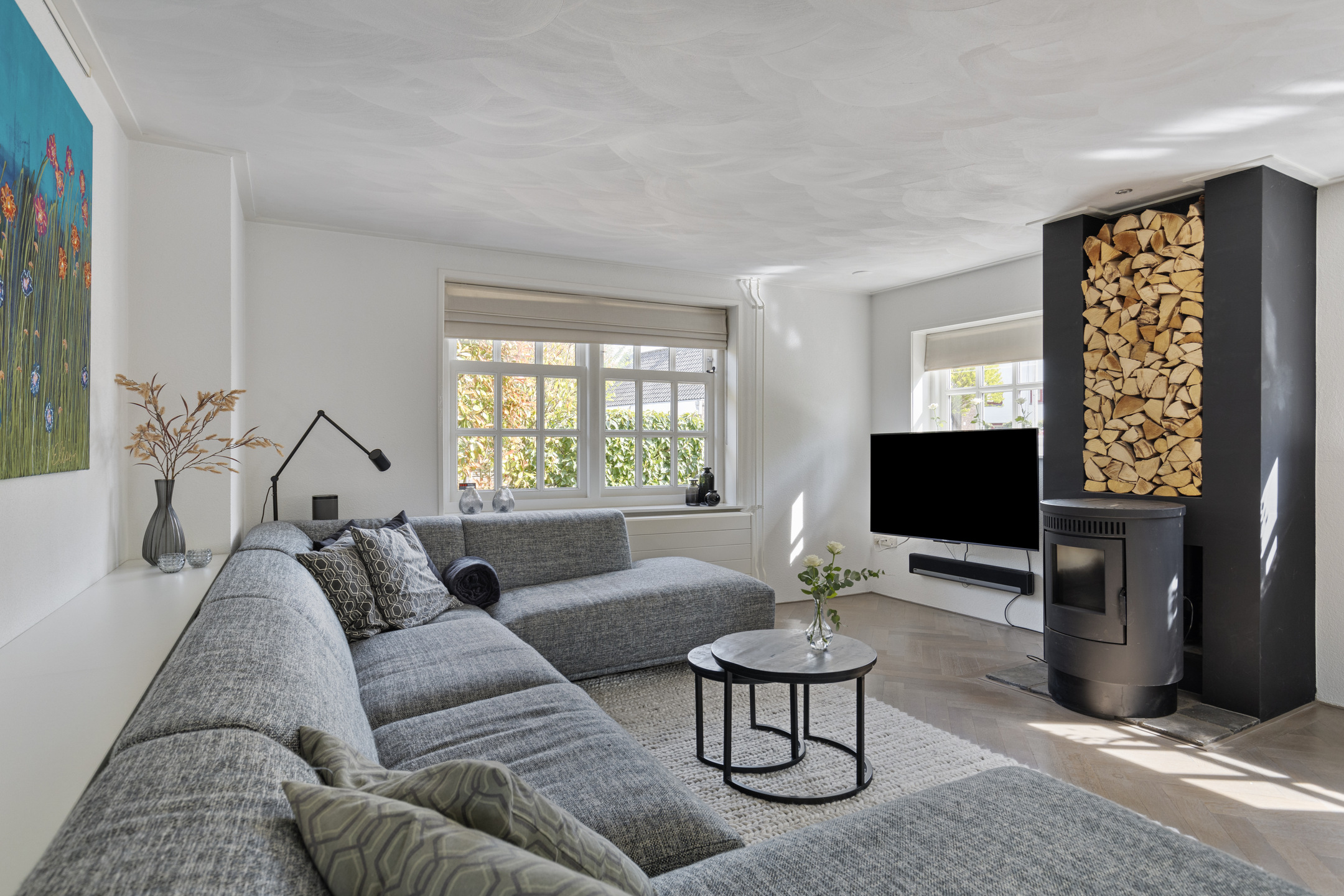 • Splitlevel woonkamer met zitkuil, houtkachel, pelletkachel en massief eiken vloer