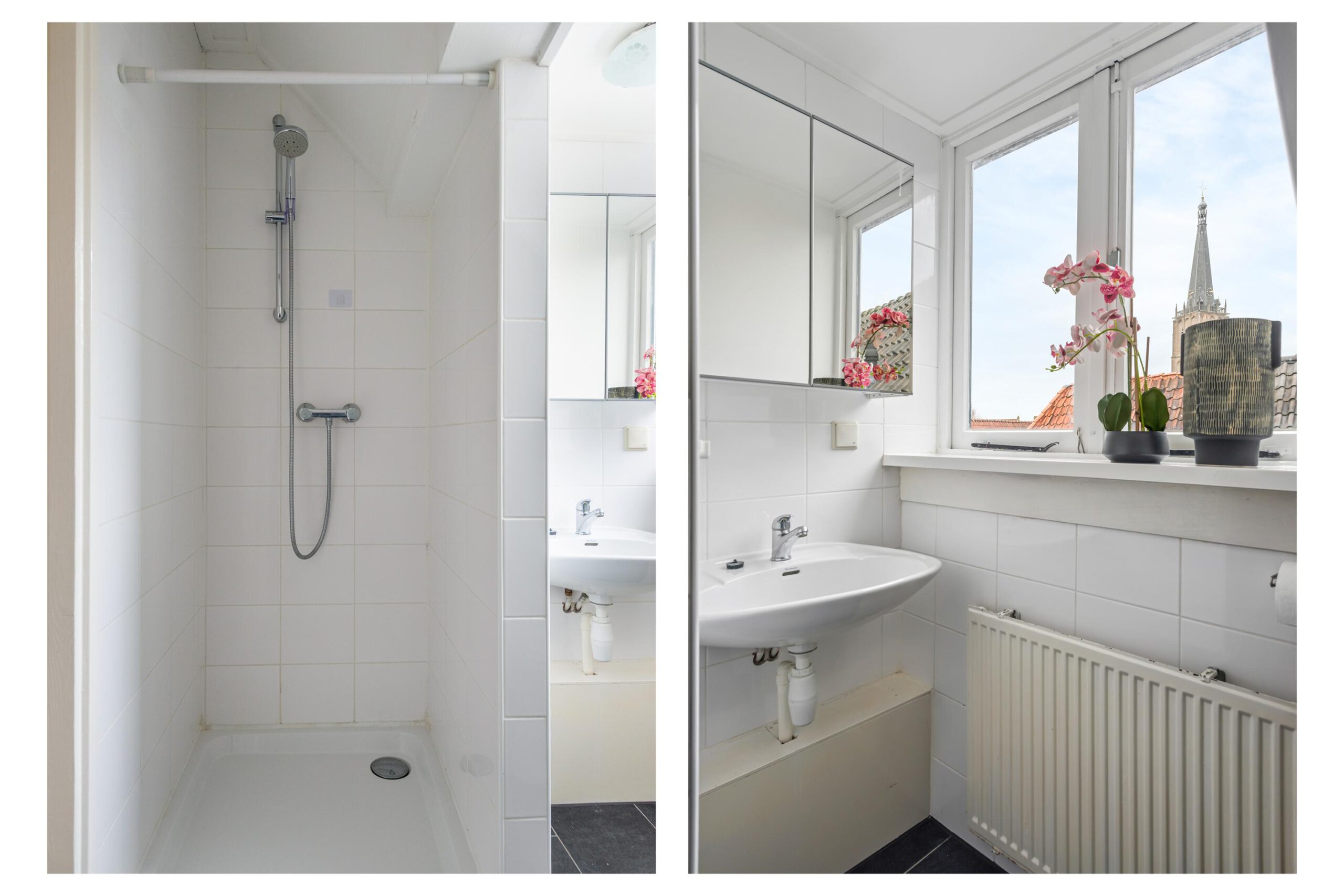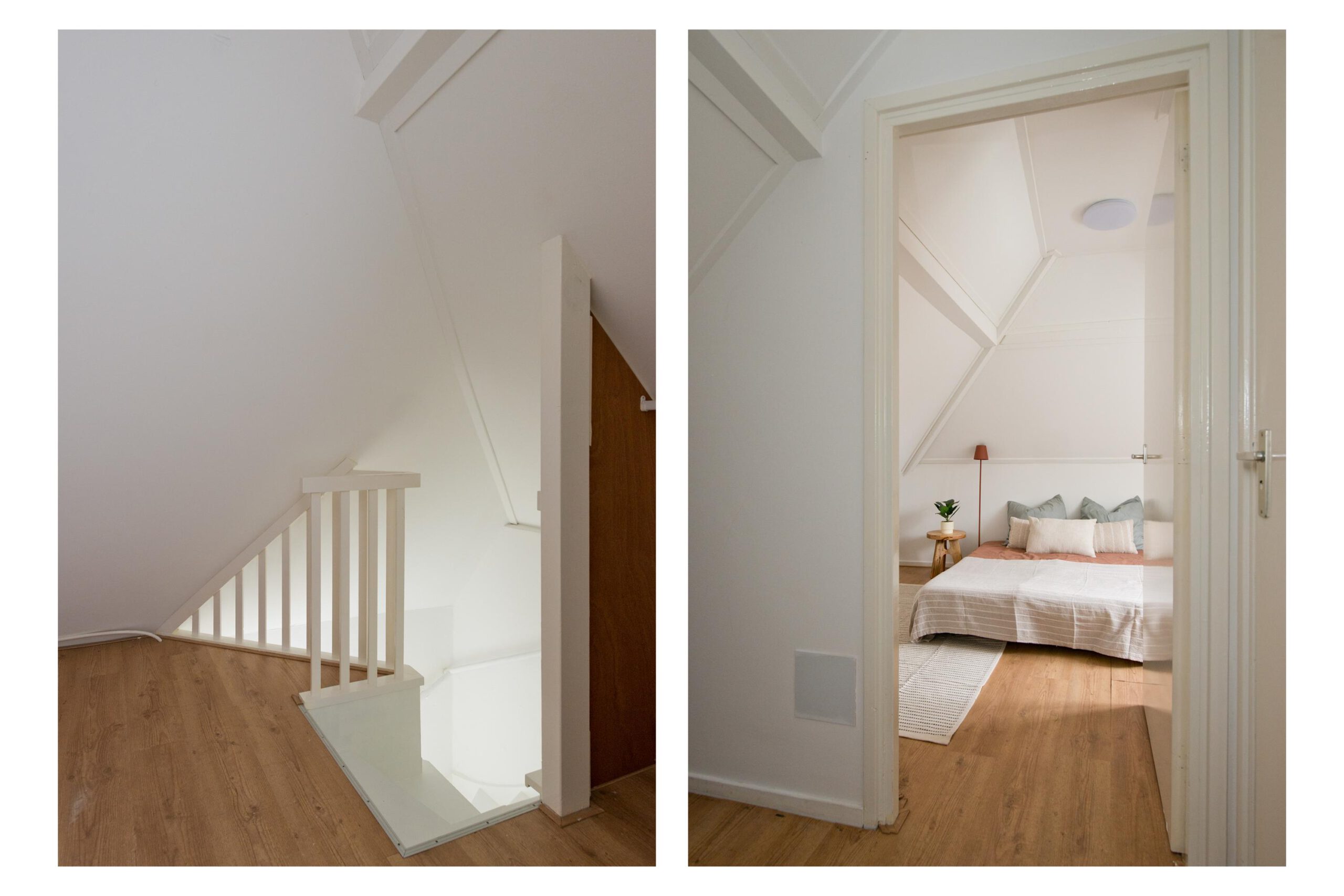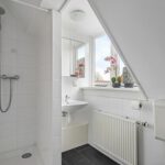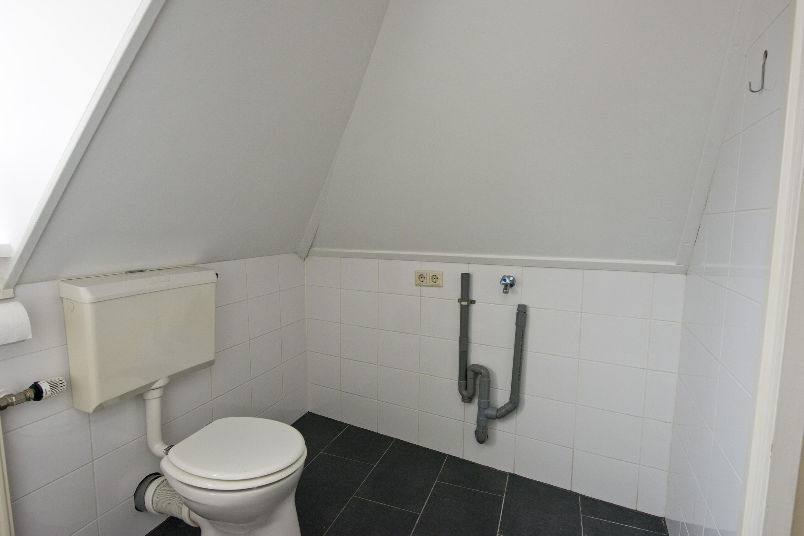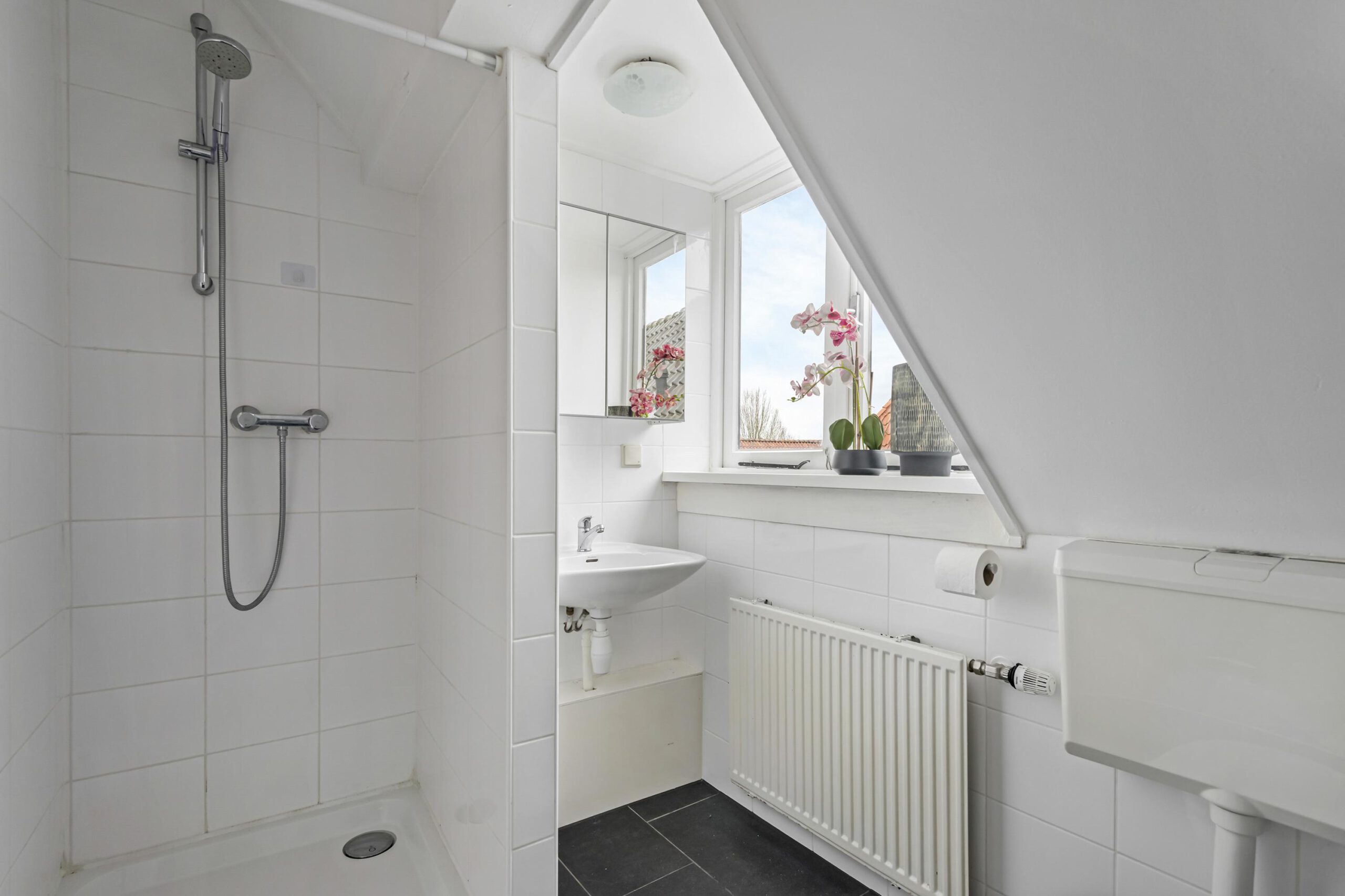 Op de overloop heb je toegang tot de slaapkamer en de badkamer. De badkamer is voorzien van een douche, toilet, wastafel en een aansluiting voor de wasmachine.