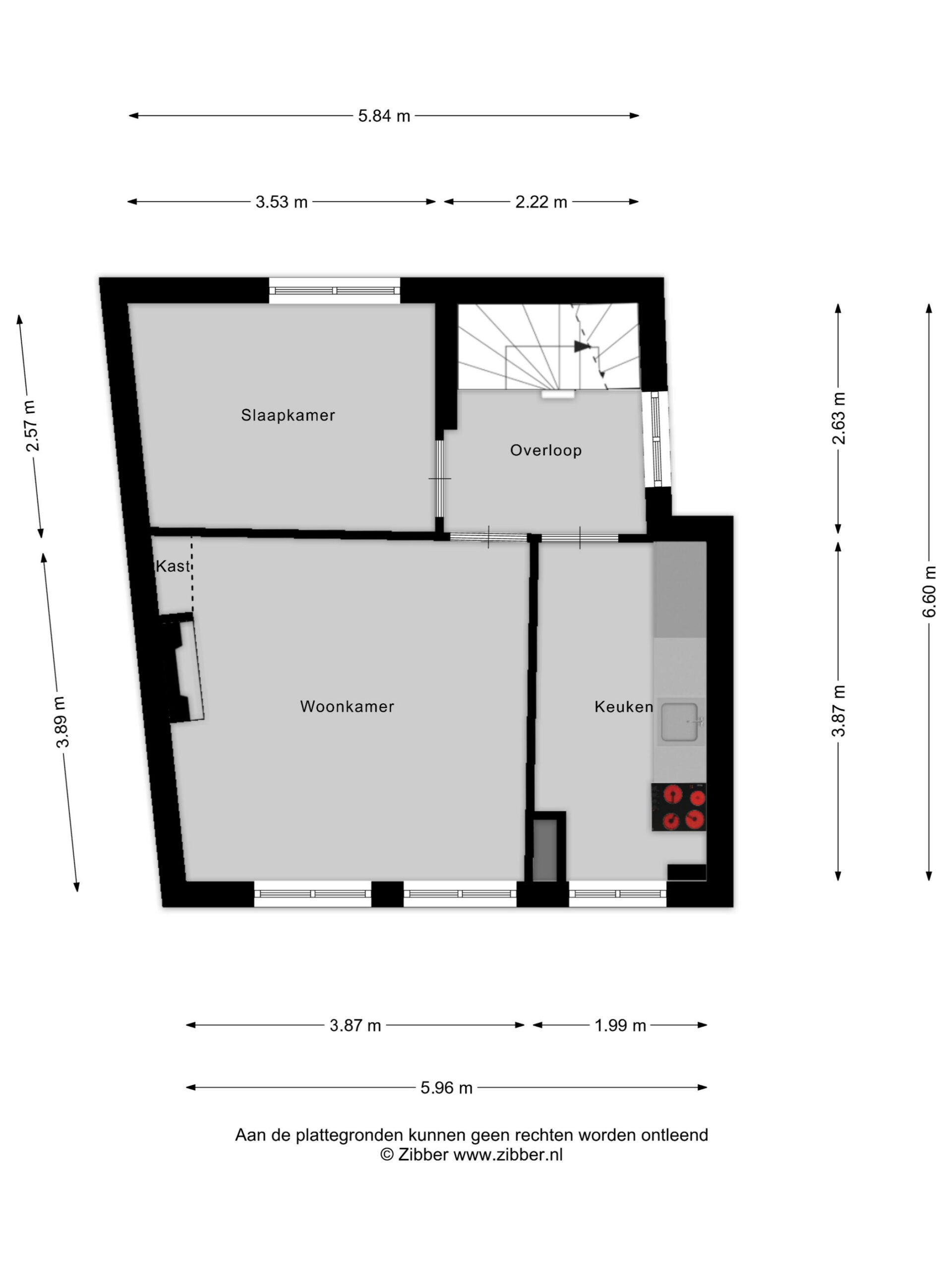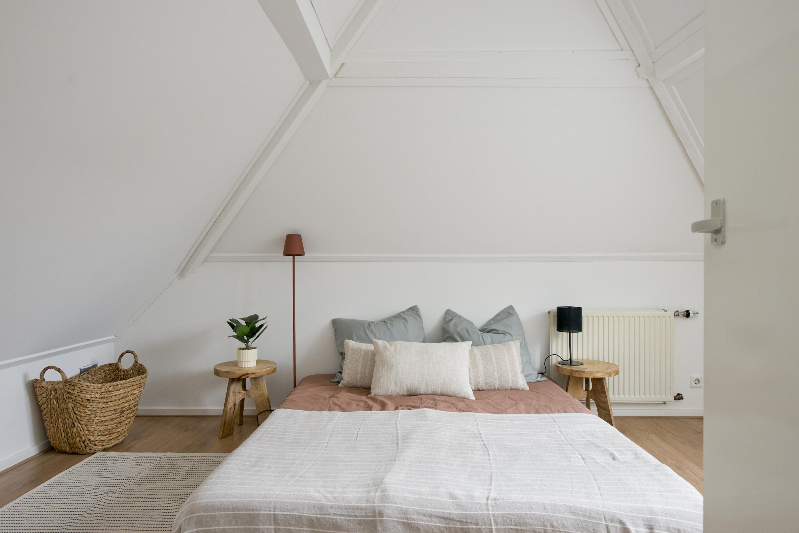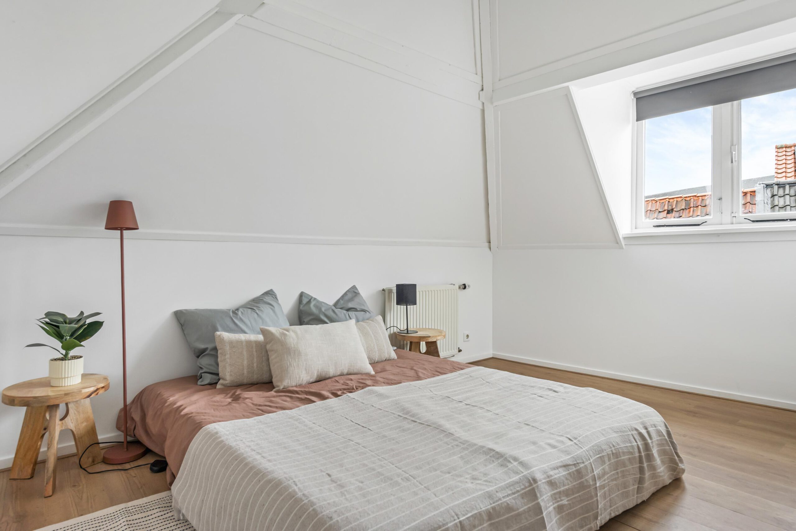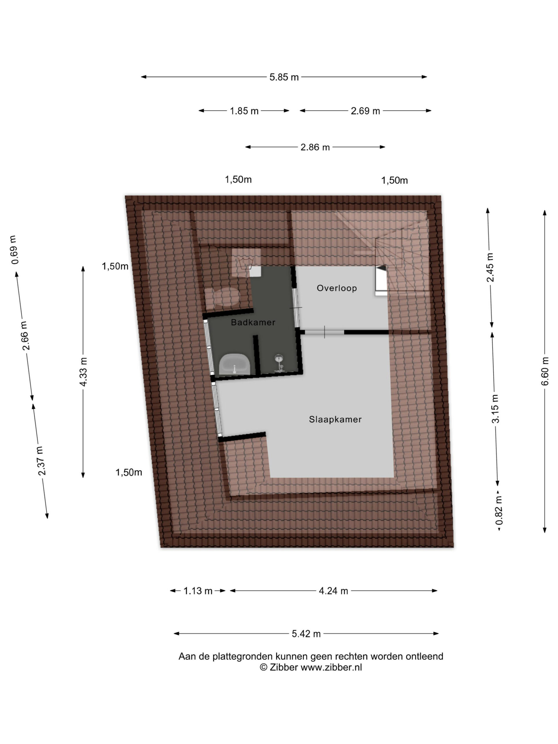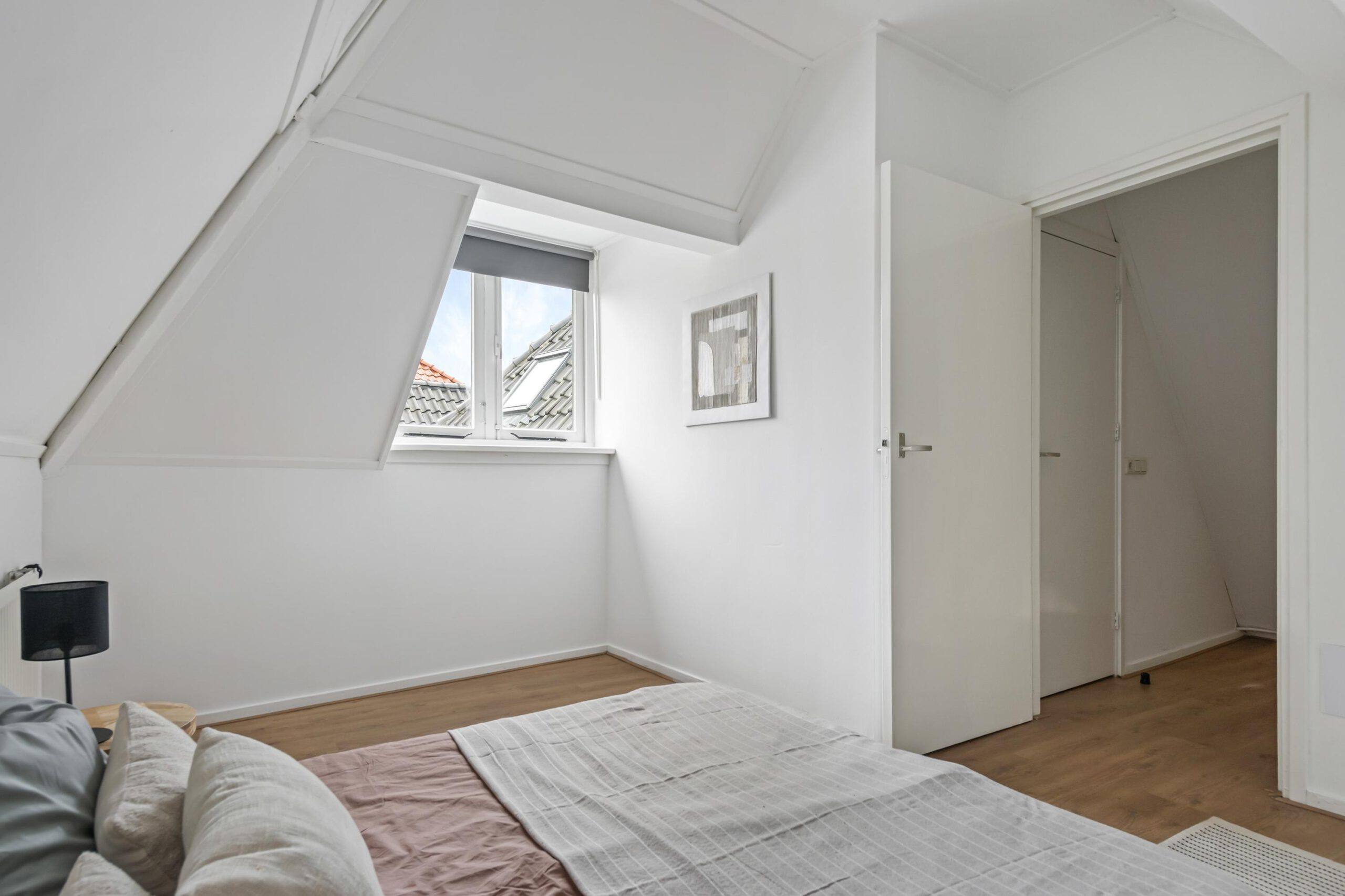Op de overloop heb je toegang tot de slaapkamer en de badkamer. De badkamer is voorzien van een douche, toilet, wastafel en een aansluiting voor de wasmachine.