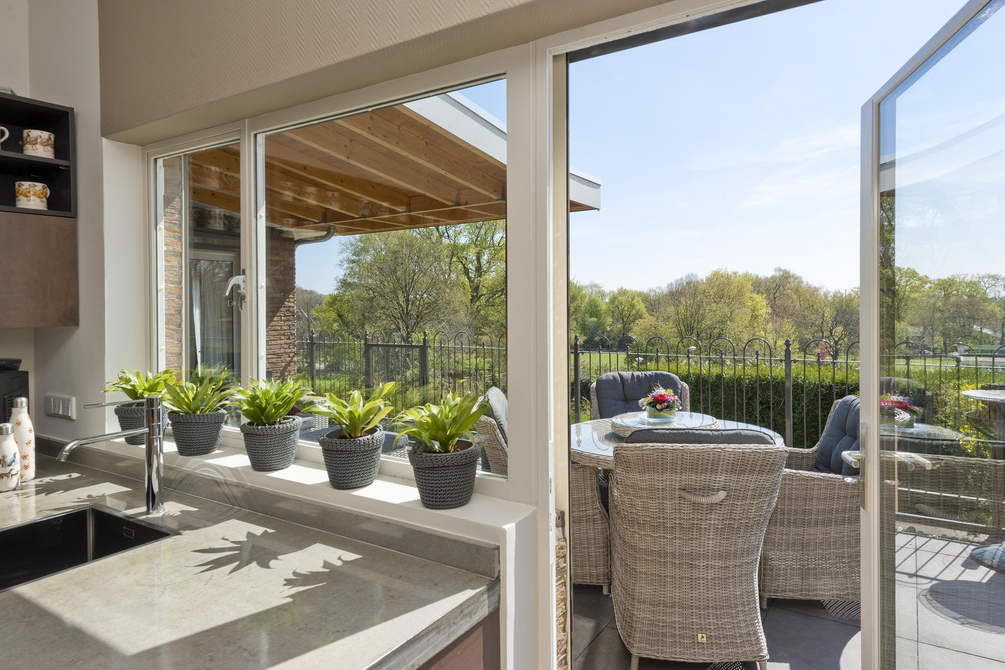 - Grotendeels aluminium ramen en kozijnen met dubbelglas;