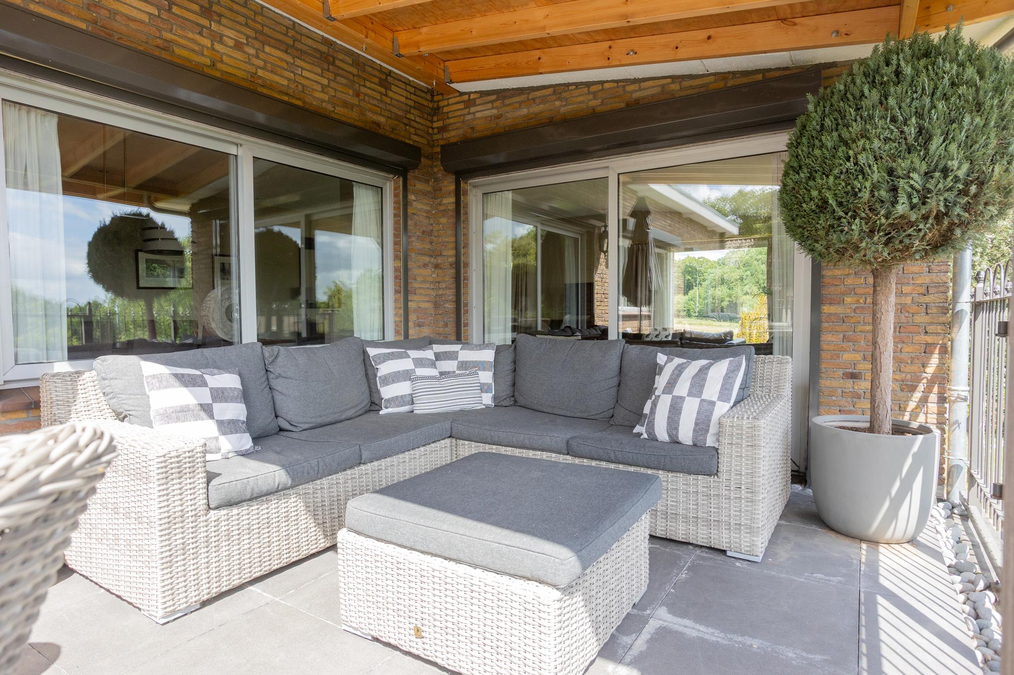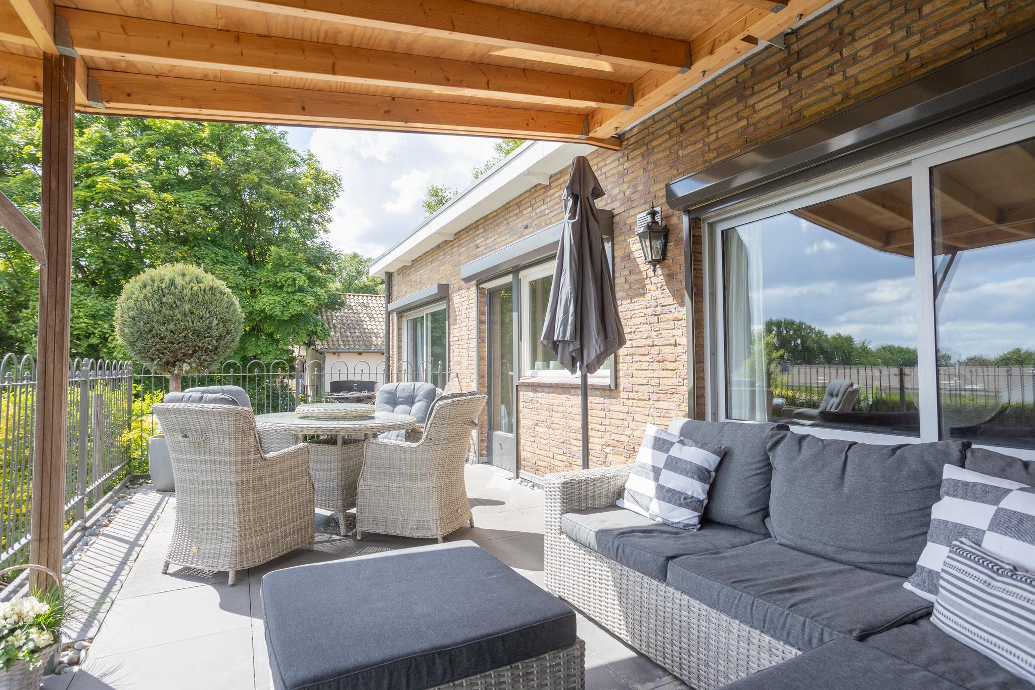 Buitenruimte: Rondom de woning is de glooiende tuin gesitueerd. Door de fraaie maatvoering is er dus altijd wel een plekje waar u van de zon en/ of van uw privacy kunt genieten. Daarnaast kunt u ook op het gezellige terras bij de woonkamer van de zon genieten.