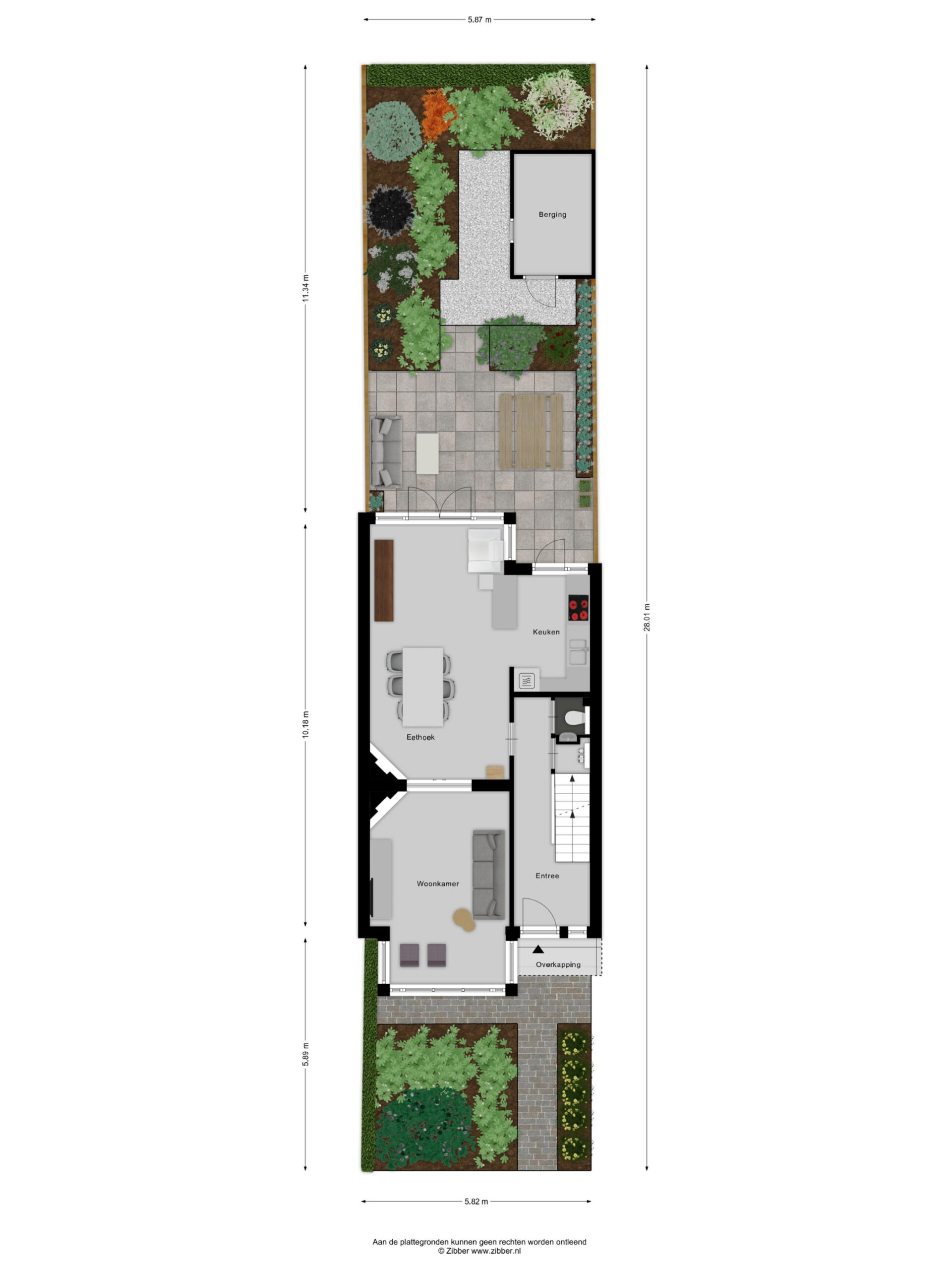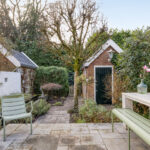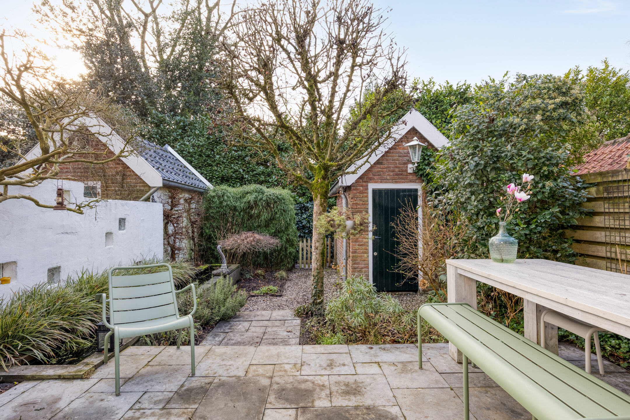 De zonnige achtertuin is op het zuiden gelegen en is een fijne verlenging van de woning: groen, rustig en met veel privacy. Een prettige plek om in alle rust te genieten. Er is een karakteristieke stenen berging en een achterom.