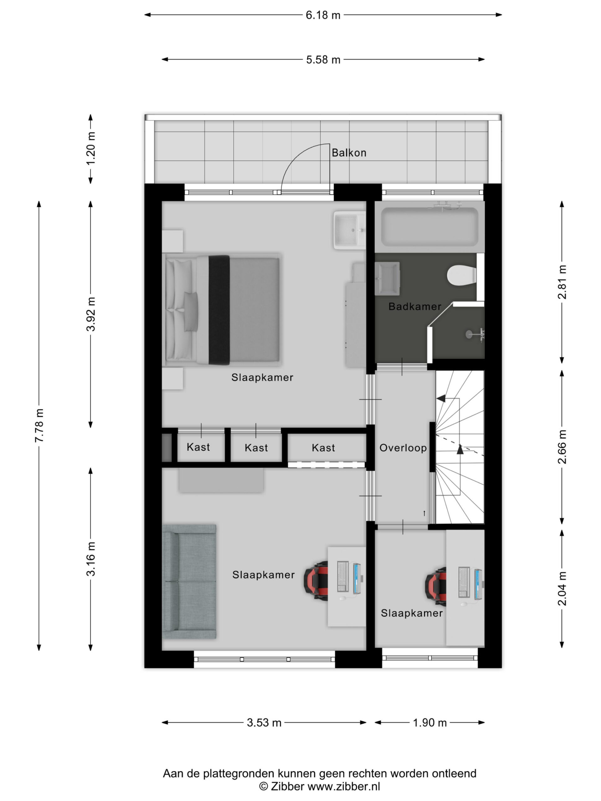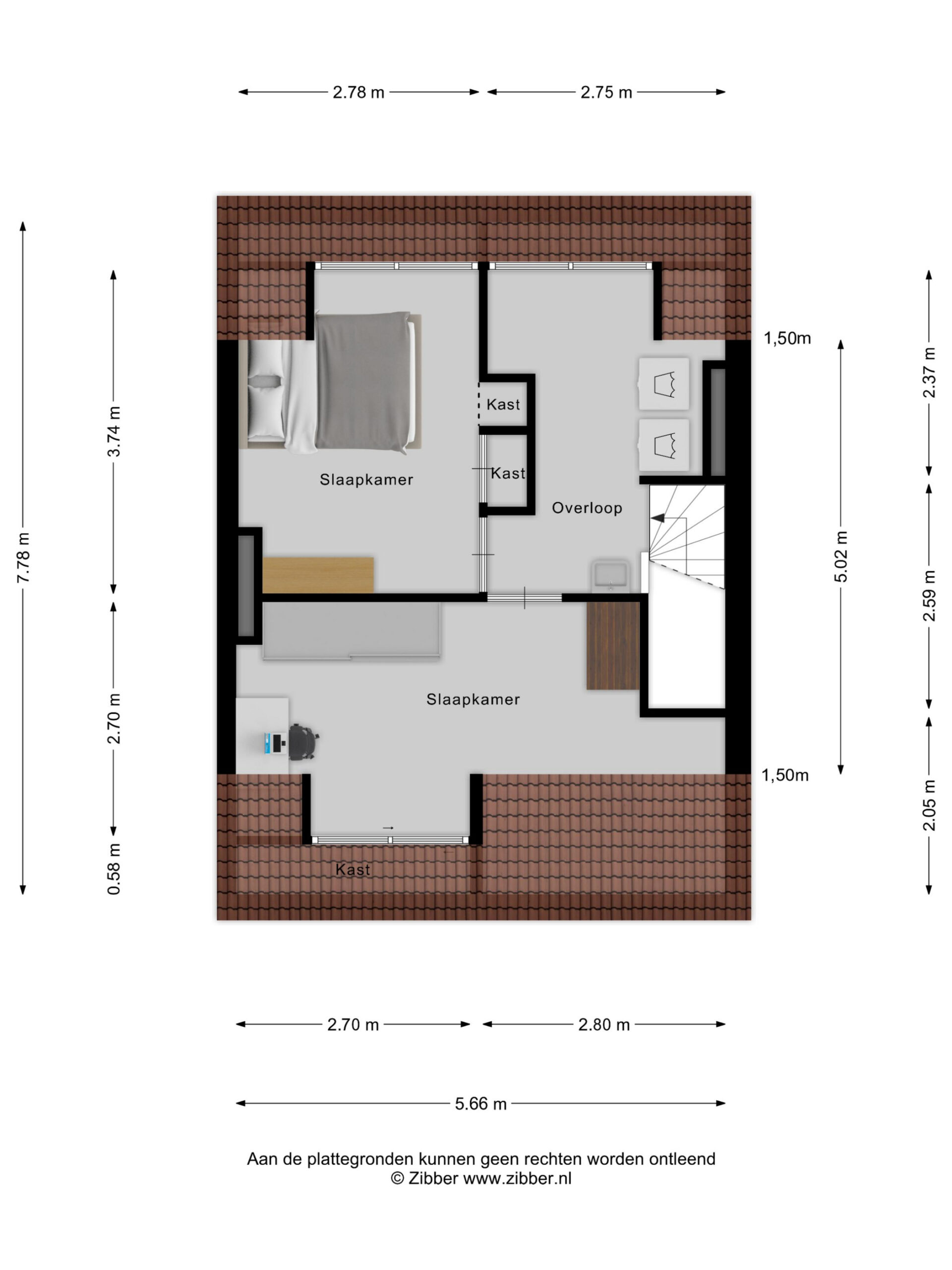 hoge slaapkamers, beide met een dakkapel waardoor ze heerlijk licht en ruim voelen. Er zijn volop mogelijkheden voor een comfortabele inrichting.