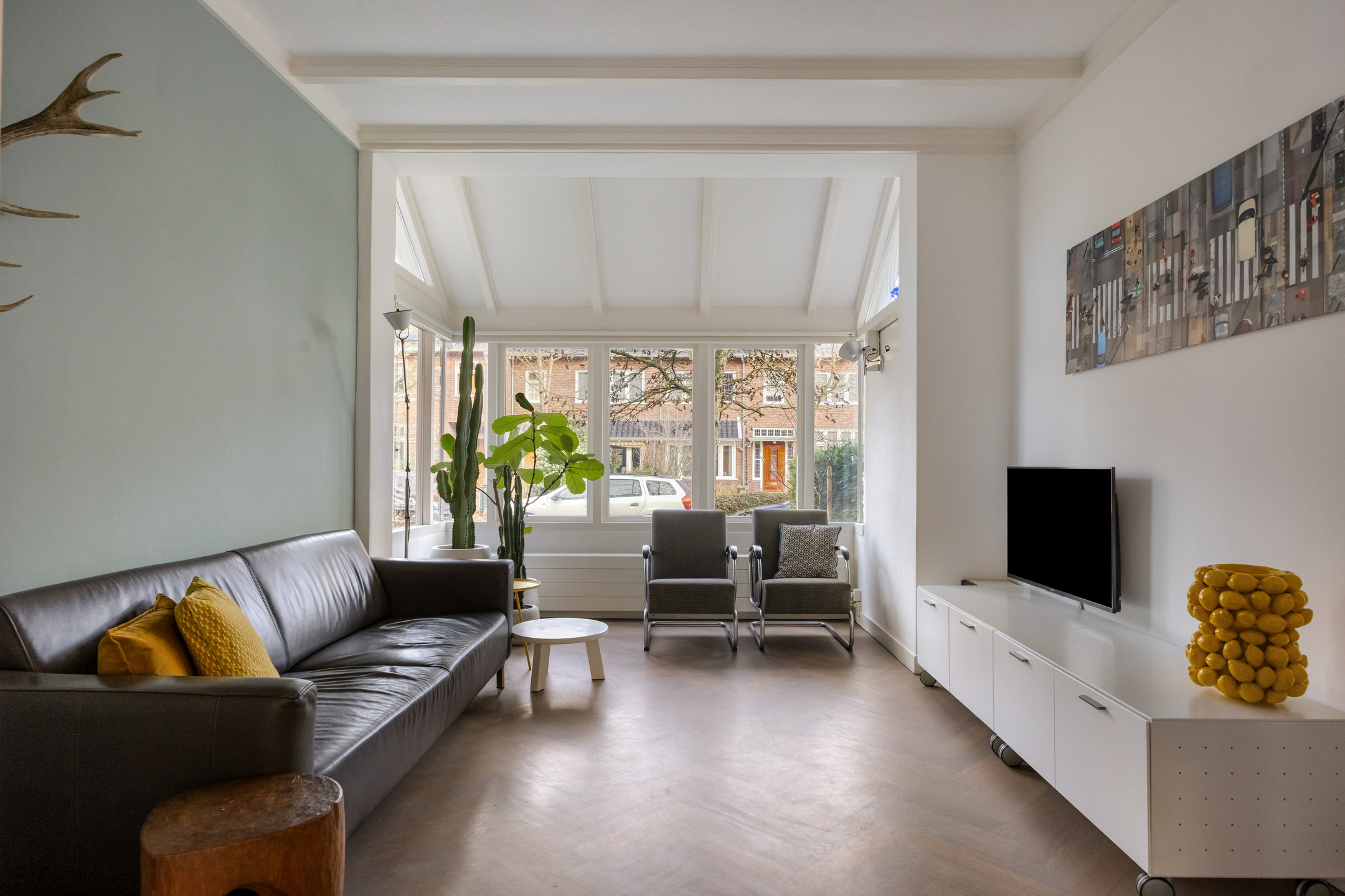 In een van de mooiste en meest geliefde wijken van Arnhem staat deze charmante, uitgebouwde jaren ’30-tussenwoning vol karakter en sfeer. Authentieke details zijn hier nog volop aanwezig: karakteristieke glas-in-lood en-suite deuren, origineel tegelwerk, marmeren schouwen en paneeldeuren - precies datgene wat deze bouwperiode zo geliefd maakt. Aan de voorzijde is de woning uitgebouwd met een sfeervolle erker met uitzicht op de groene laan en een kabbelende beek aan de overzijde. Ook aan de achterzijde is flink uitgebouwd, waardoor een royale eetkamer met open keuken is ontstaan, lekker licht en met openslaande deuren naar de tuin. Met maar liefst 5 slaapkamers, veel bergruimte en een heerlijke zonnige achtertuin met privacy is dit een ideaal gezinshuis. Een huis waar je binnenkomt en meteen denkt: ja. Kom kijken, laat je verrassen en word verliefd!
