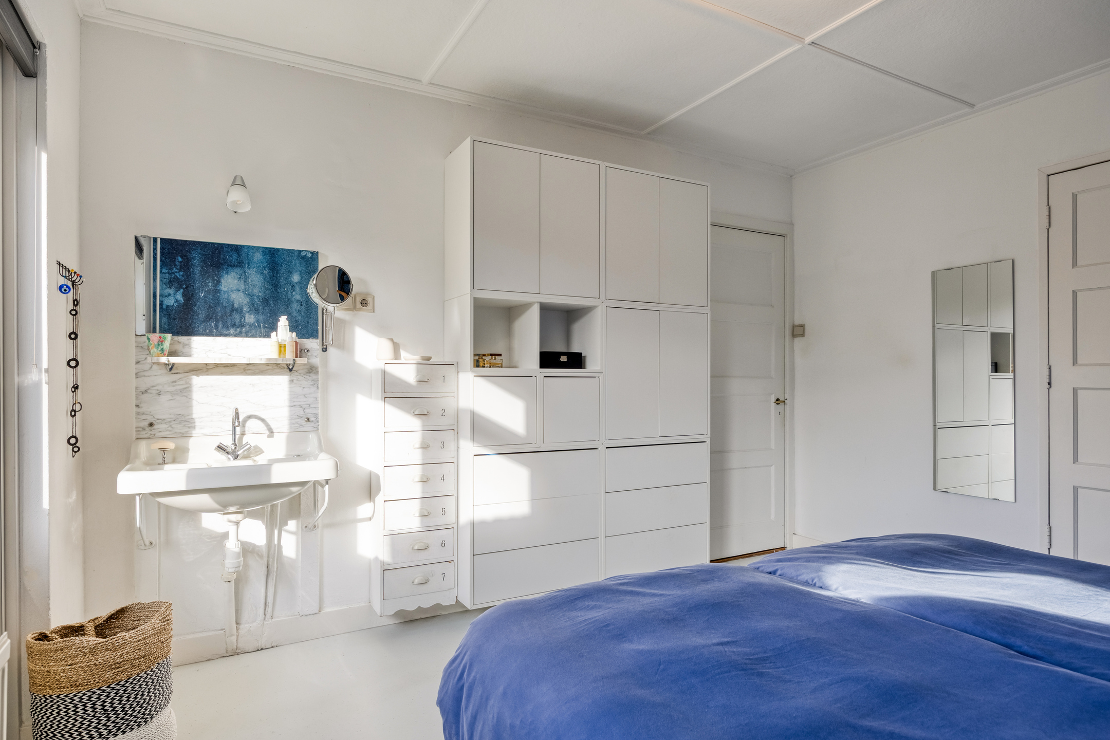 De overloop geeft toegang tot 3 sfeervolle slaapkamers en de badkamer. Aan de achterzijde bevindt zich de master bedroom, voorzien van een originele wastafel, vaste kasten en een deur naar het balkon. De badkamer is compleet met ligbad met whirlpool, inloopdouche, wastafel, vloerverwarming en een separaat toilet. Aan de voorzijde bevinden zich verder twee slaapkamers met uitzicht over de prachtige laan die de woning een extra charmante uitstraling geven. Een vaste trap biedt toegang tot de 2e verdieping.